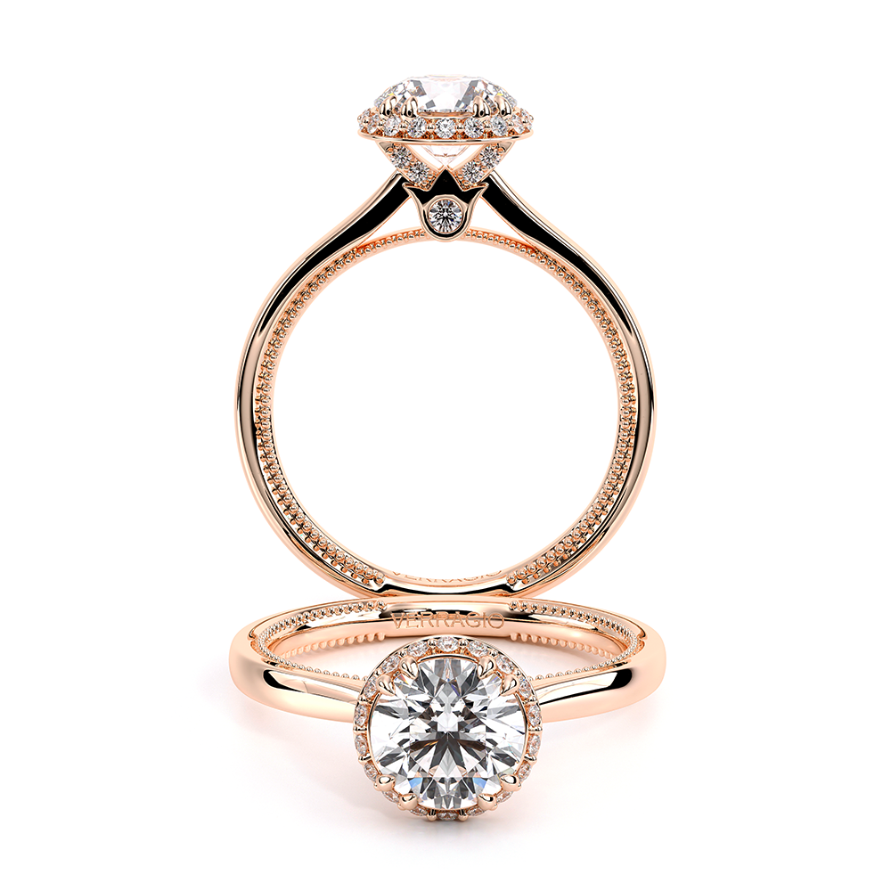 Renaissance-SLD302-XR is a classic engagement ring for your perfect Round brilliant stone enhanced by Verragio's shared prong Stardust halo. This setting also features an elegant round brilliant cut diamond band and refined profile complete with Verragio's signature beading and crest.