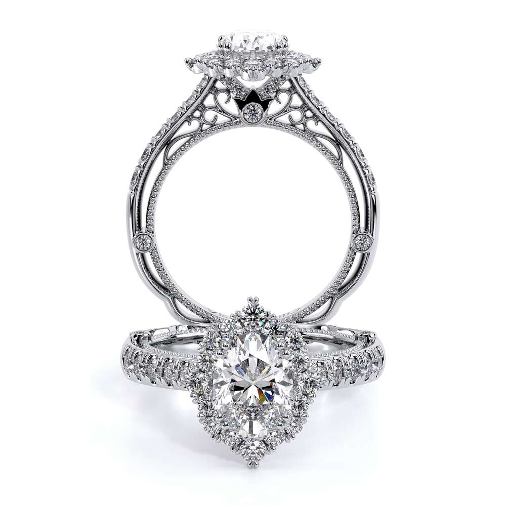 Venetian-5084OV features our new regal-inspired Crown Halo that will make sure your Oval center diamond shines. The graduating round brilliant diamonds on the shank are designed to highlight our handcrafted Venetian lace and Signature Verragio beading. A beautiful fit for a true princess indeed