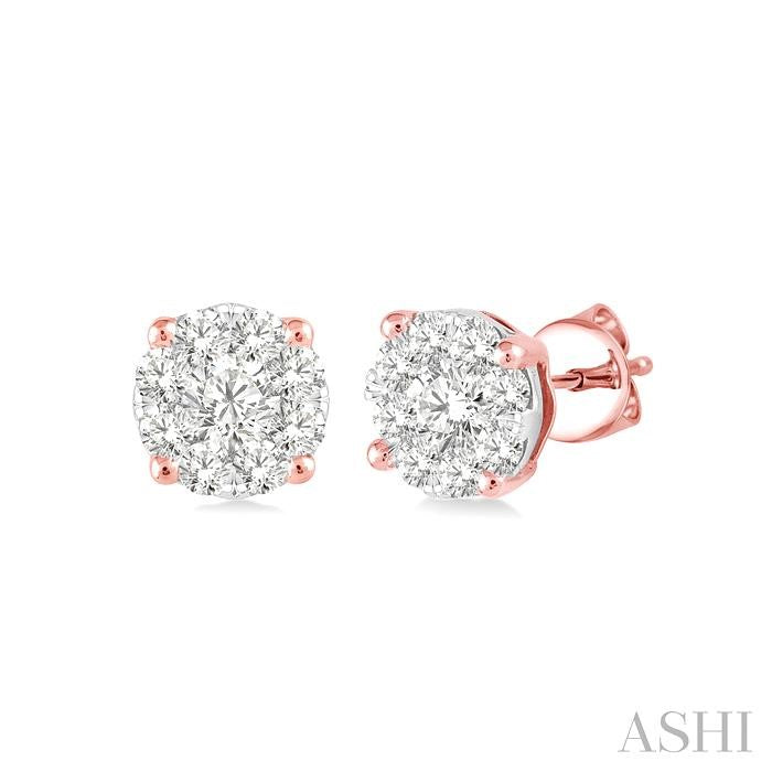 Captivate her with the dazzling and stunning look of these mesmeric Lovebright diamond earrings. Beautifully crafted in luminous 14 karat rose gold these gorgeous diamond earrings feature 18 round cut diamonds, perfectly invisible set. These earrings close with a secure clasp. Total diamond weight is 1/6 ctw. Other metal types & colors may be available.