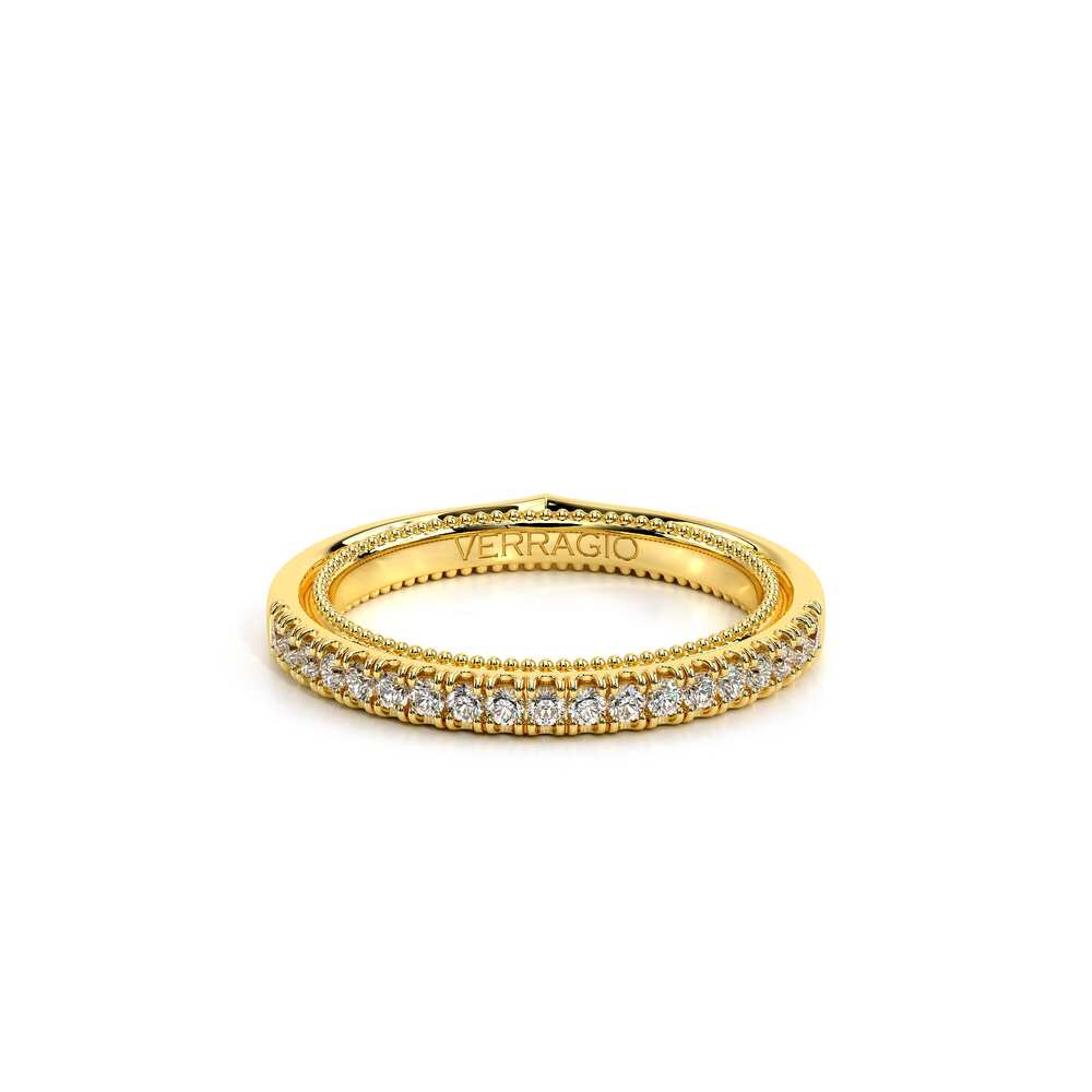 INSIGNIA-7109R Round engagement ring features Verragio' s handcrafted stardust halo. Meticulously-set round brilliant-cut diamonds sit atop a straight band. Refined by Verragio' s Insignia diamond scrollwork, timeless signature crest and beading.