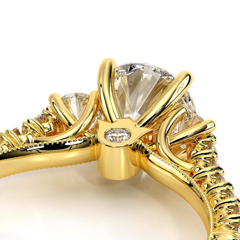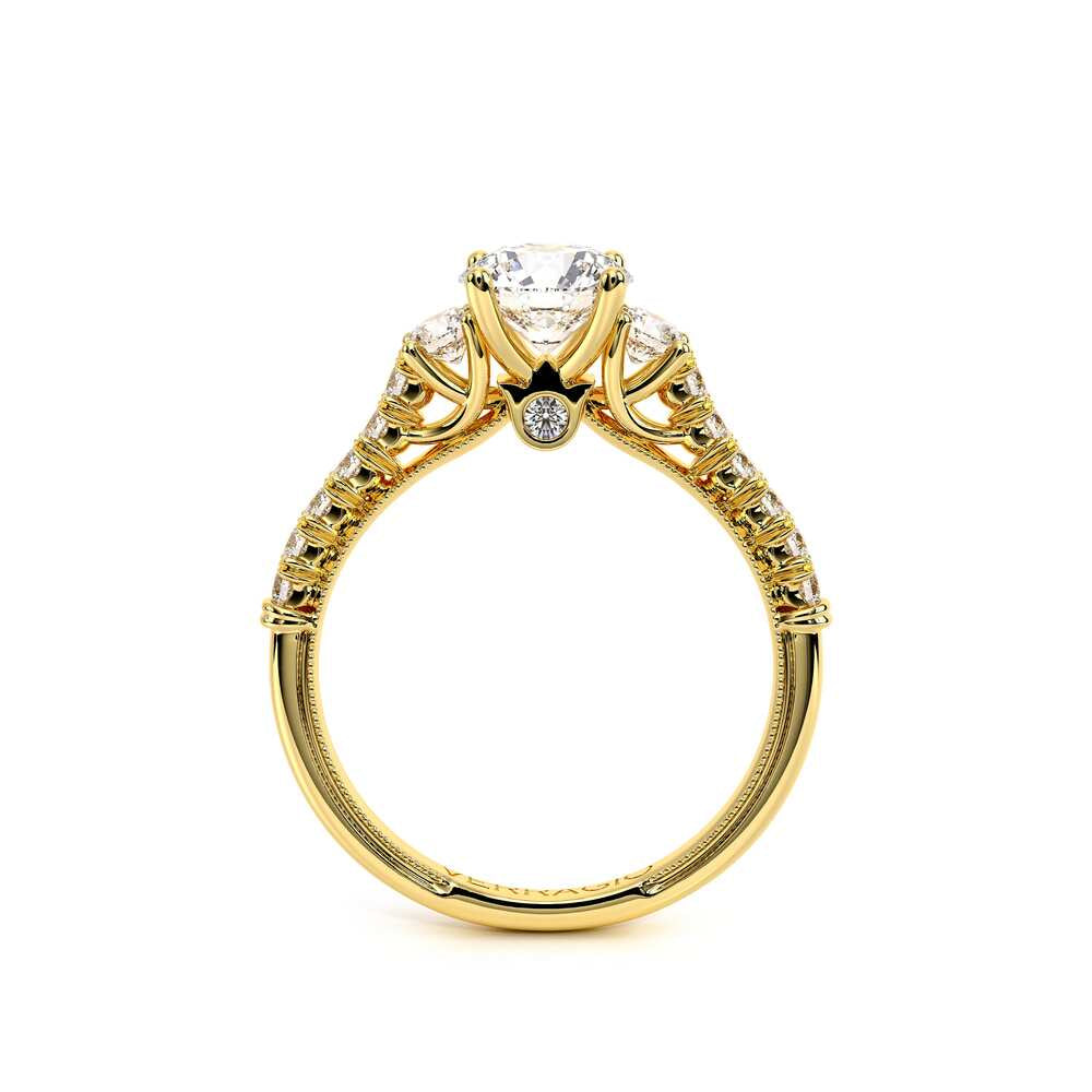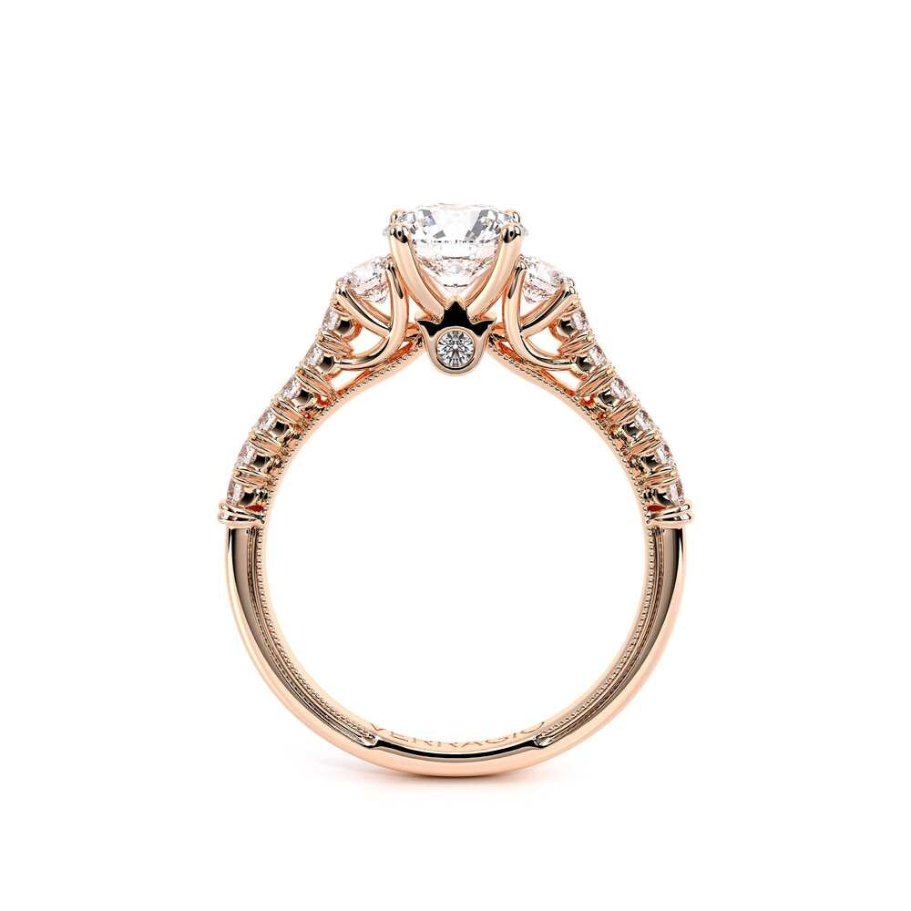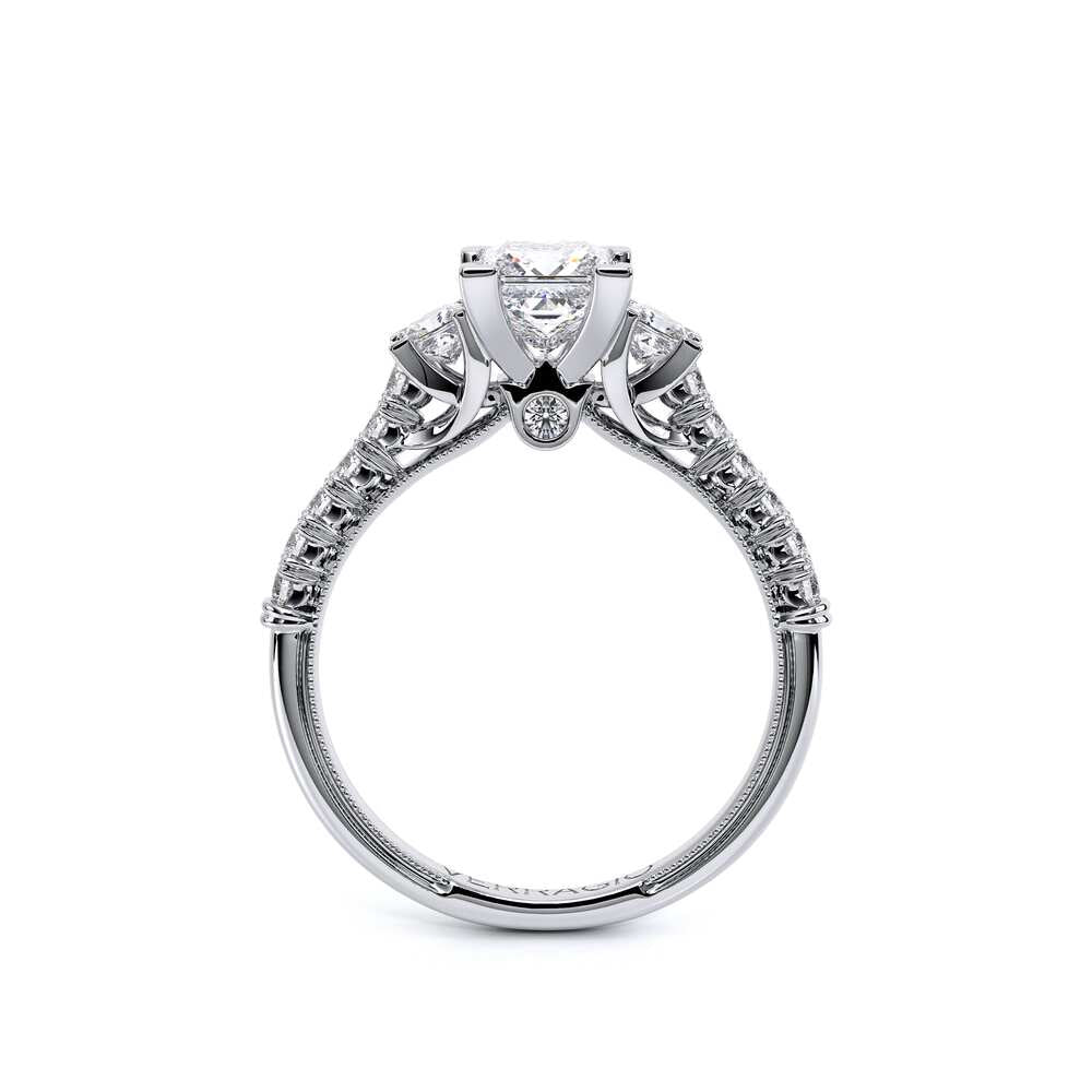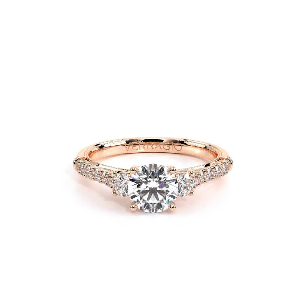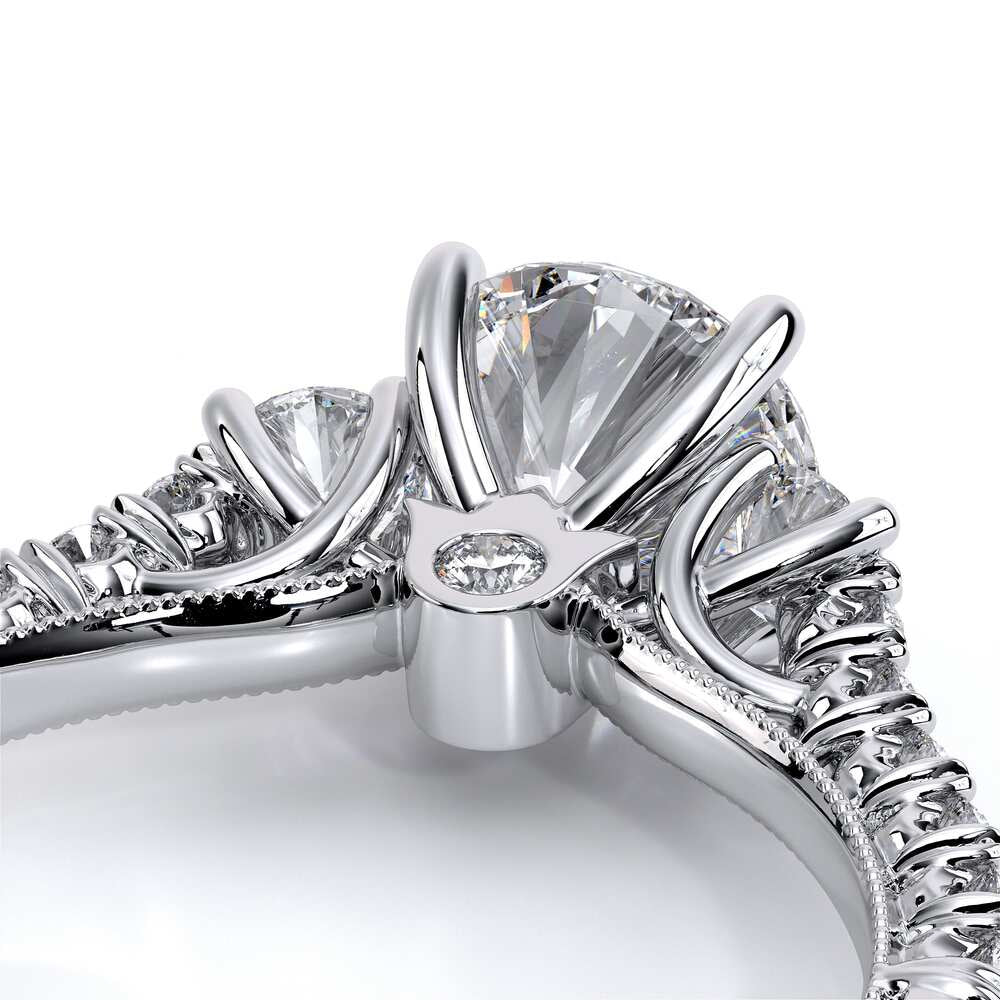 Renaissance-962-3R1.2 features three dazzling stones representing past, present, and future. The twisted shank adds modern elegance with its delicate diamonds. Milgrain detailing and the signature Verragio crest make this ring a symbol of timeless love and commitment.