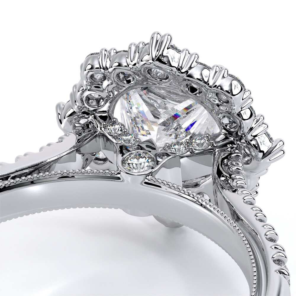 Renaissance-982HOV pave engagement ring radiates elegant styling with our starburst halo. Diamond prongs add sparkle to the profile in this unique handcrafted engagement ring.