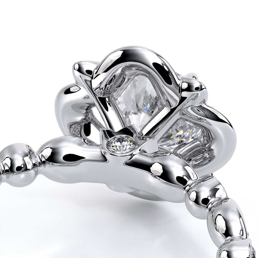 Renaissance-973-P engagement ring features signature wraps, giving definition between round and kite set princess bezels. This unique engagement ring gives a modern flare to solitaire design.