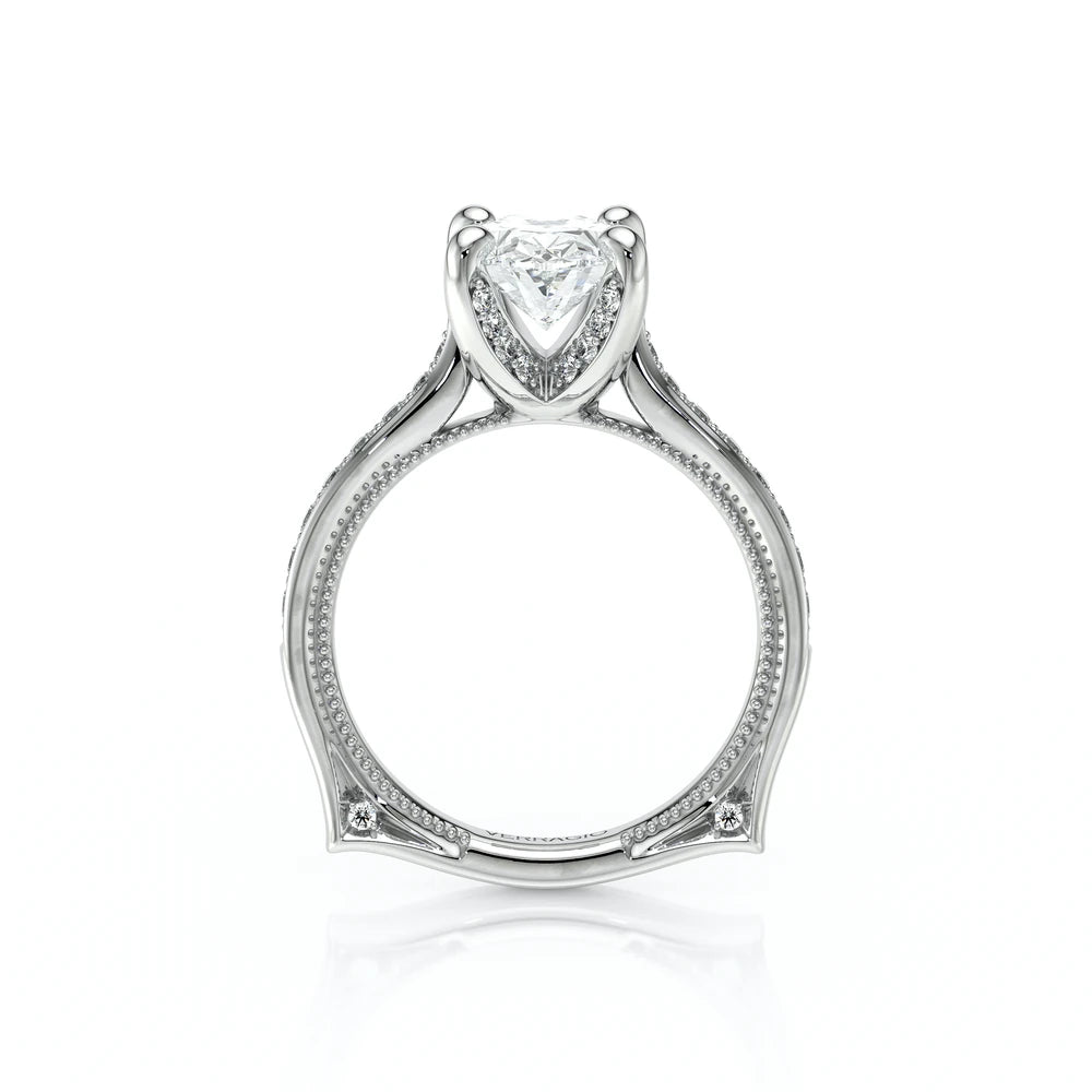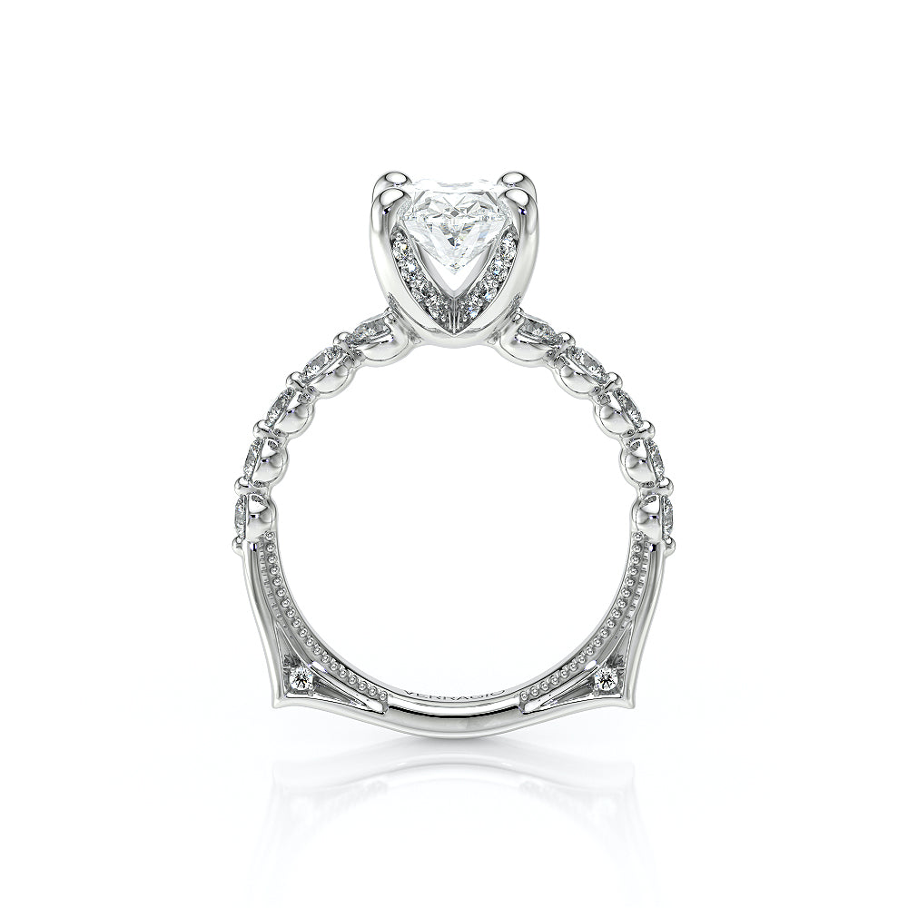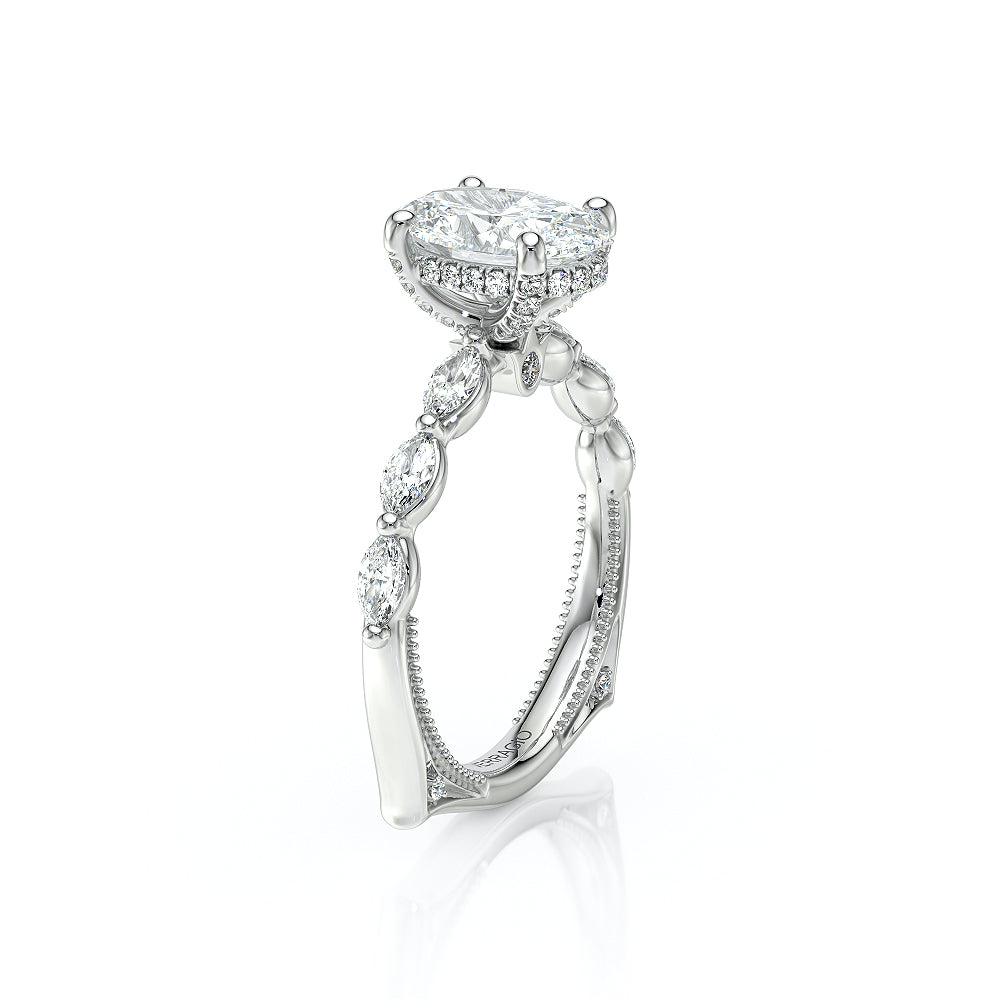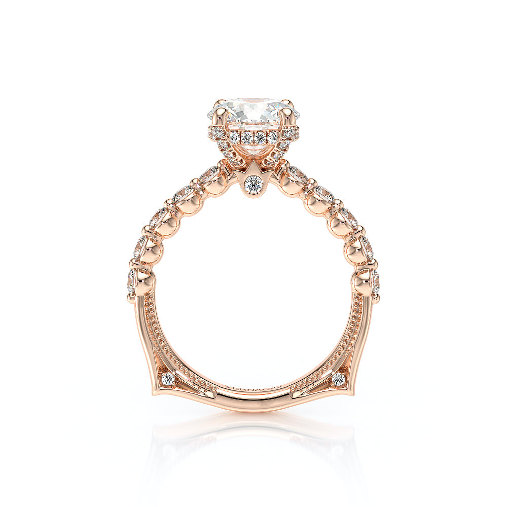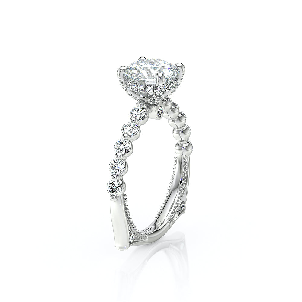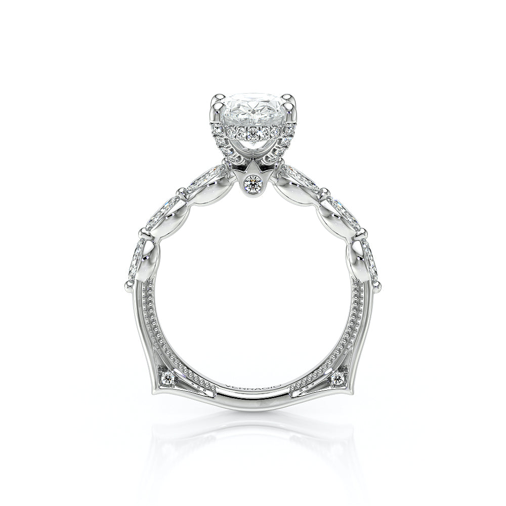 The VNG-2204OV features a knife-edge shank with round stones flowing along both sides, paired with Verragio beading on the side profile and diamond-accented prongs for a harmonious look.
