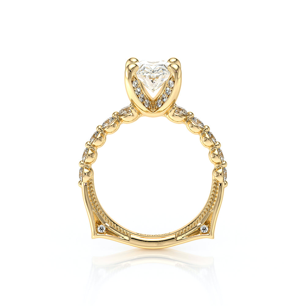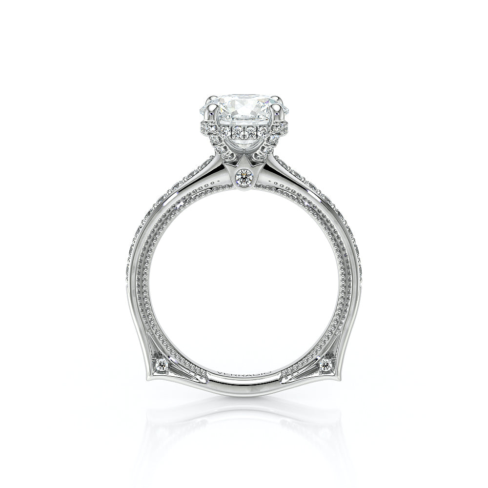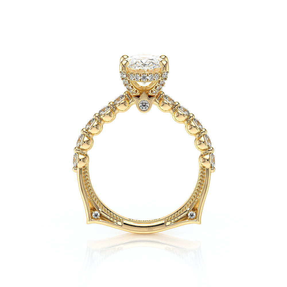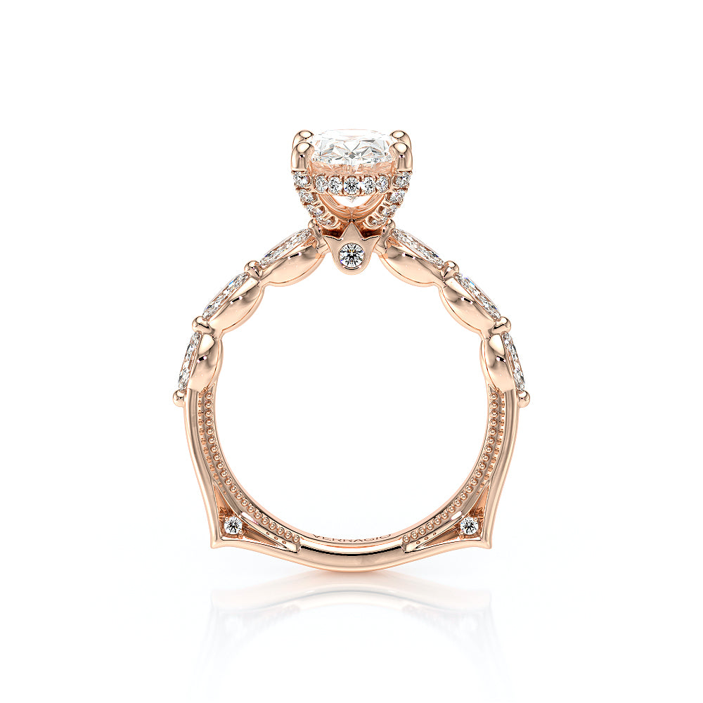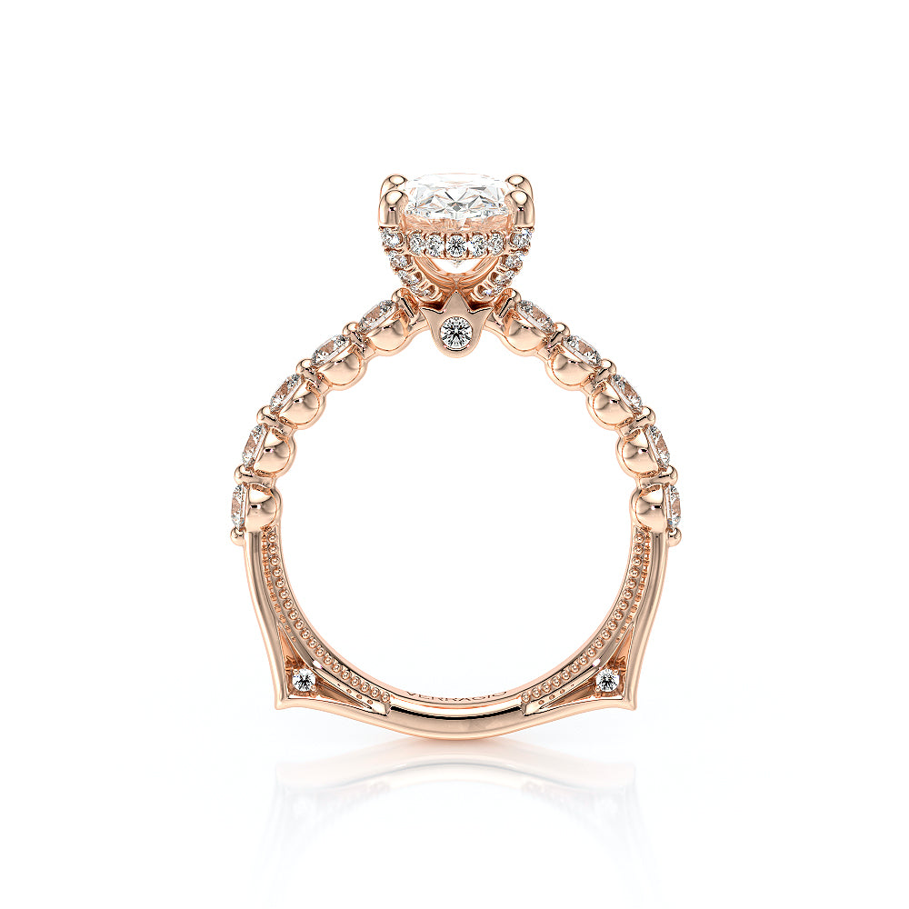 The VNG-2204OV features a knife-edge shank with round stones flowing along both sides, paired with Verragio beading on the side profile and diamond-accented prongs for a harmonious look.