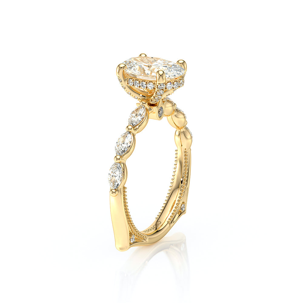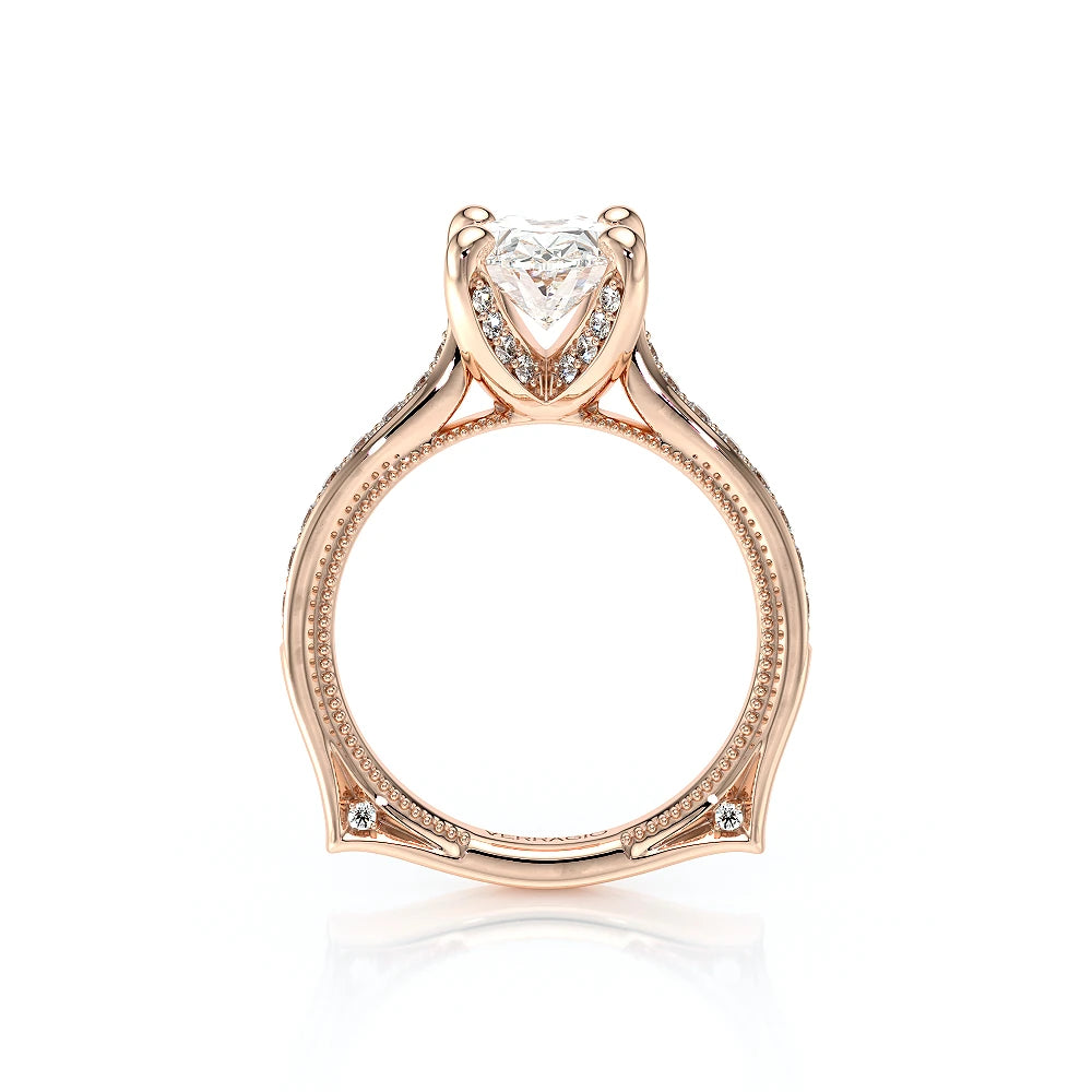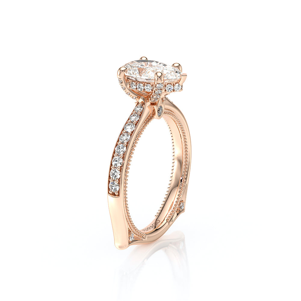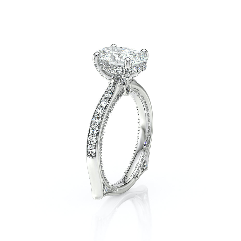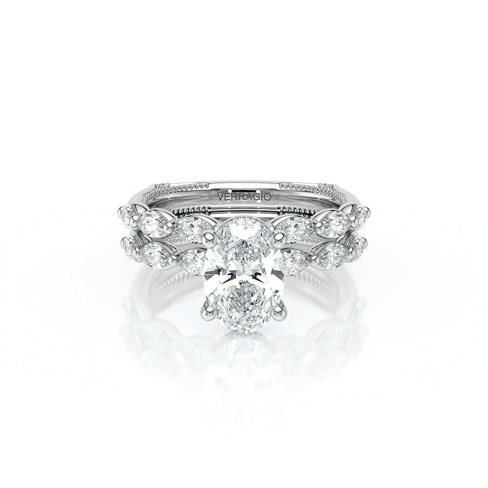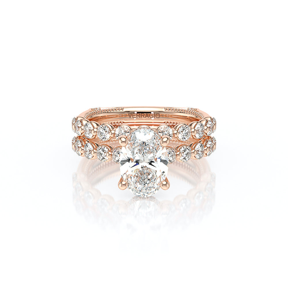 The VNG-2204OV features a knife-edge shank with round stones flowing along both sides, paired with Verragio beading on the side profile and diamond-accented prongs for a harmonious look.