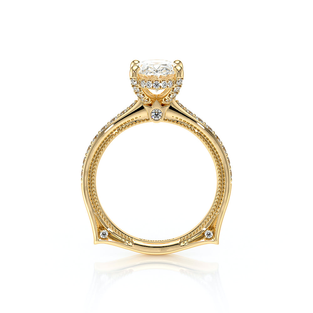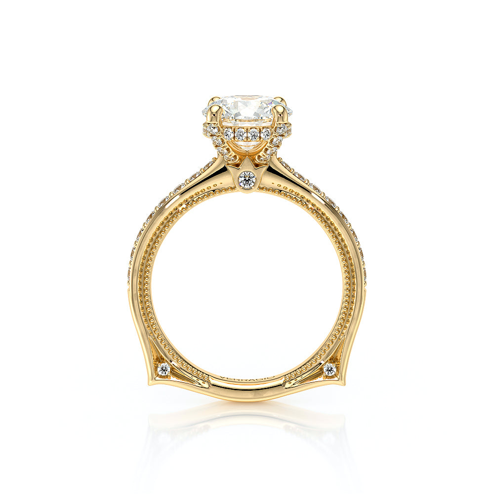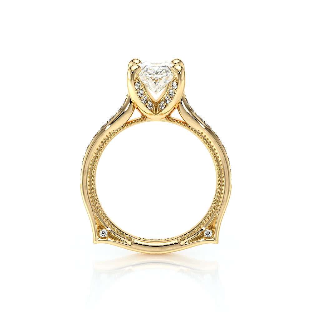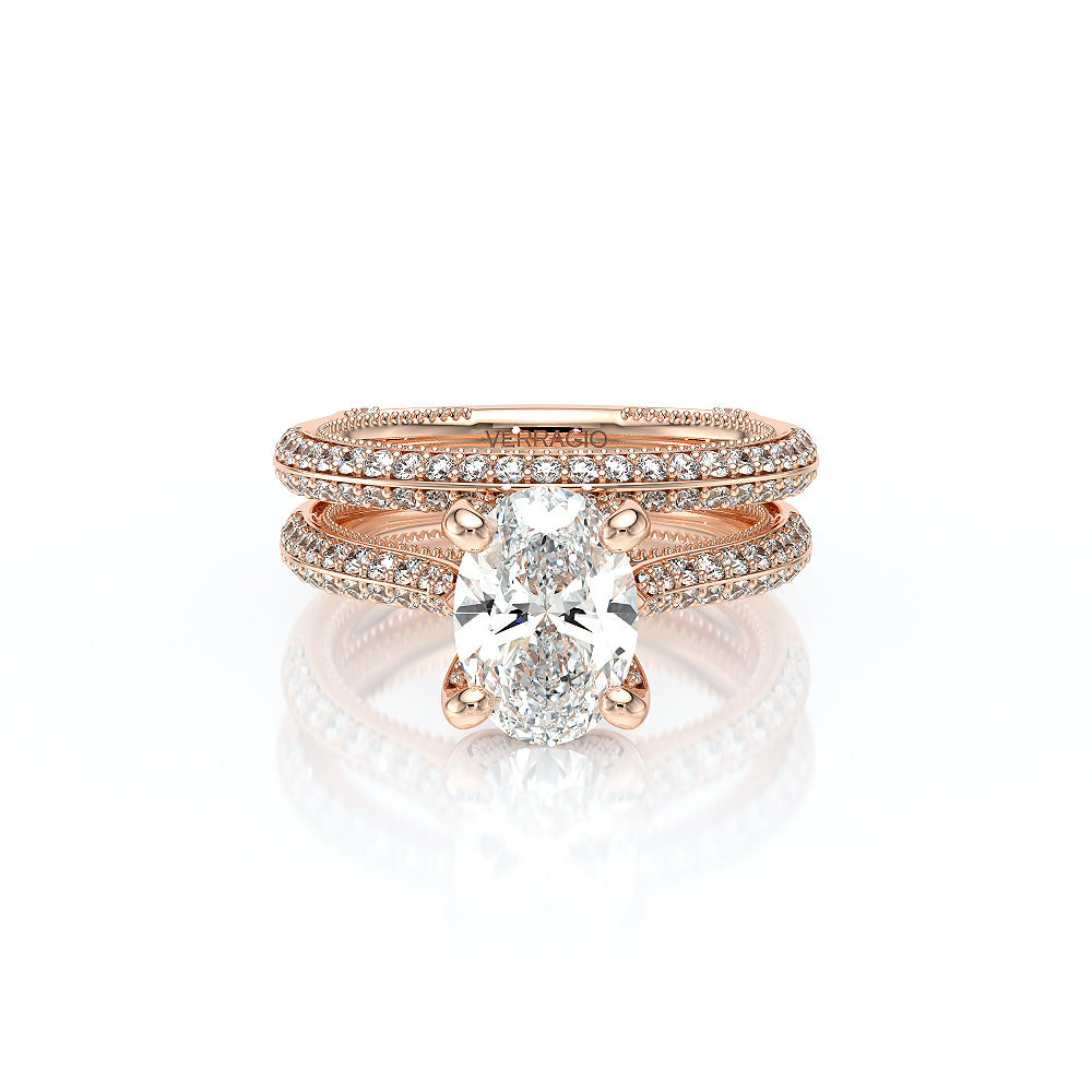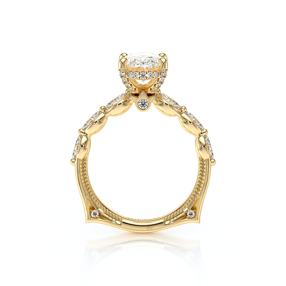 The VNG-2204OV features a knife-edge shank with round stones flowing along both sides, paired with Verragio beading on the side profile and diamond-accented prongs for a harmonious look.