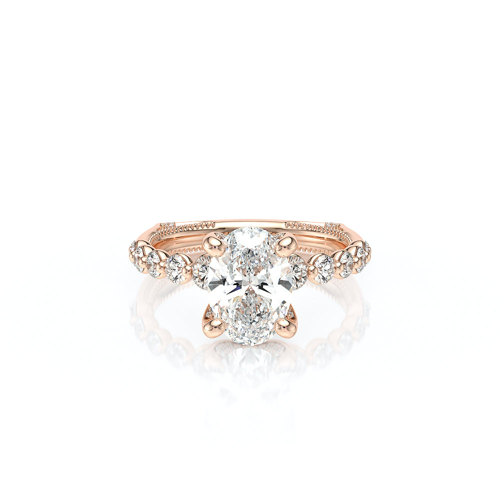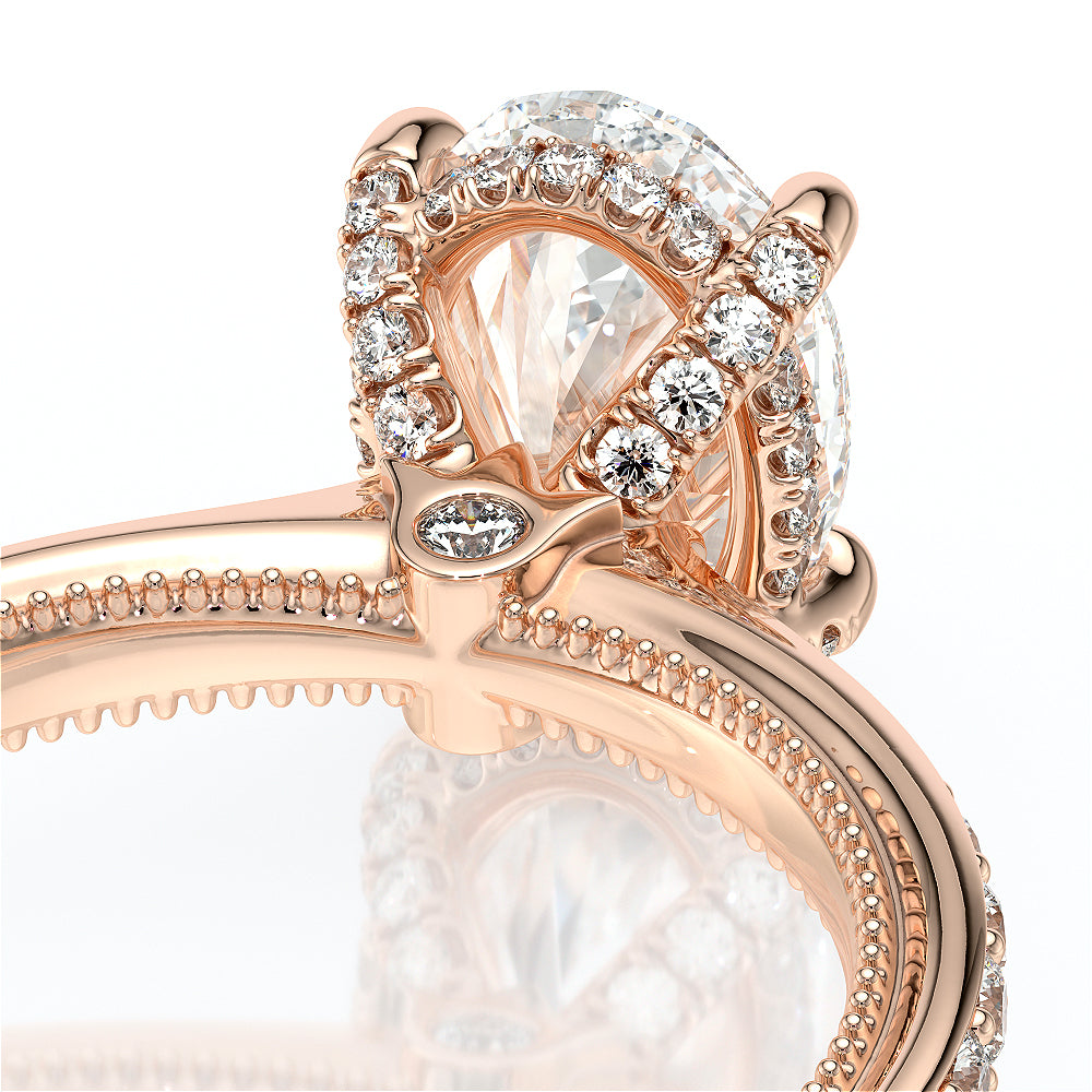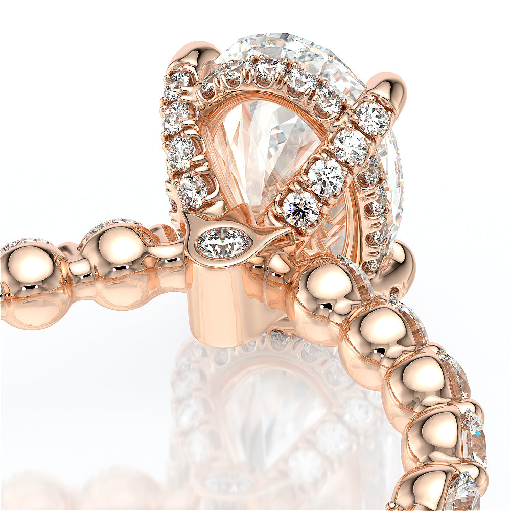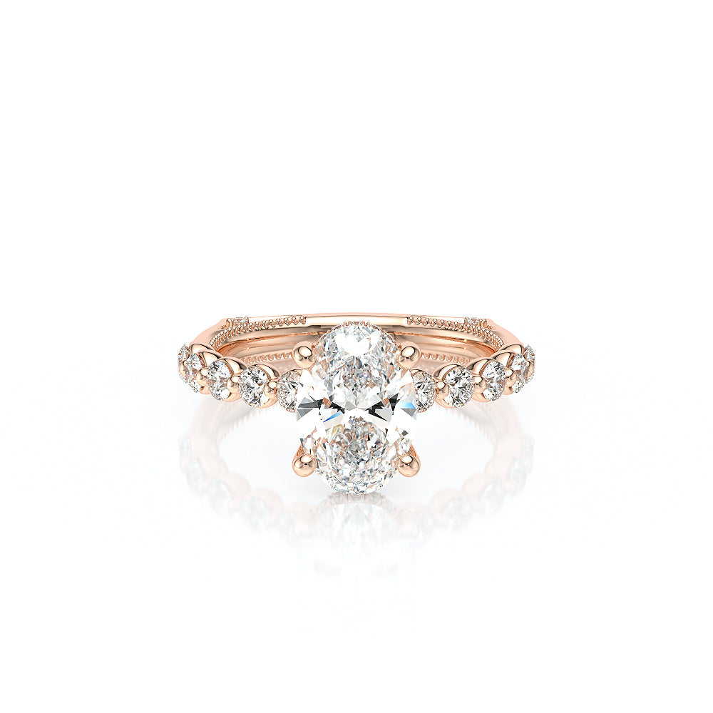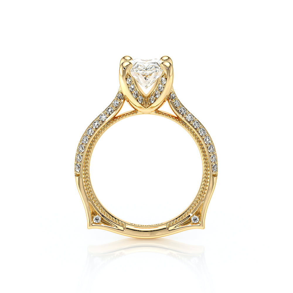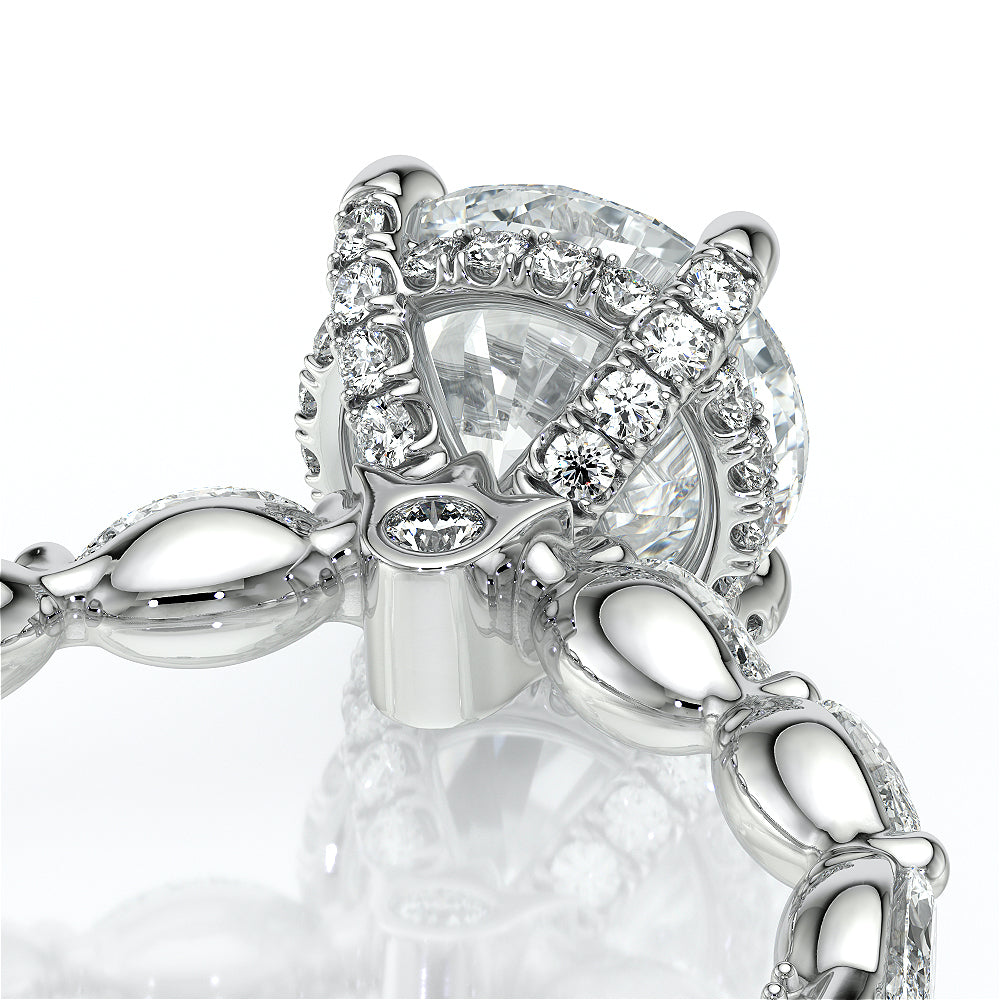 The VNG-2204OV features a knife-edge shank with round stones flowing along both sides, paired with Verragio beading on the side profile and diamond-accented prongs for a harmonious look.