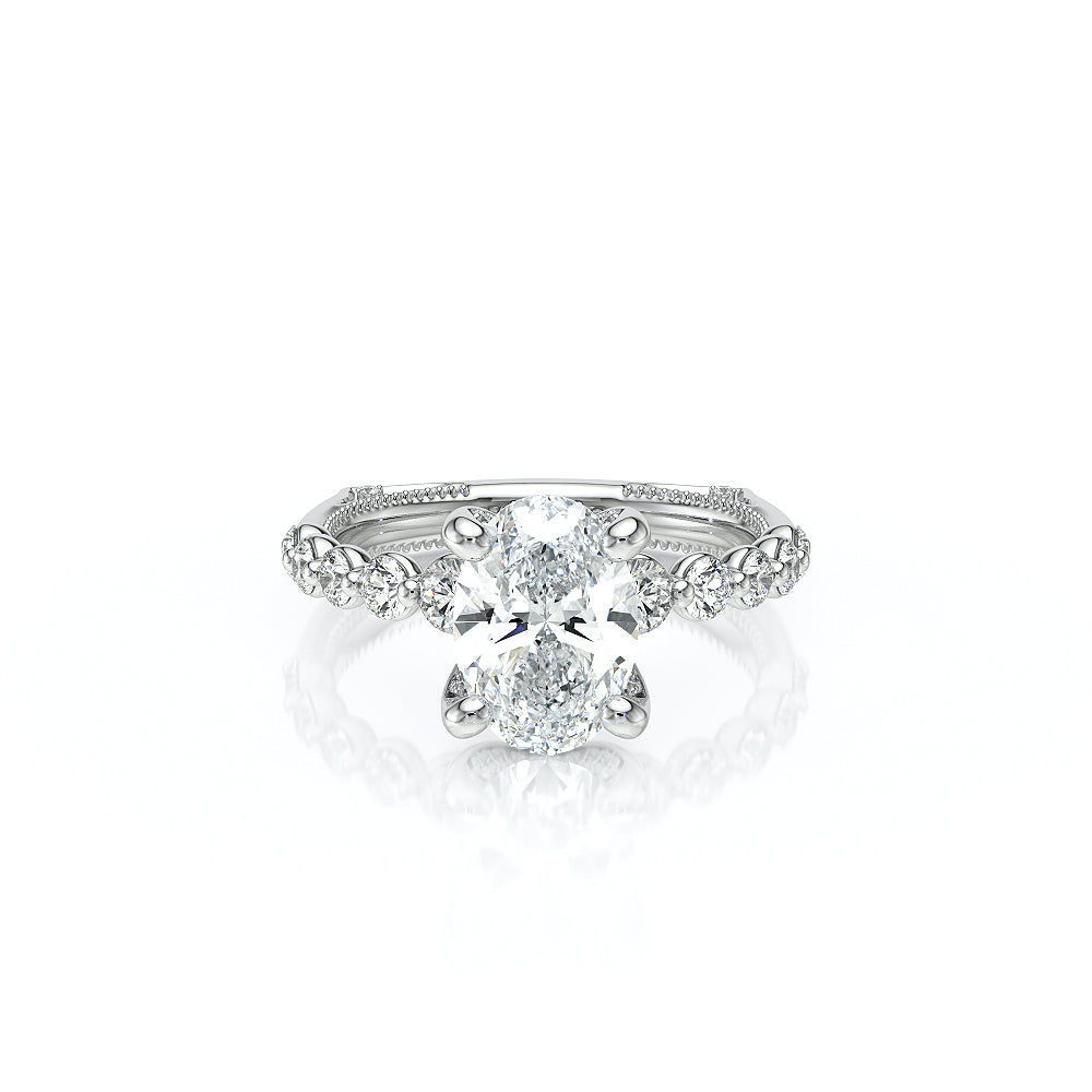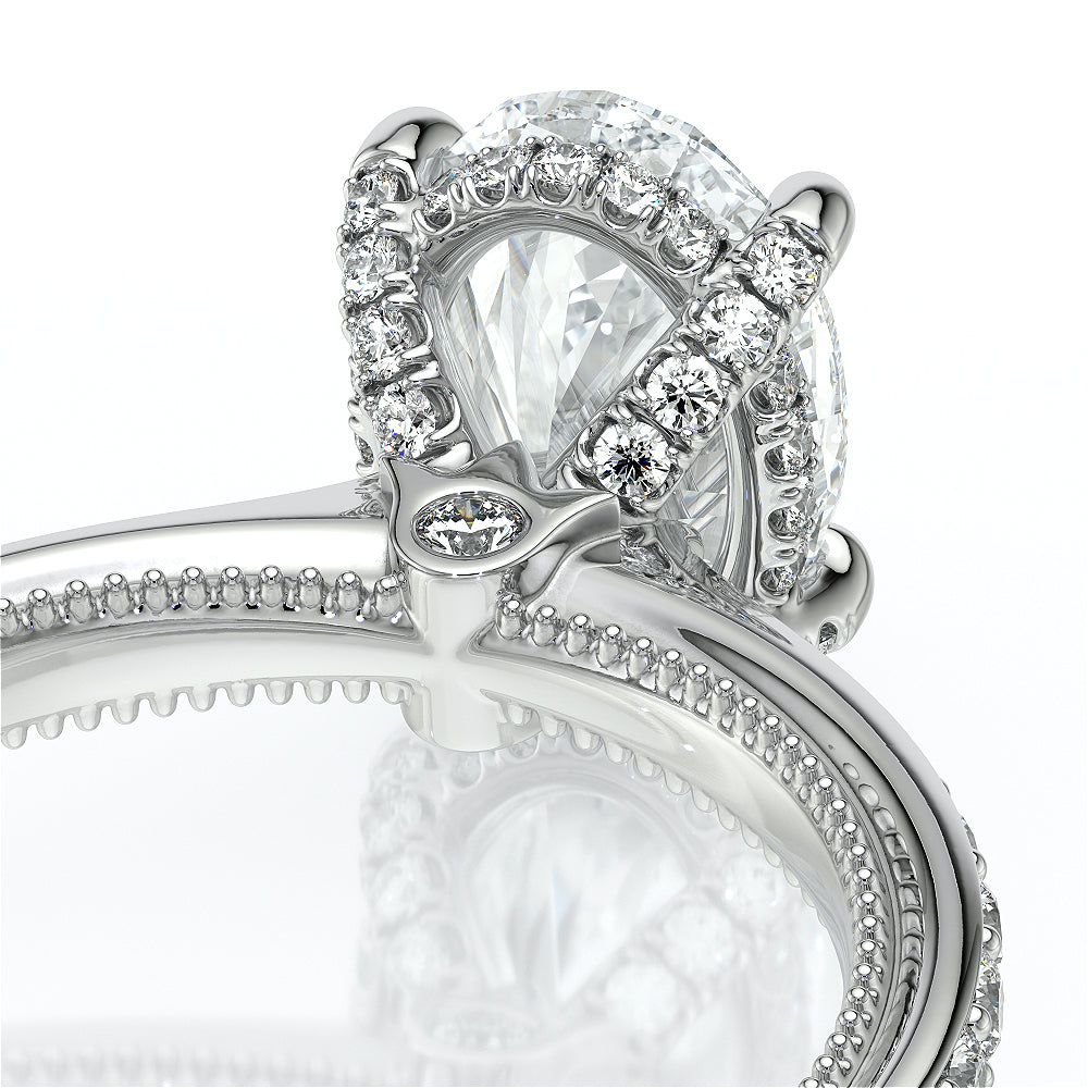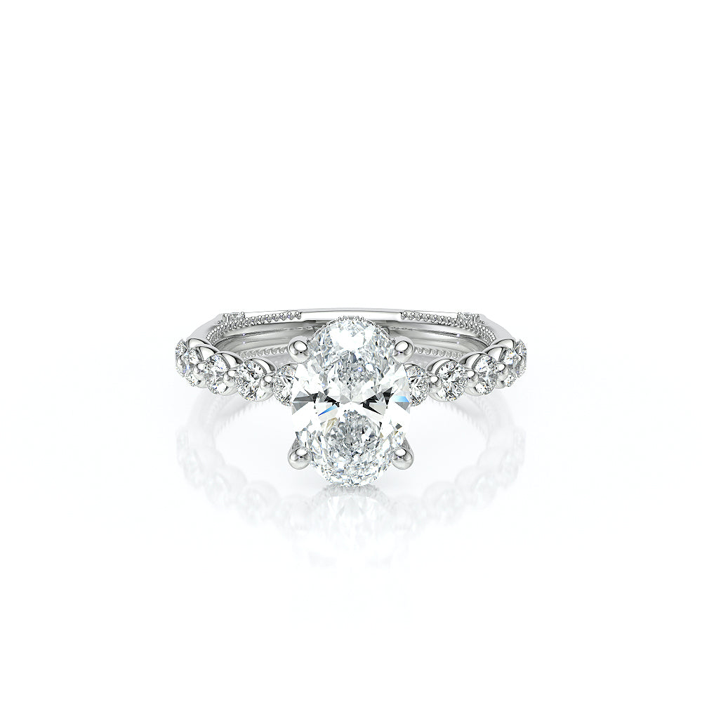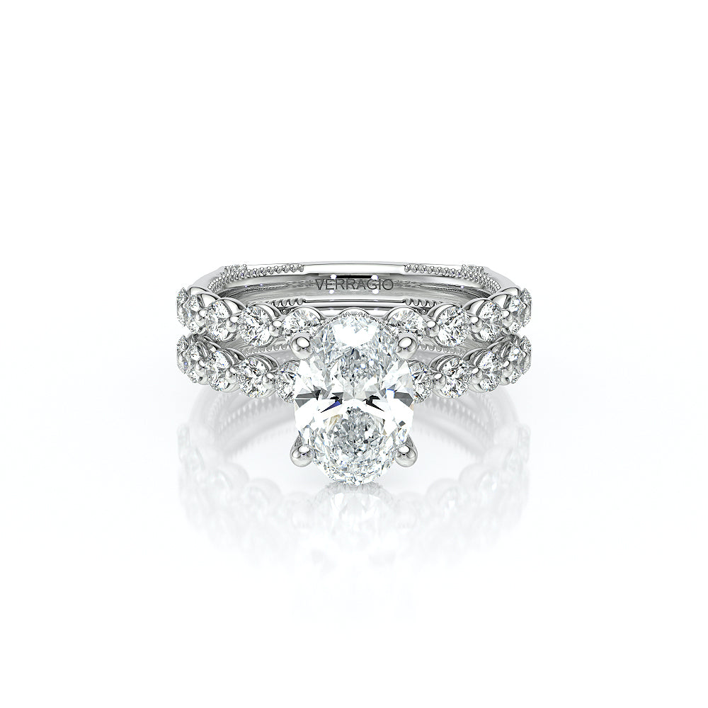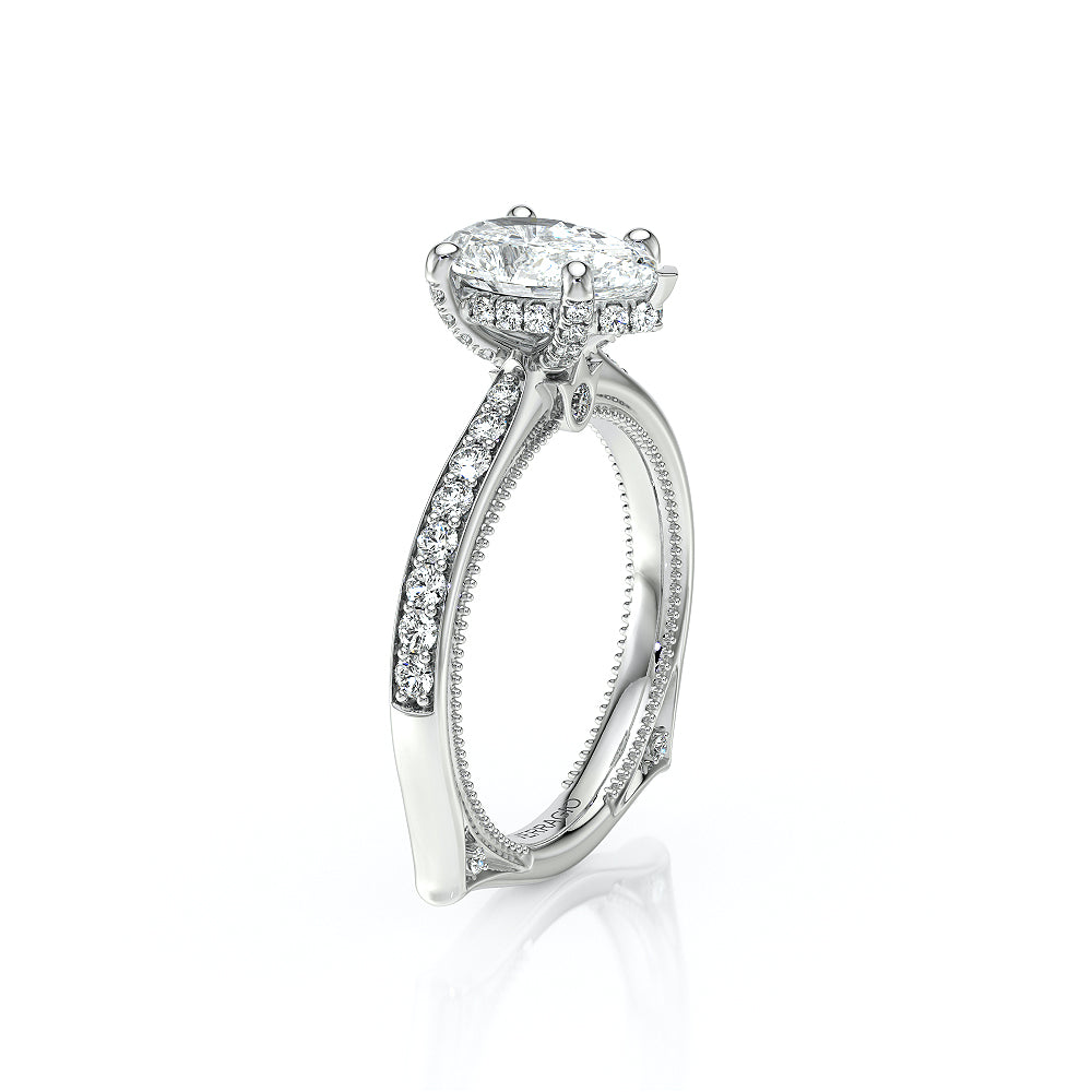 The VNG-2207OV pairs its euro-style design with an oval-shaped center stone setting, complemented by two bezels, signature Verragio beading, and two rows of diamonds on each side of the prong for an exquisite finish.
