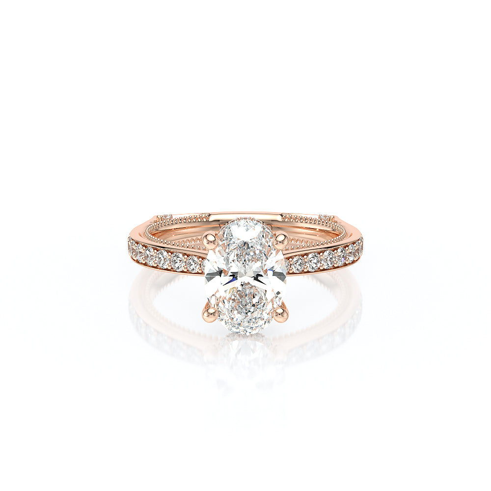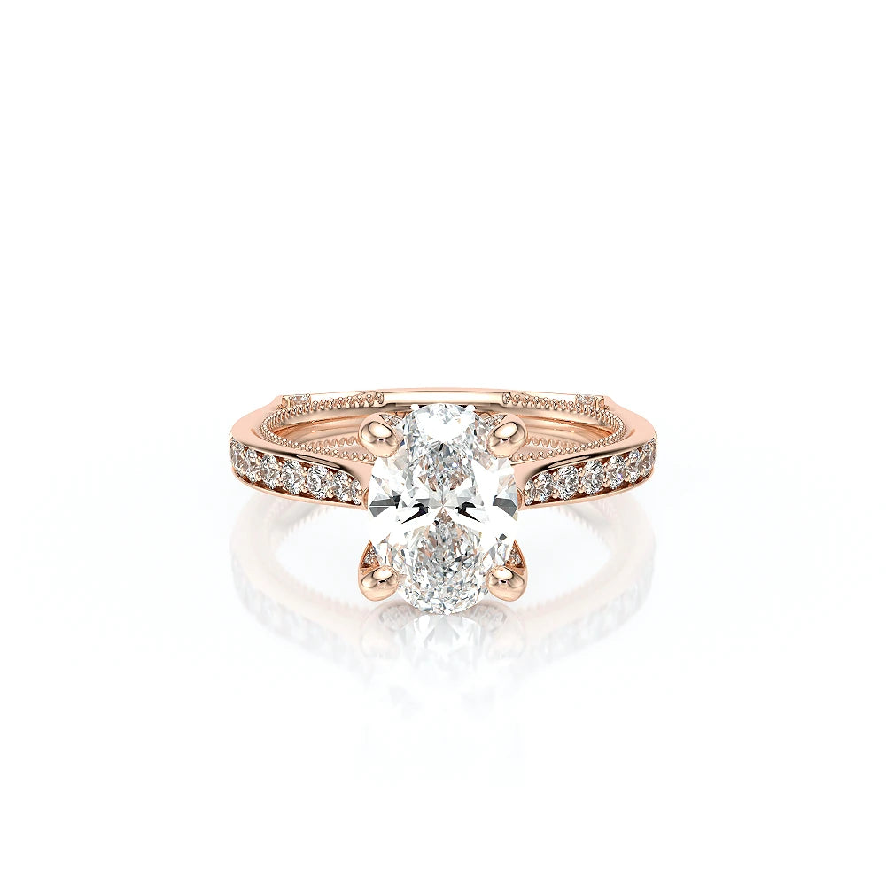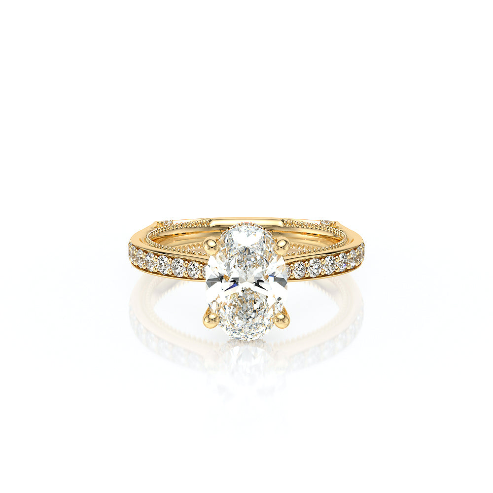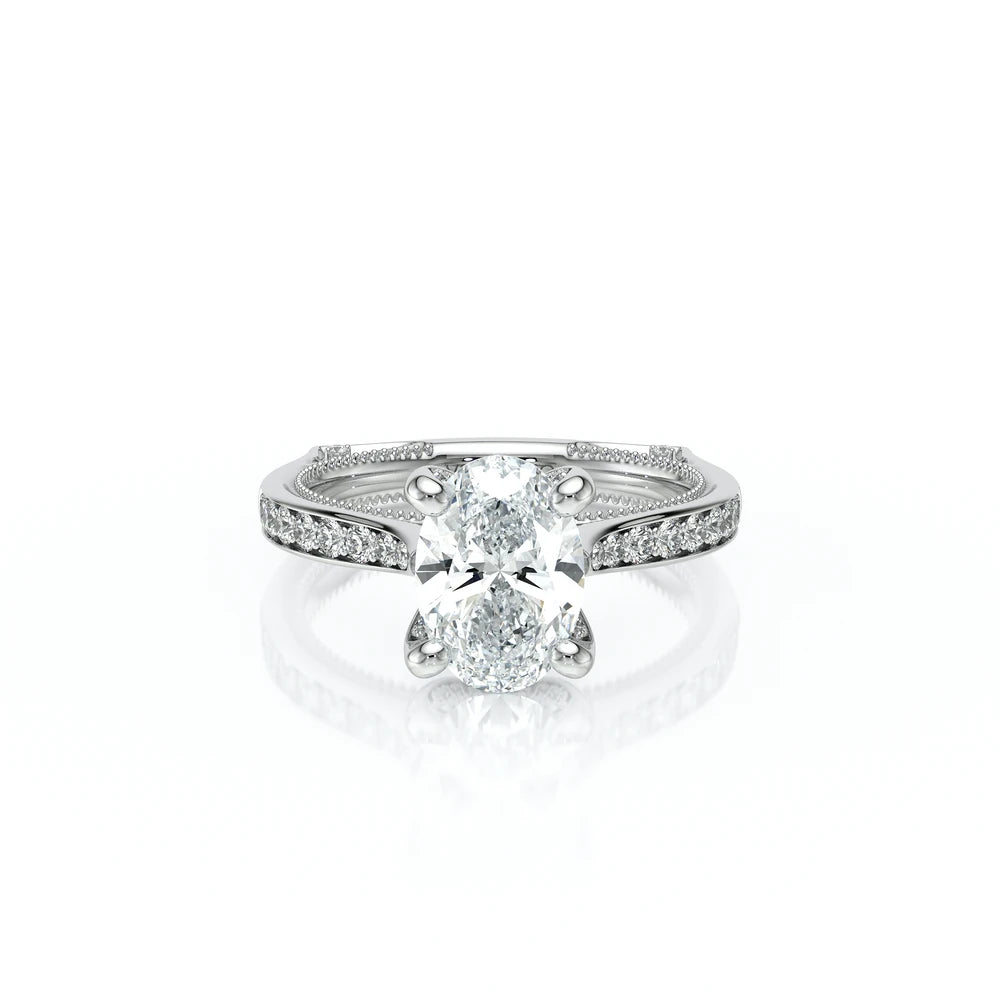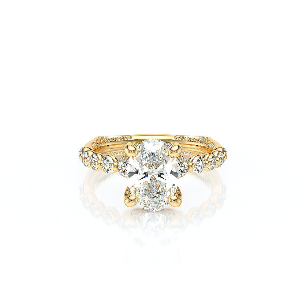 The VNG-2207OV pairs its euro-style design with an oval-shaped center stone setting, complemented by two bezels, signature Verragio beading, and two rows of diamonds on each side of the prong for an exquisite finish.