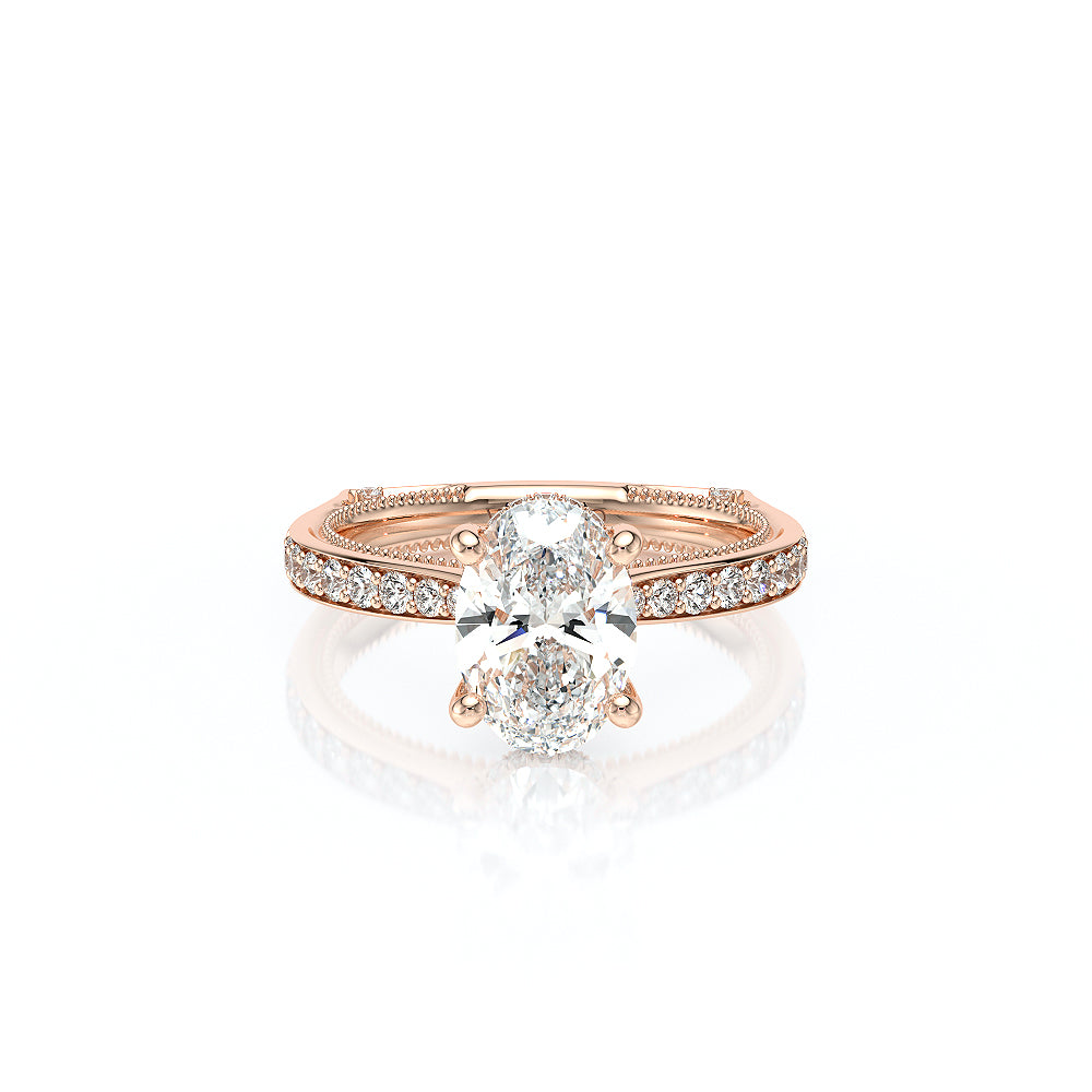 Set for an oval center, the VNG-2201OV-2.4 features a euro-style shank at the bottom of the ring, elevated by two tiny diamond bezels. 2.4mm stones gracefully adorn the shank, set with a single shared prong for a timeless and elegant design.