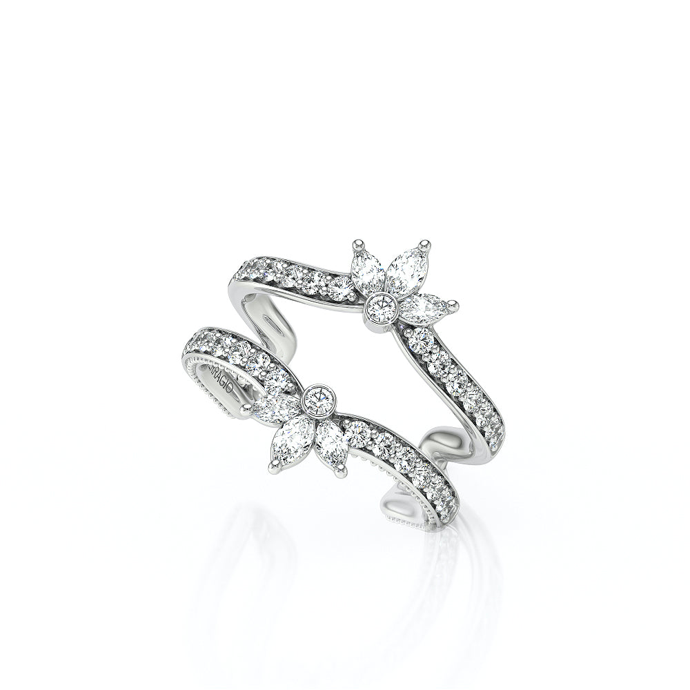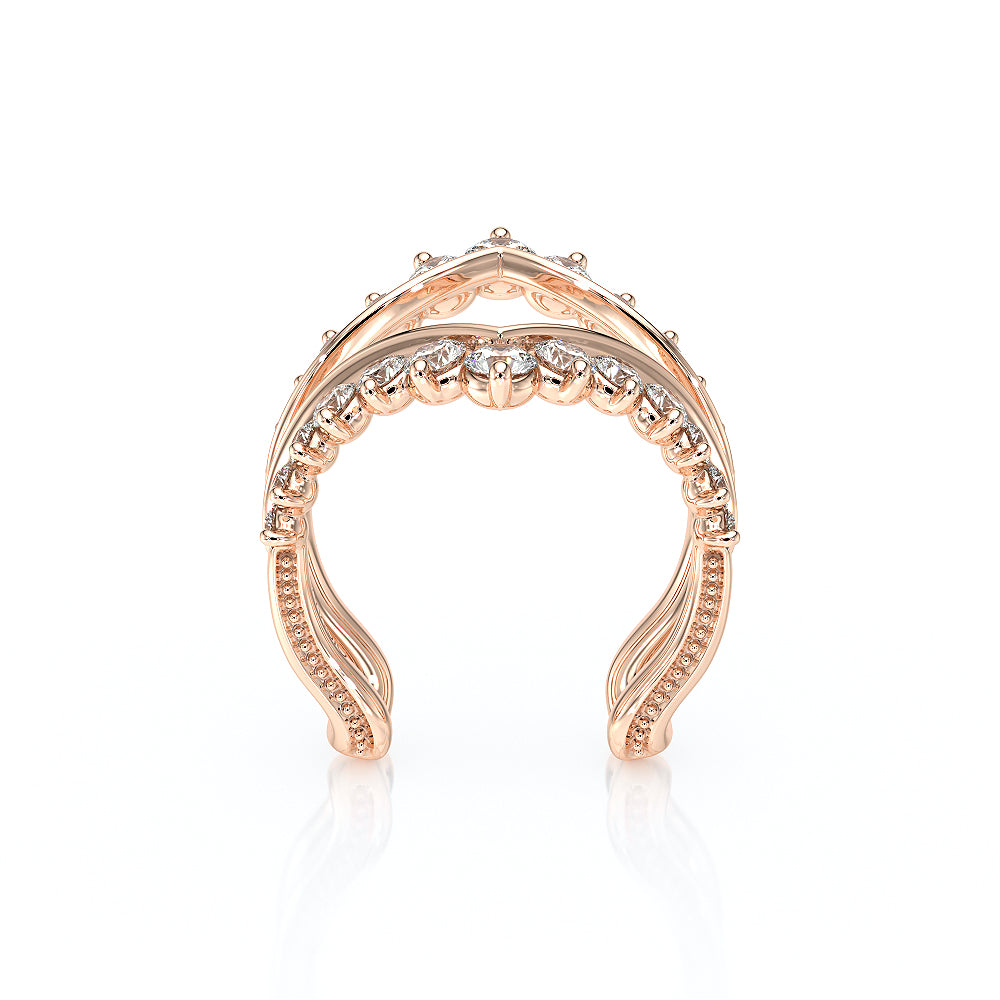 The refined and minimalistic embellisher, VNG-2034W, enhances your engagement ring or wedding band with a subtle elegance, featuring a distinctive three-pointed Verragio crest that exudes sophistication and versatility.