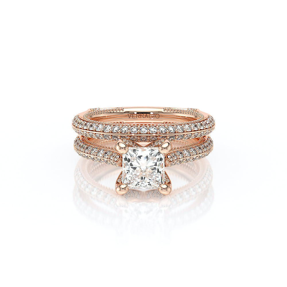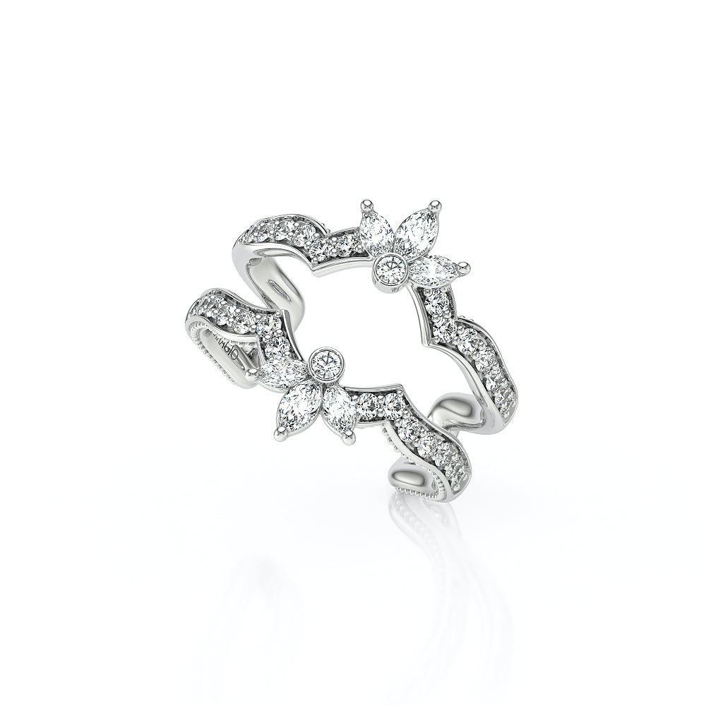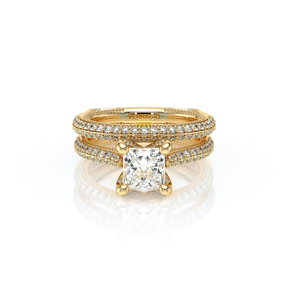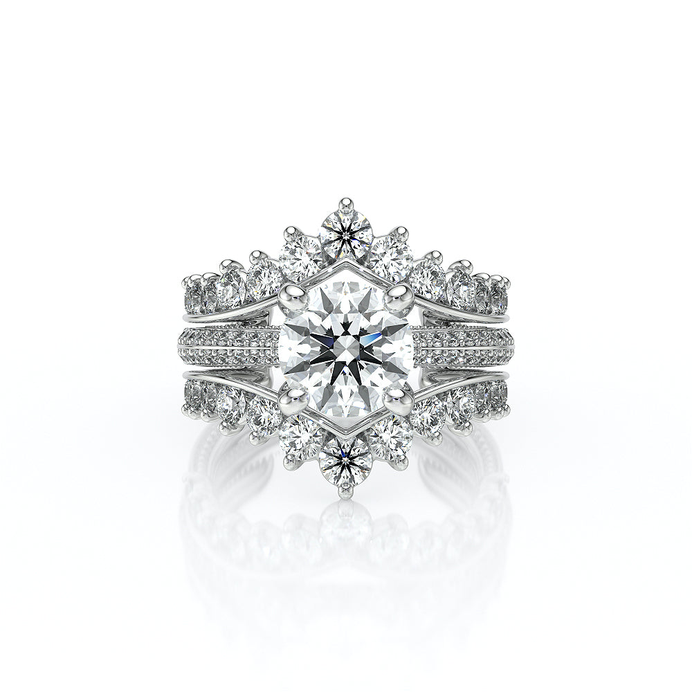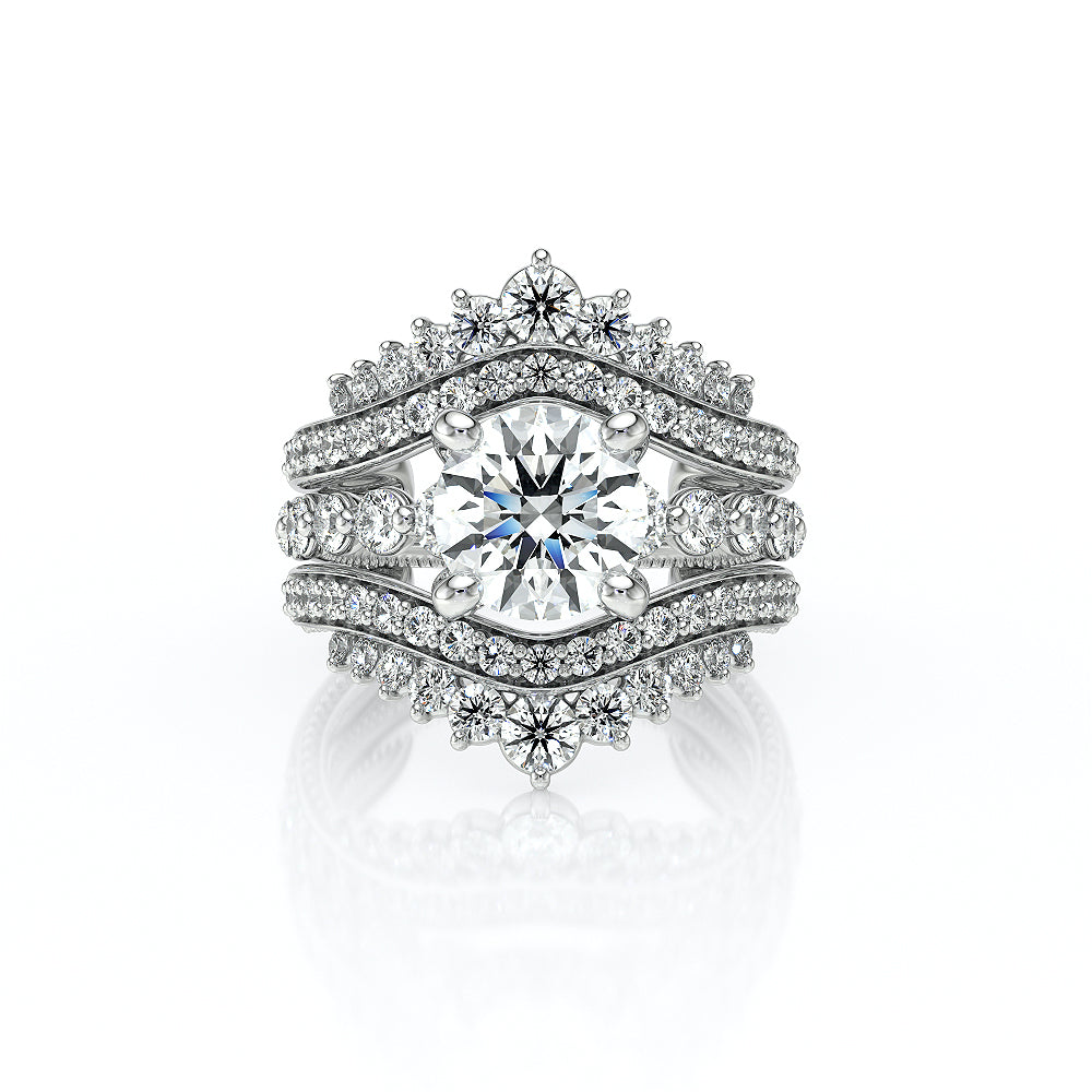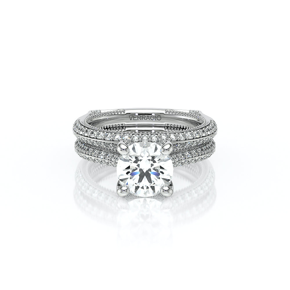 The diamond-intensive embellisher, VNG-2039W, showcases two inner rows of tiny round diamonds, beautifully framed by an outer row of graduating stones that transition seamlessly from small to large, creating a bold and visually stunning design that highlights Verragio's mastery in craftsmanship.