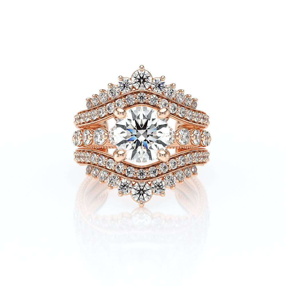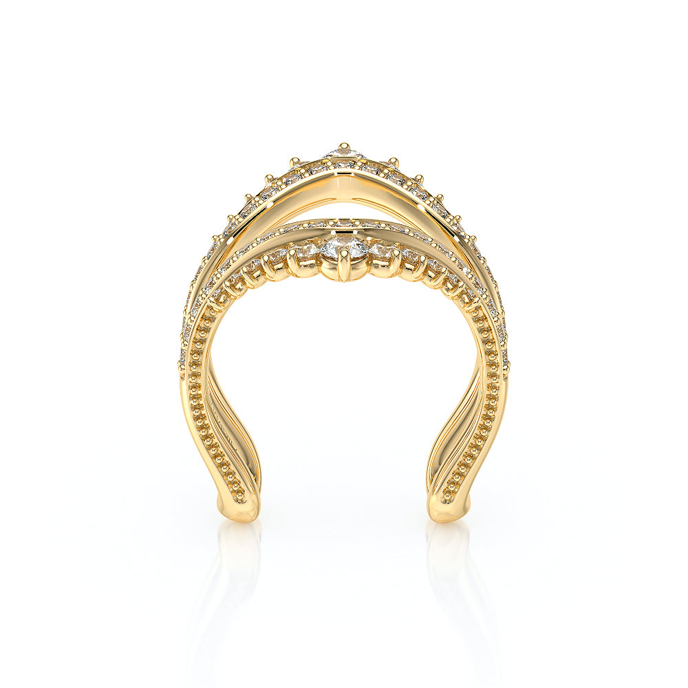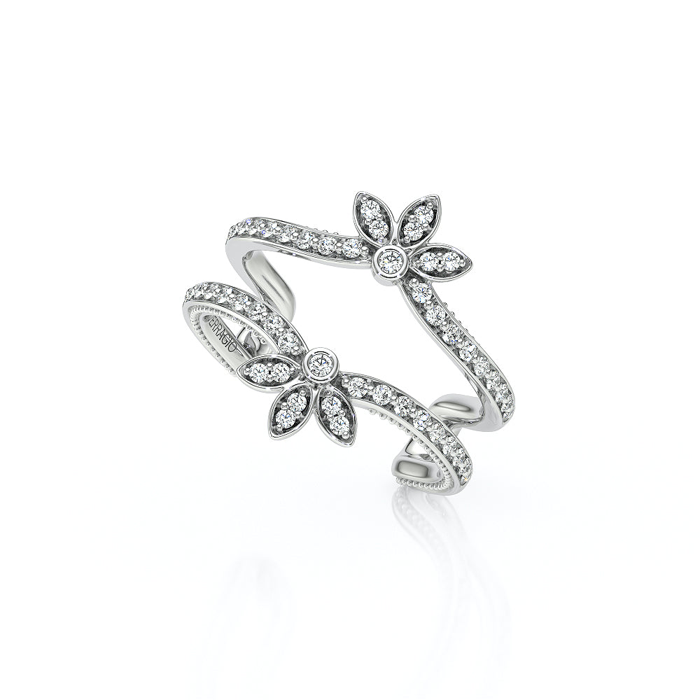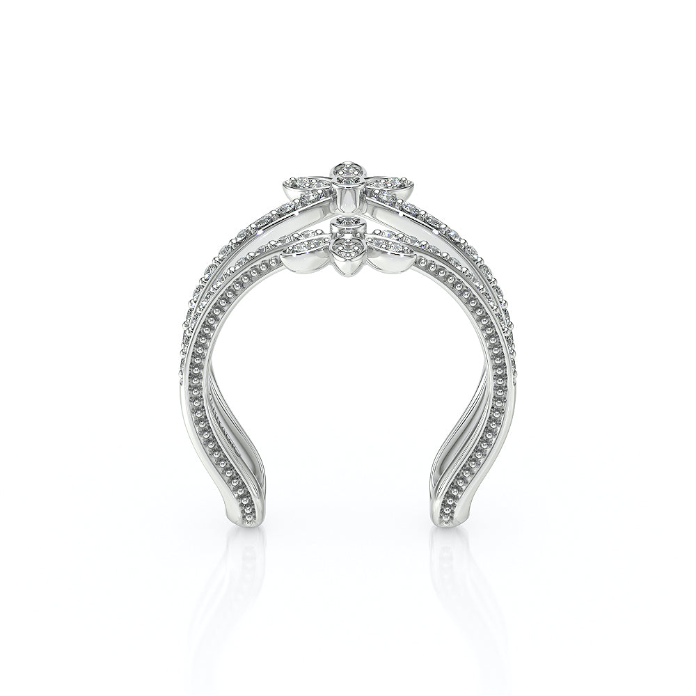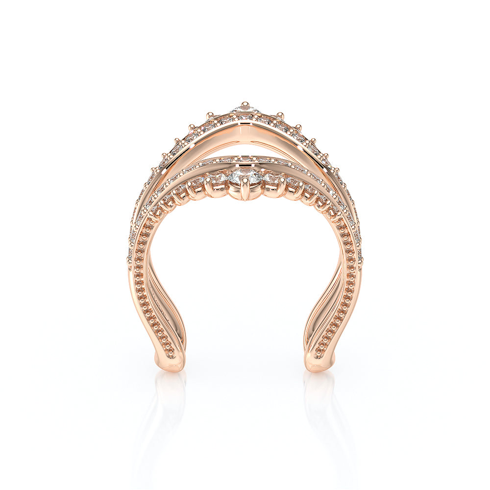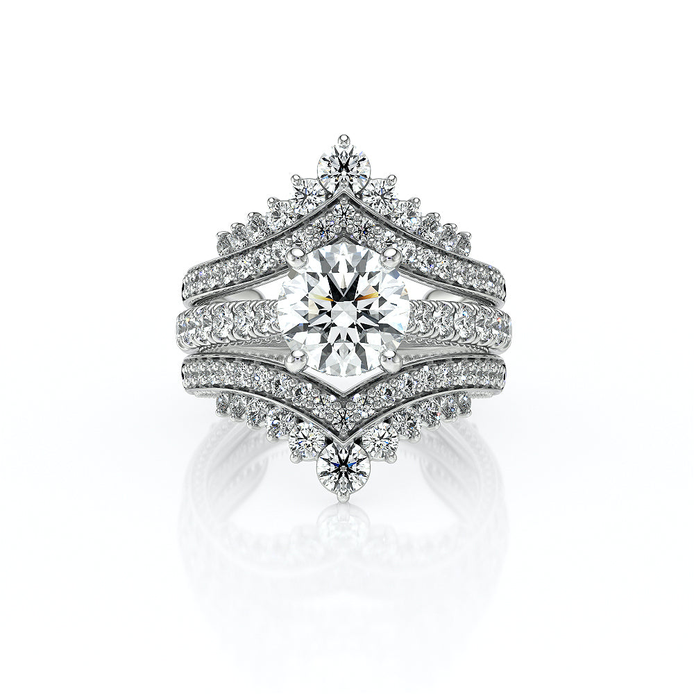 The diamond-intensive embellisher, VNG-2039W, showcases two inner rows of tiny round diamonds, beautifully framed by an outer row of graduating stones that transition seamlessly from small to large, creating a bold and visually stunning design that highlights Verragio's mastery in craftsmanship.