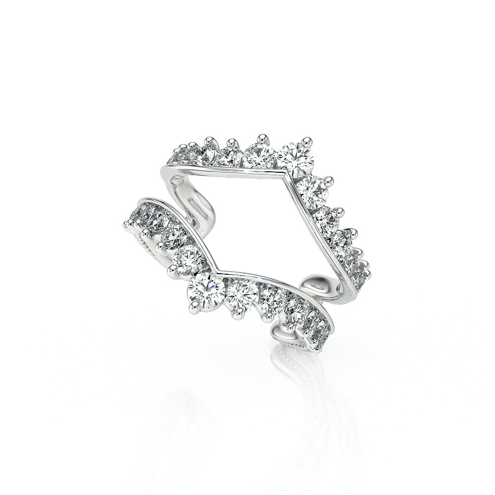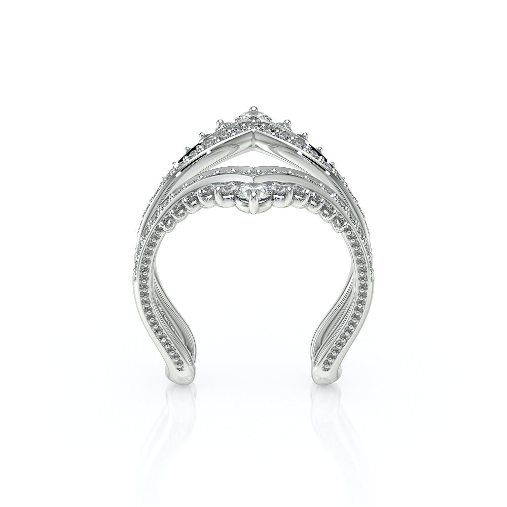 The bold and striking embellisher, VNG-2035W, features graduating stones that gracefully flow from the bottom to the top, creating a dramatic and eye-catching design. Perfect for making a statement, this piece embodies Verragio's commitment to innovative craftsmanship and timeless elegance.