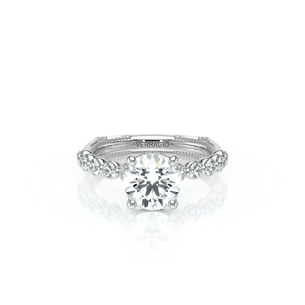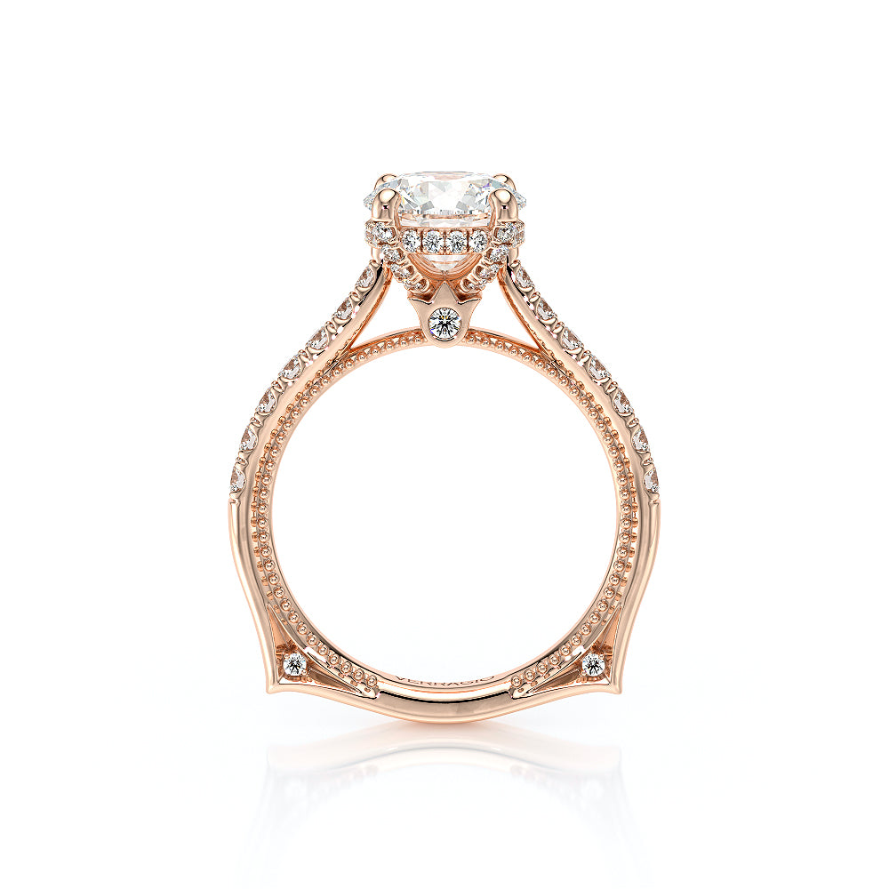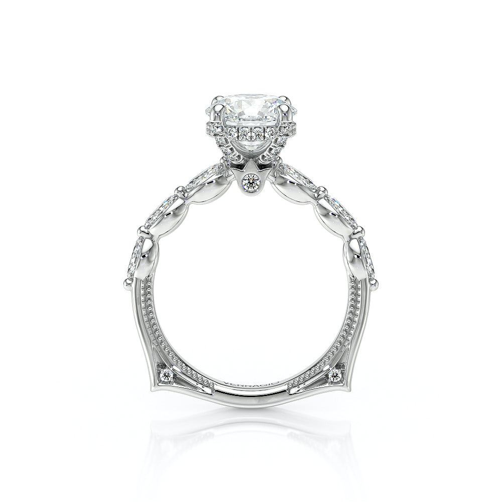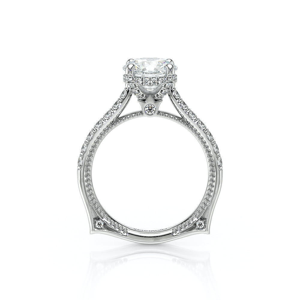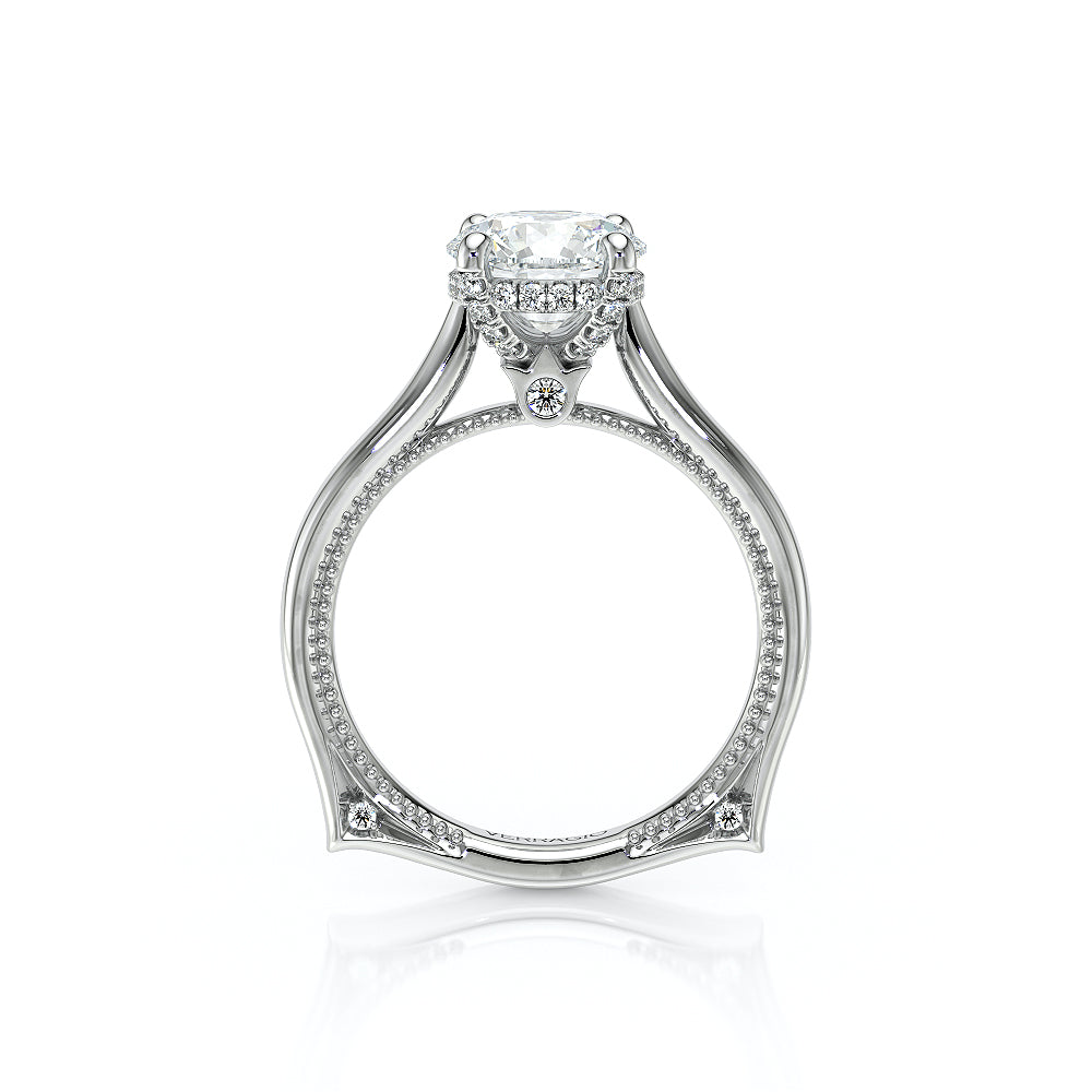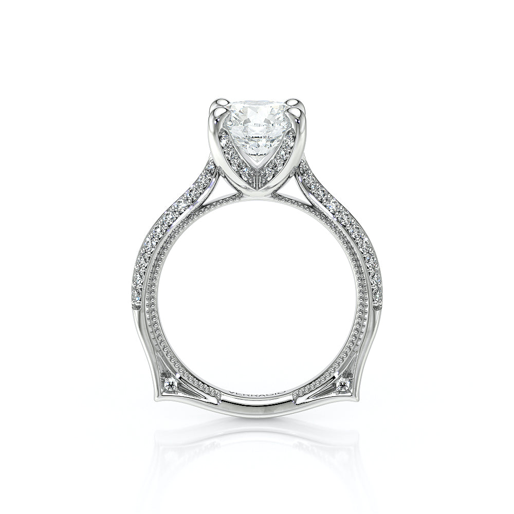 The VNG-2204P highlights a knife-edge shank with round stones, Verragio beading on the side profile, and diamond-accented prongs that enhance the overall aesthetic.