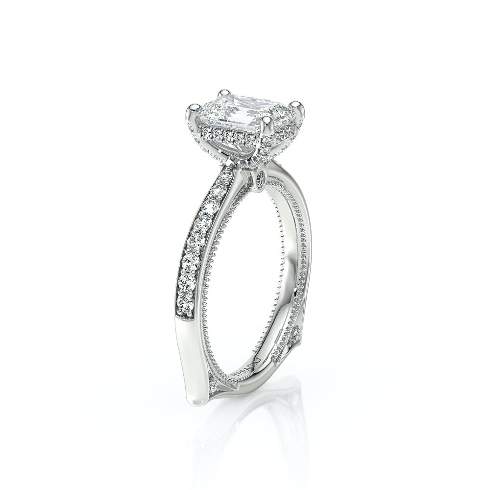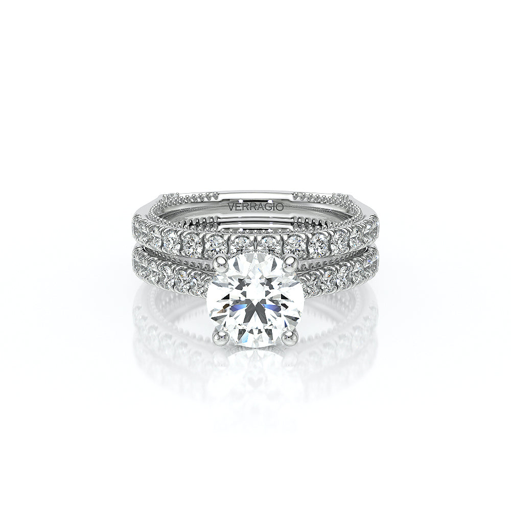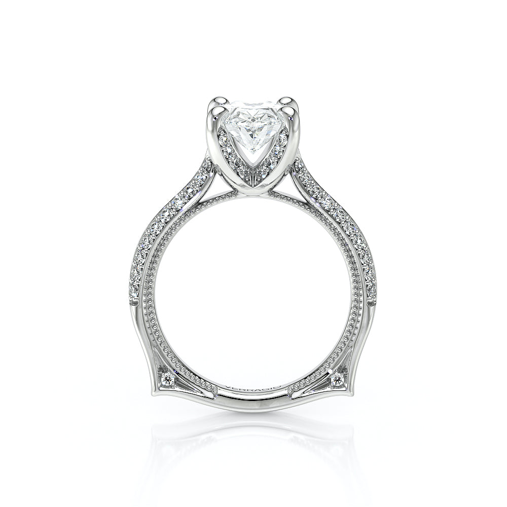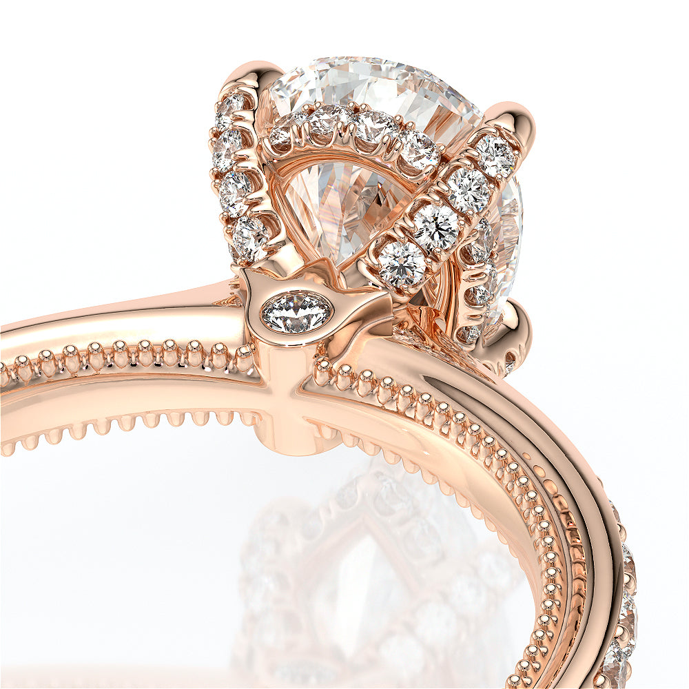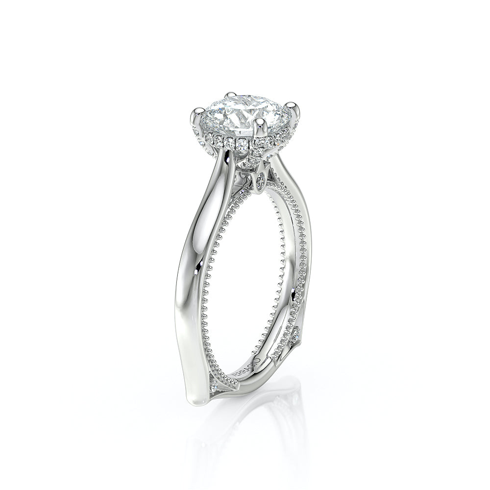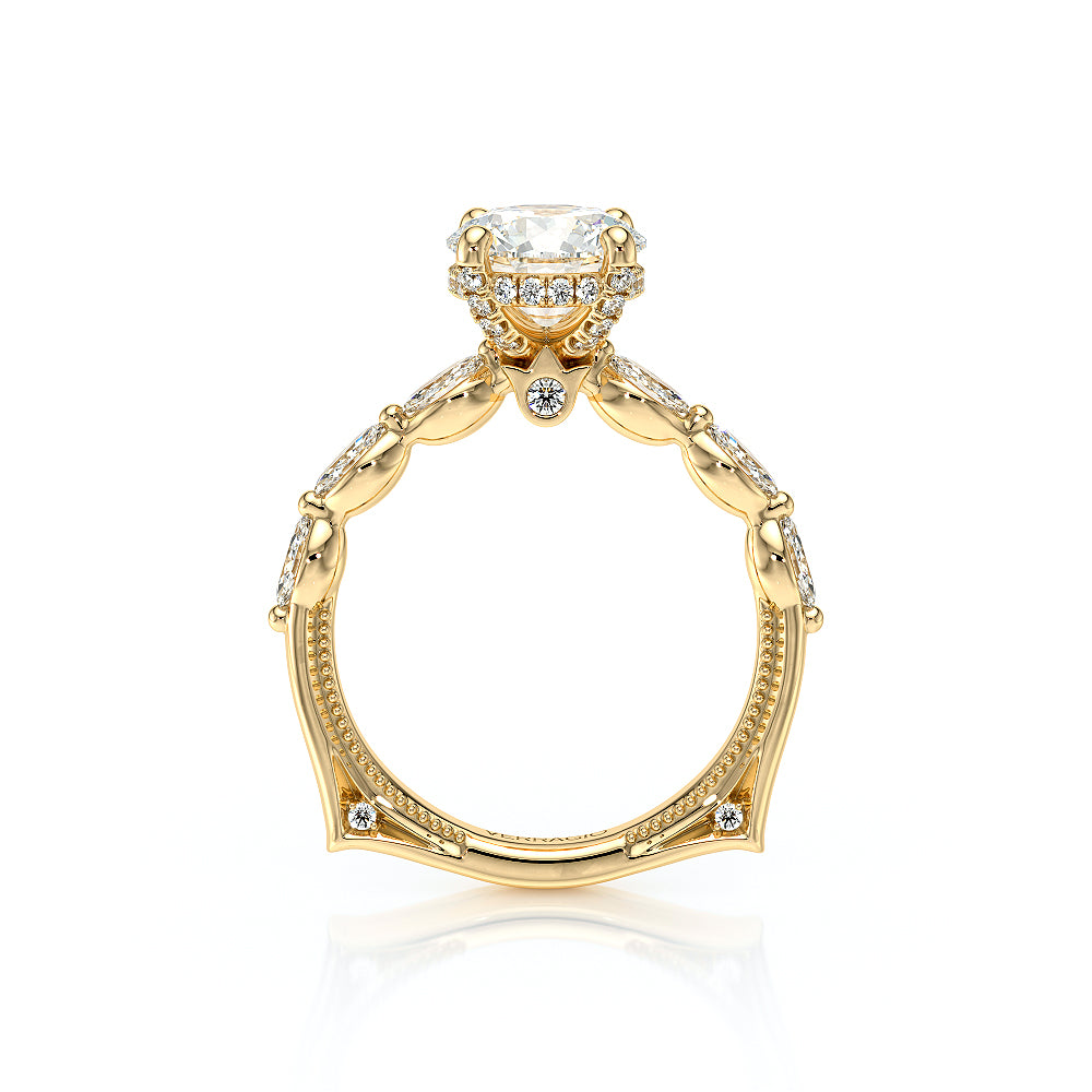 The VNG-2204P highlights a knife-edge shank with round stones, Verragio beading on the side profile, and diamond-accented prongs that enhance the overall aesthetic.