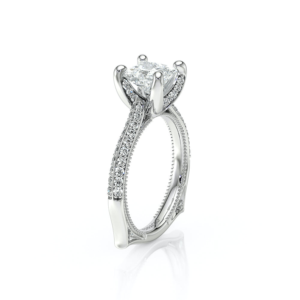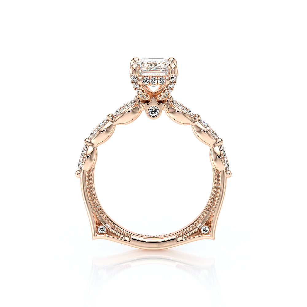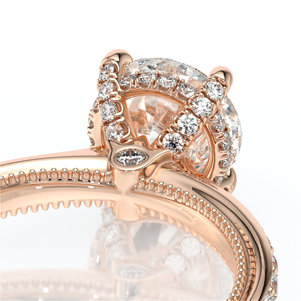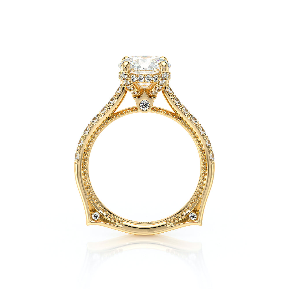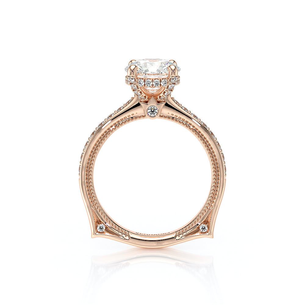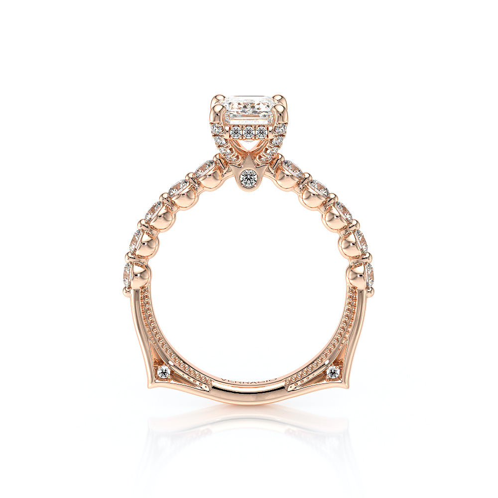 The VNG-2204P highlights a knife-edge shank with round stones, Verragio beading on the side profile, and diamond-accented prongs that enhance the overall aesthetic.