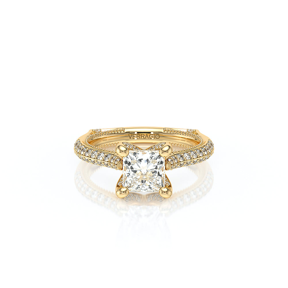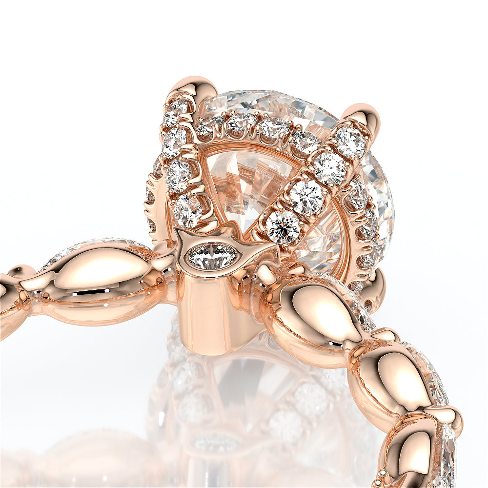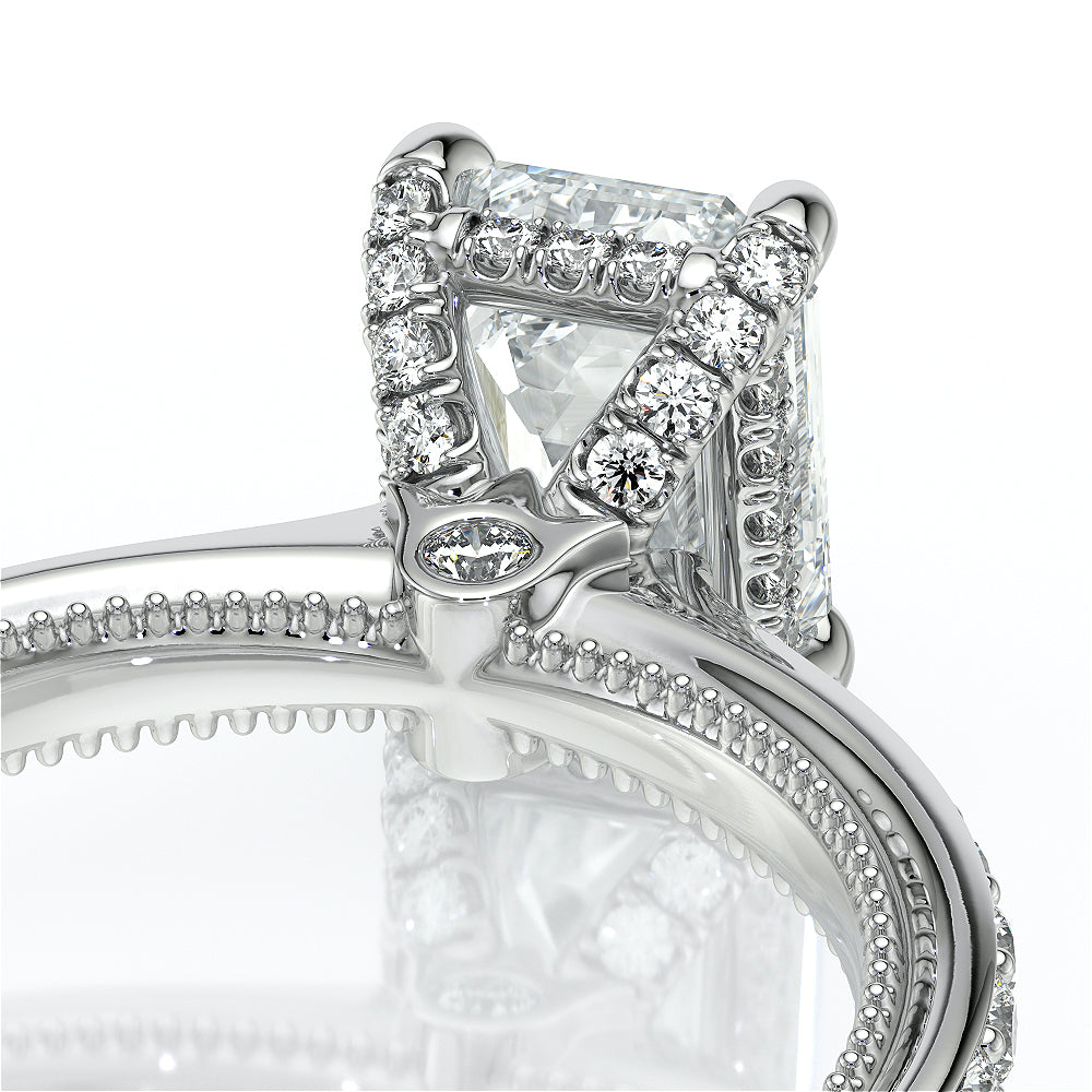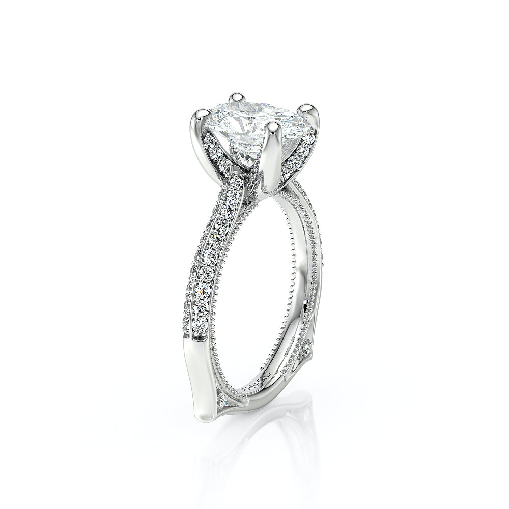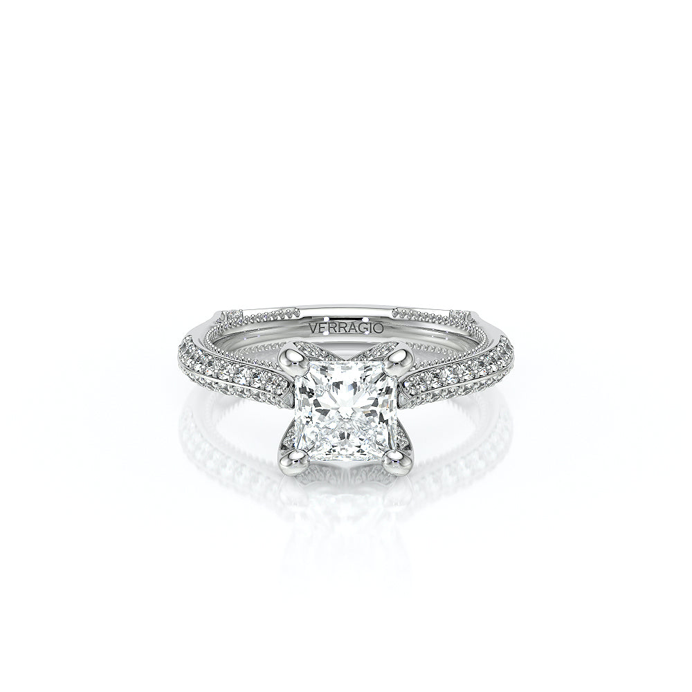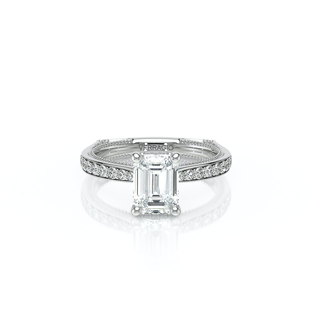 The VNG-2204P highlights a knife-edge shank with round stones, Verragio beading on the side profile, and diamond-accented prongs that enhance the overall aesthetic.