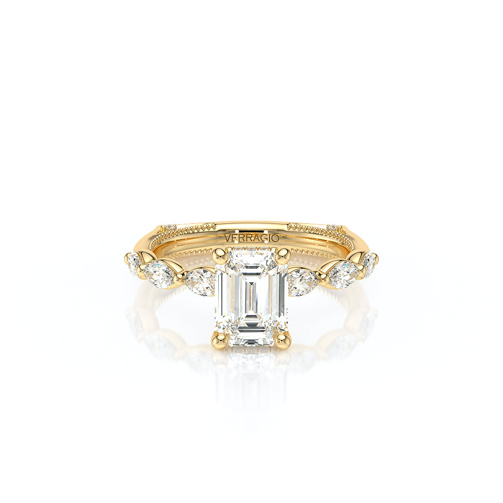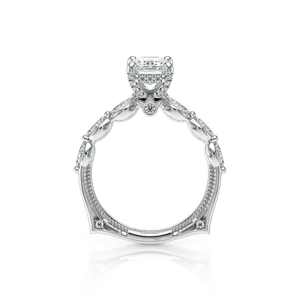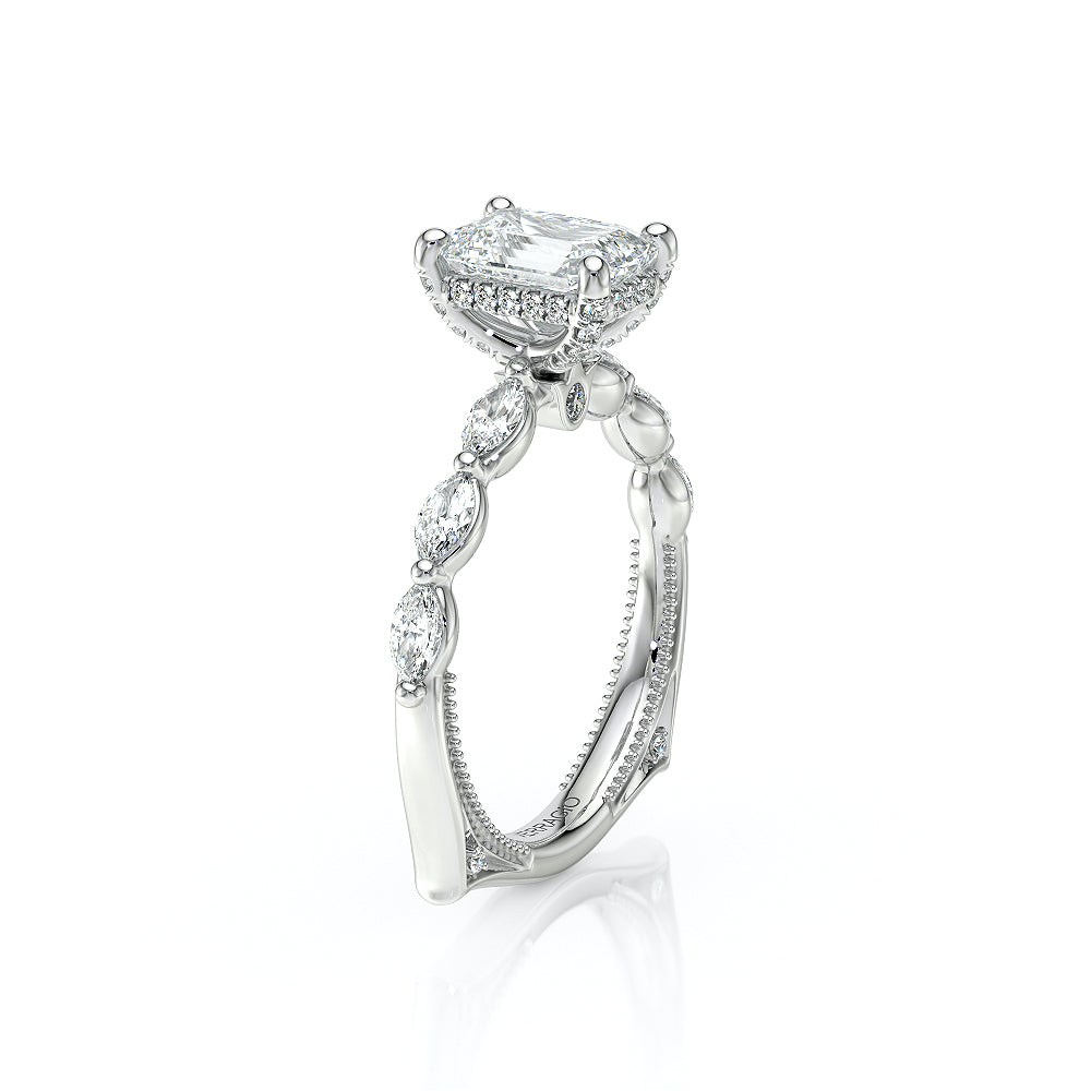 The VNG-2205R showcases three bold south-to-west facing marquise stones along the shank, complemented by Verragio beading and a diamond head for added sparkle.