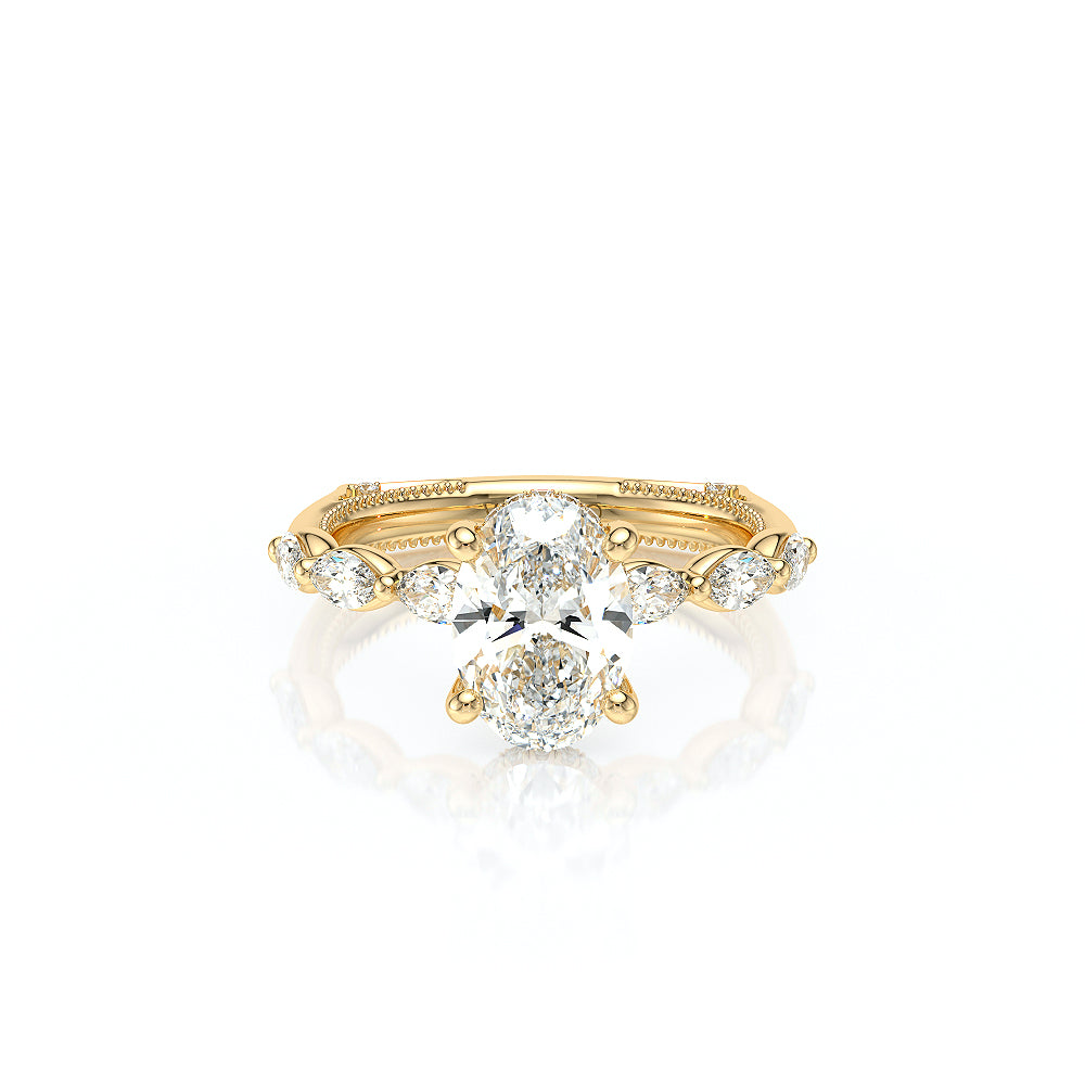 Set for an oval center, the VNG-2202OV-2.5 features a euro-style shank adorned with alternating round and marquise stones, complemented by a diamond head for a refined and timeless design.