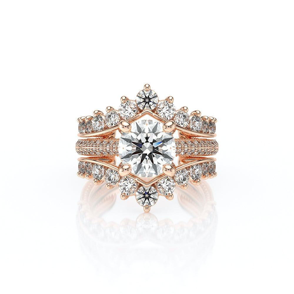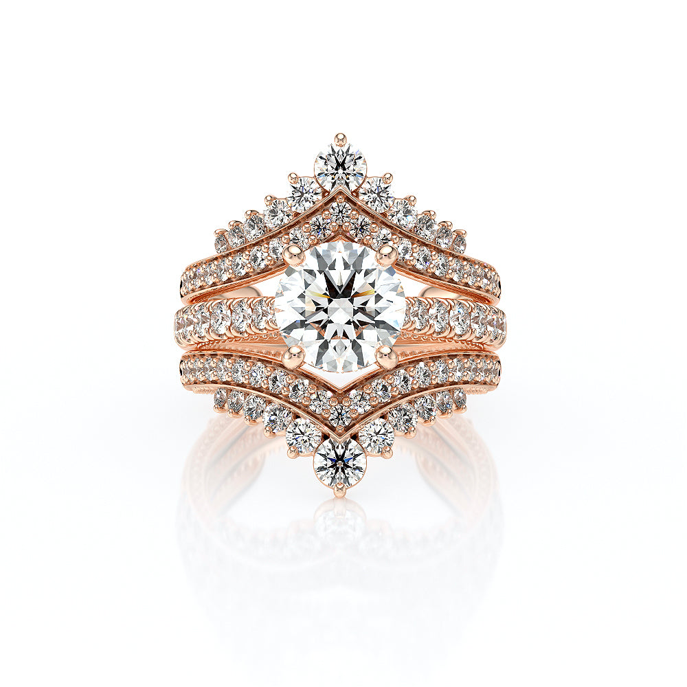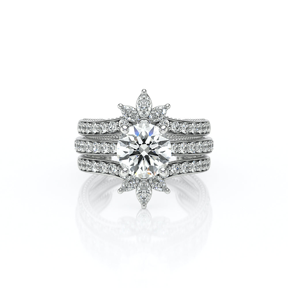 Set for a round center, the VNG-2202R-2.5 features a euro-style shank adorned with alternating round and marquise stones, complemented by a diamond head for a refined and timeless design.