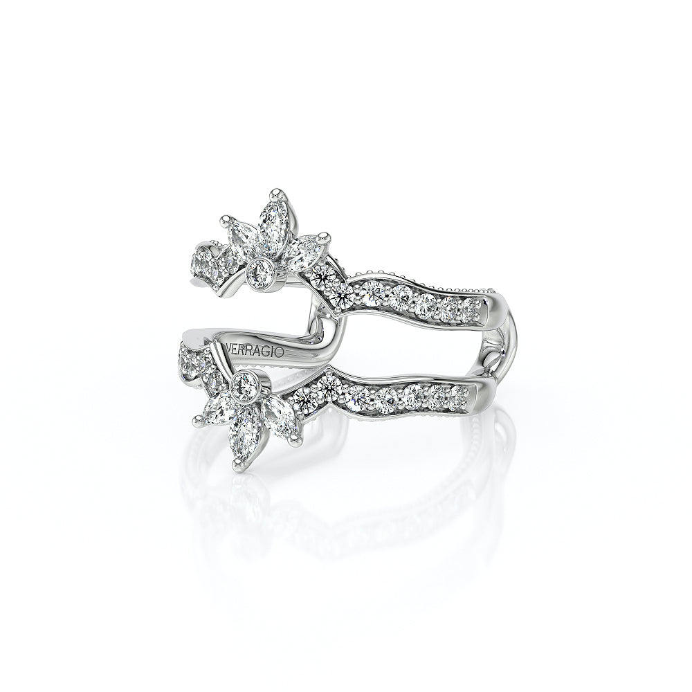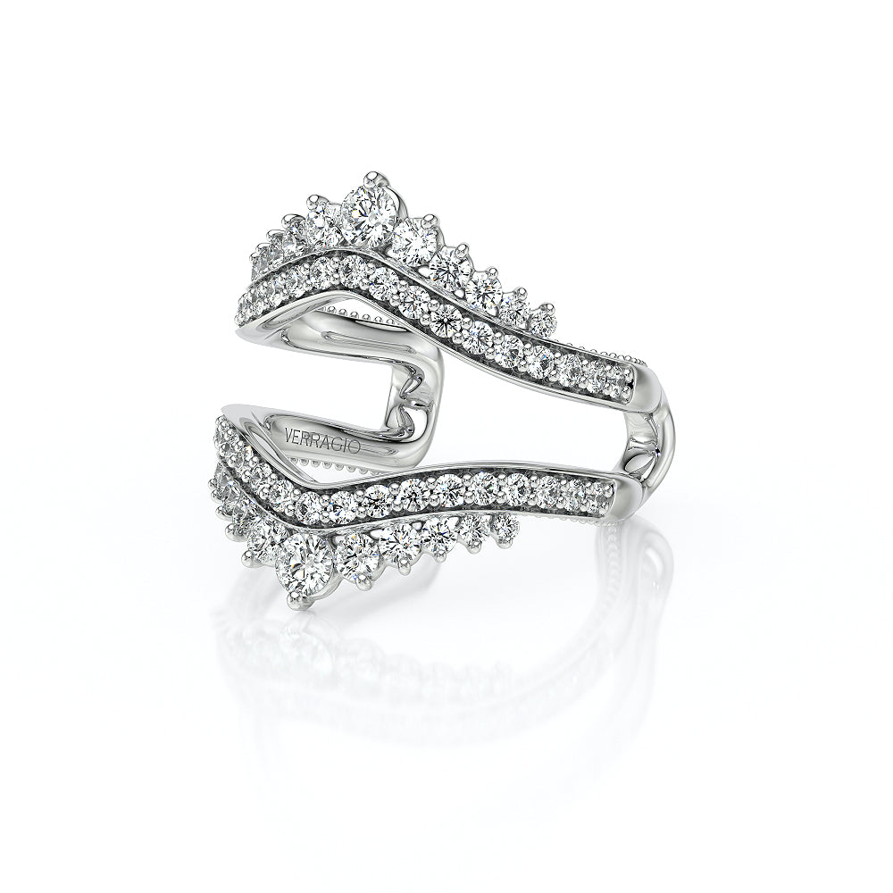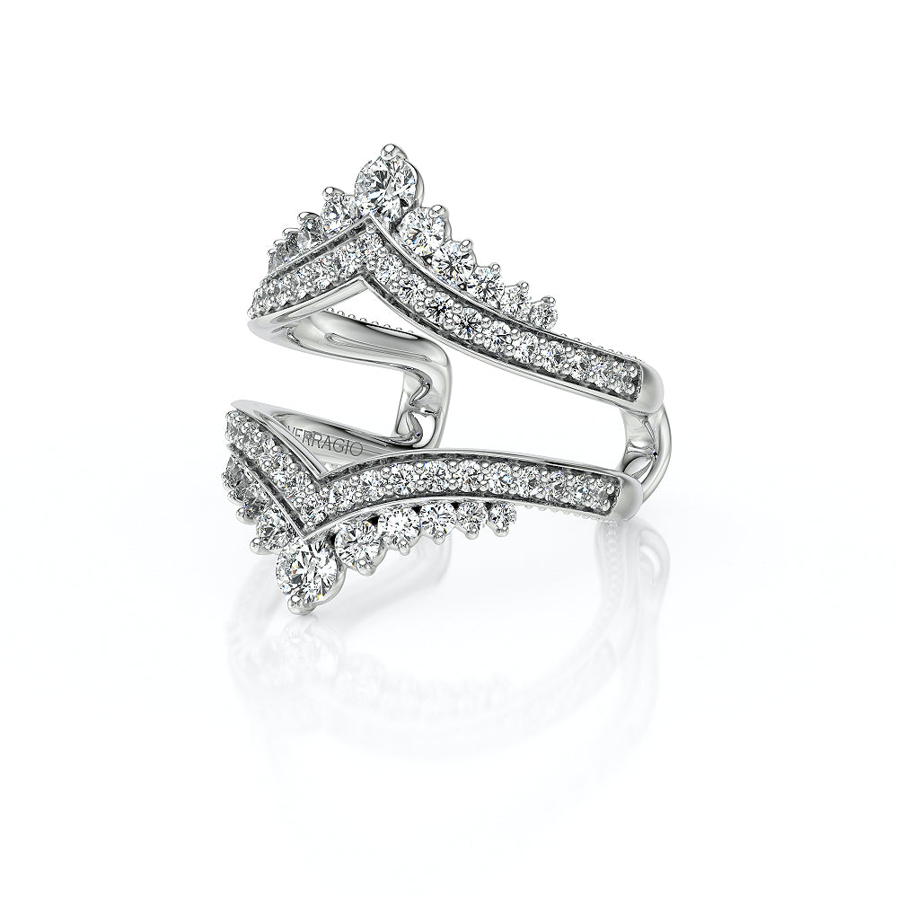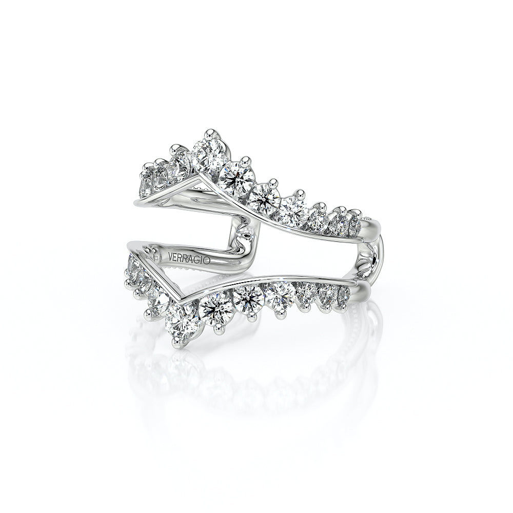 The clean and simplistic embellisher, VNG-2033W, is designed to elevate your engagement ring, wedding band, or to be worn on its own, featuring a striking three-pointed Verragio crest for a touch of timeless sophistication and versatility.