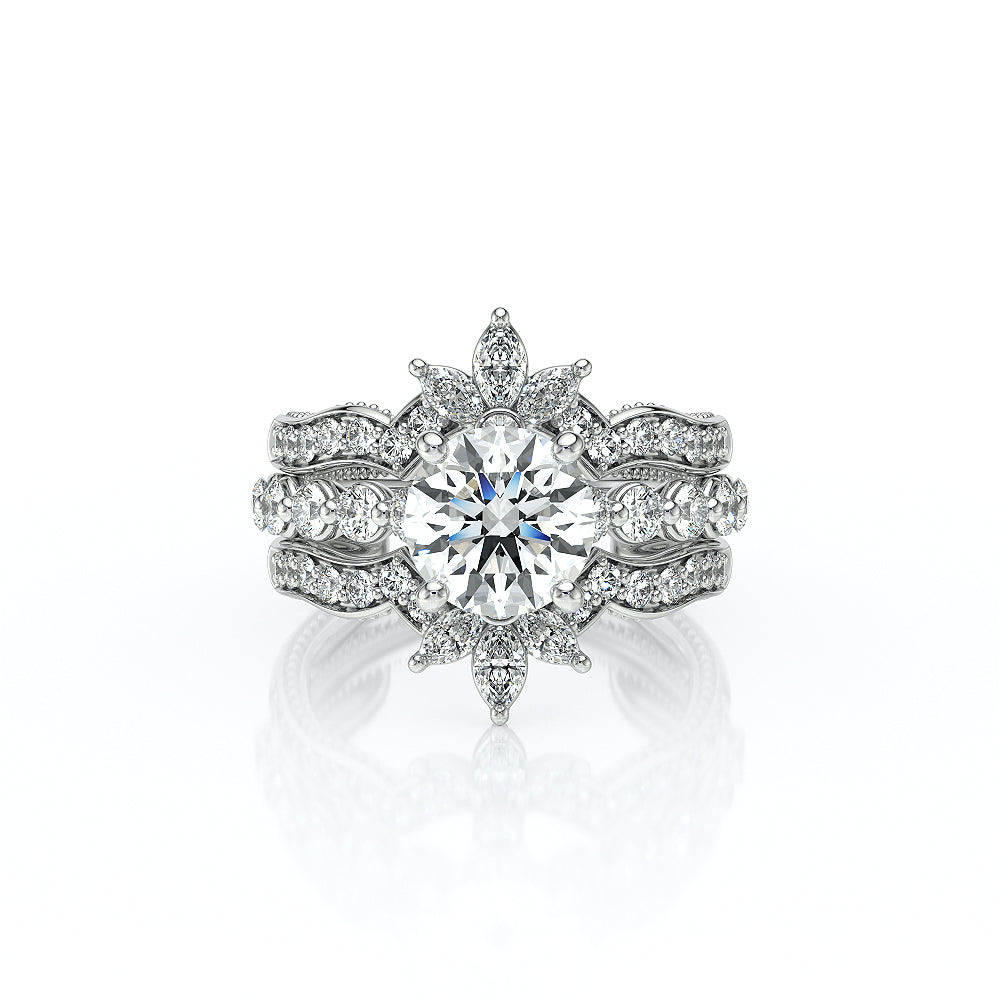 The VNG-2205EM combines three bold south-to-west facing marquise stones with Verragio beading and a diamond head, offering a sophisticated design with added sparkle.
