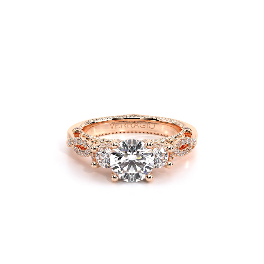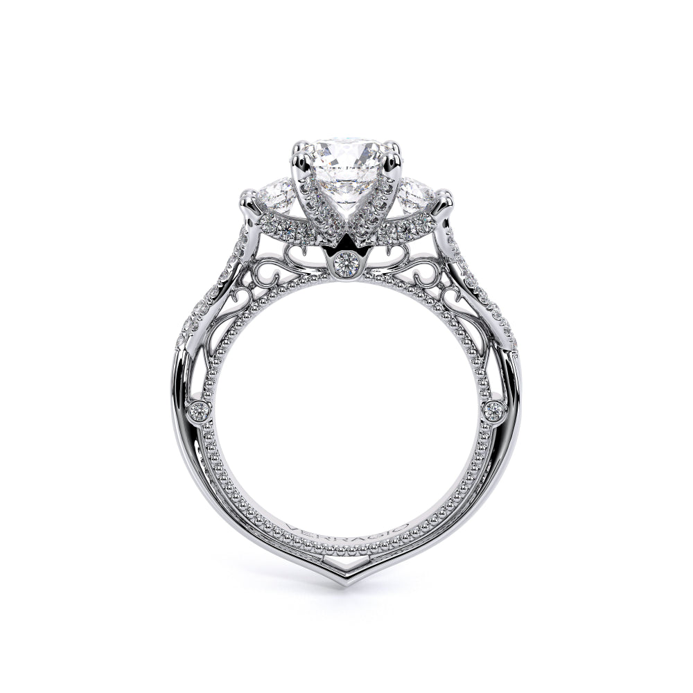 VENETIAN-5079R engagement ring from the Venetian Collection, features a vintage three stone round diamond prong setting, each encrusted with round brilliant diamonds. Our Verragio signature beading and lace detail beautifully binds together all elements and creates this visually stunning piece of art.
