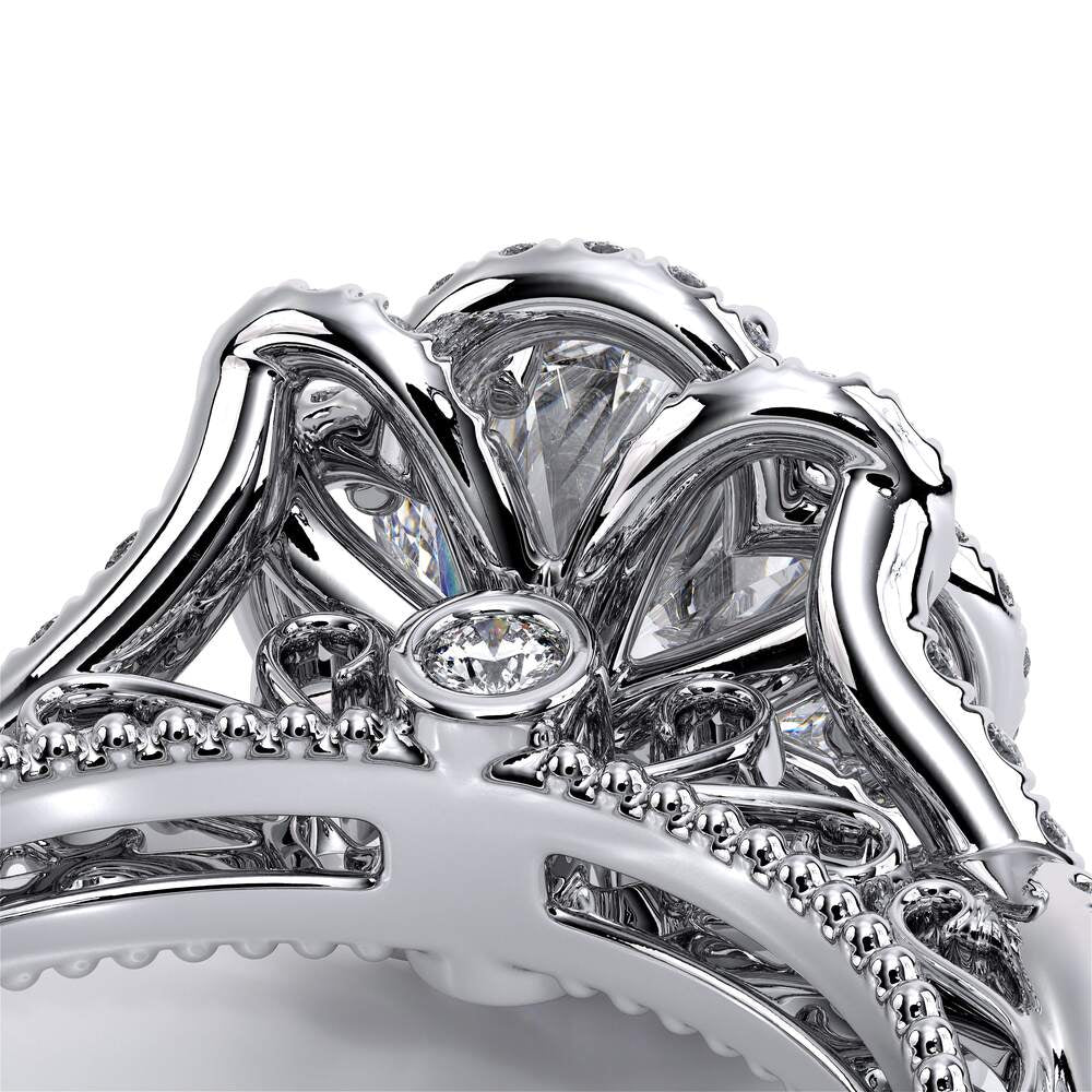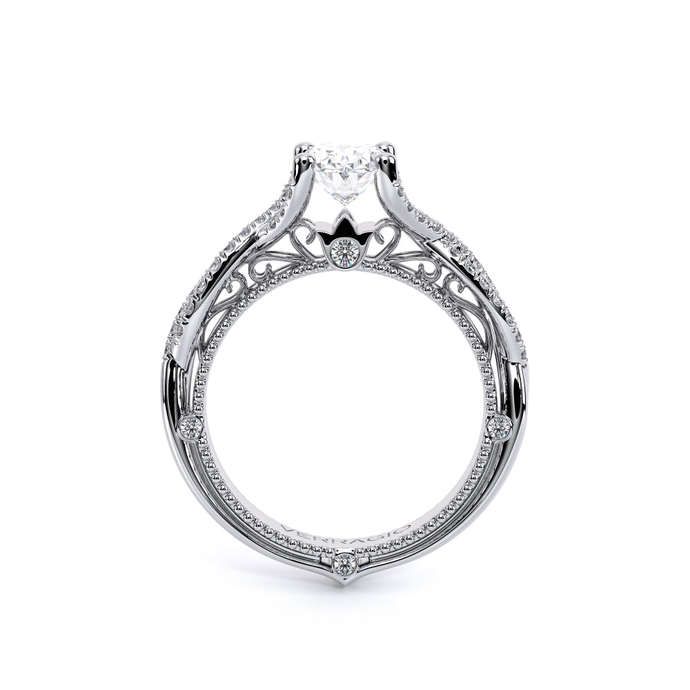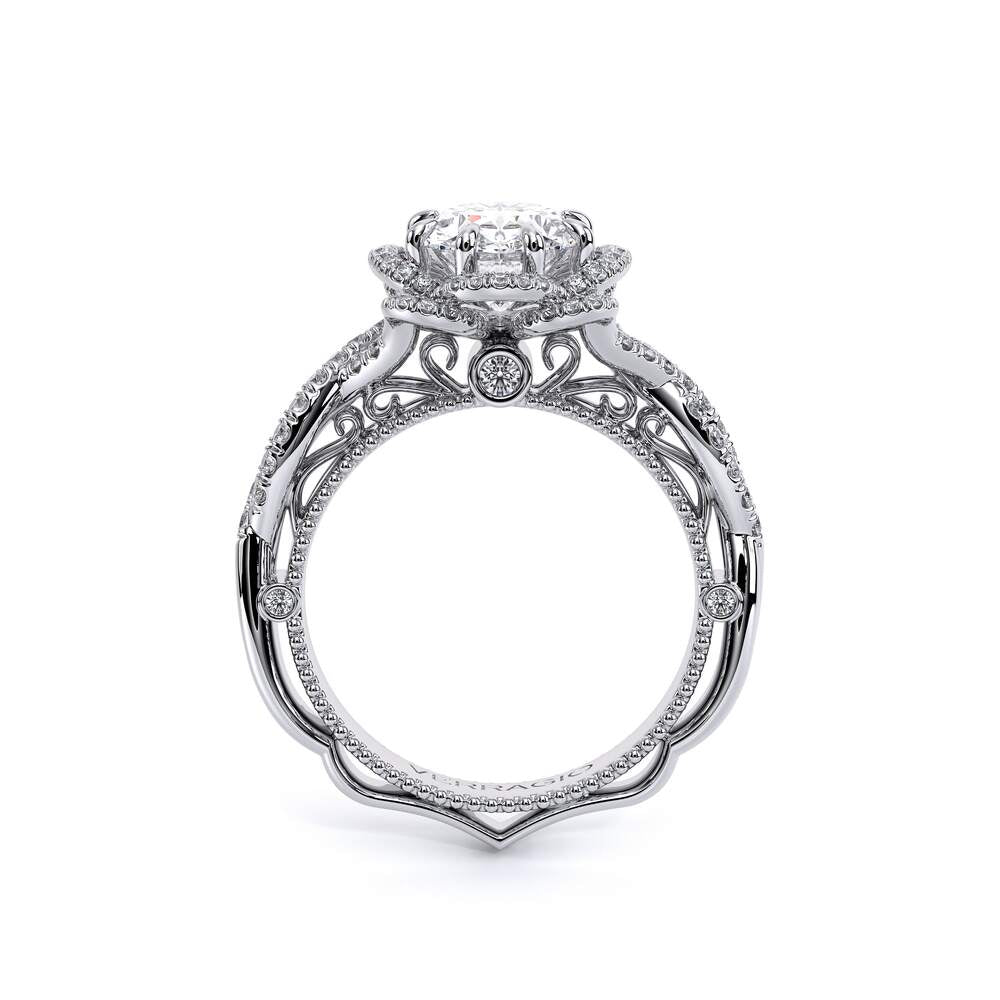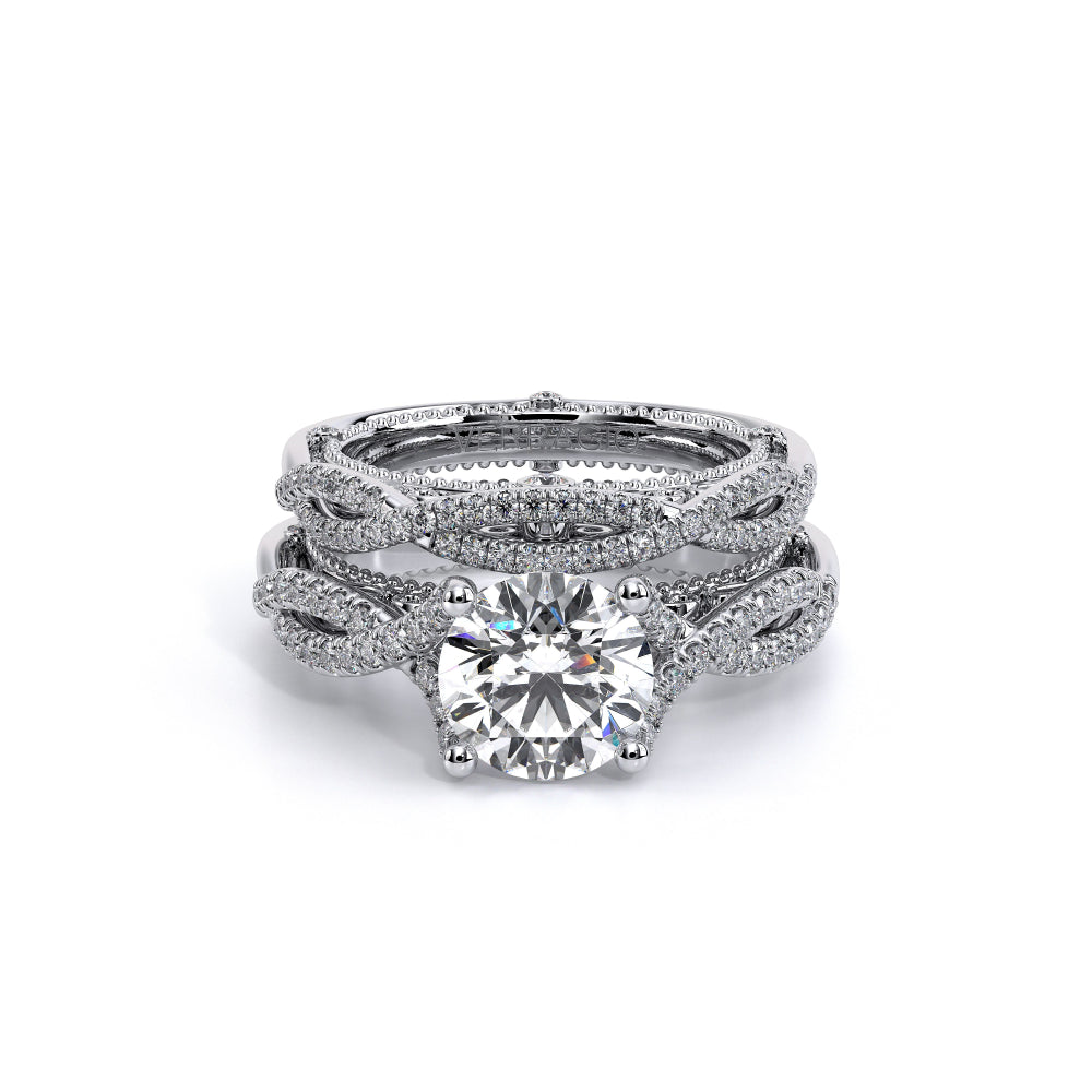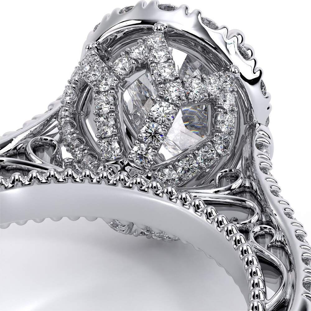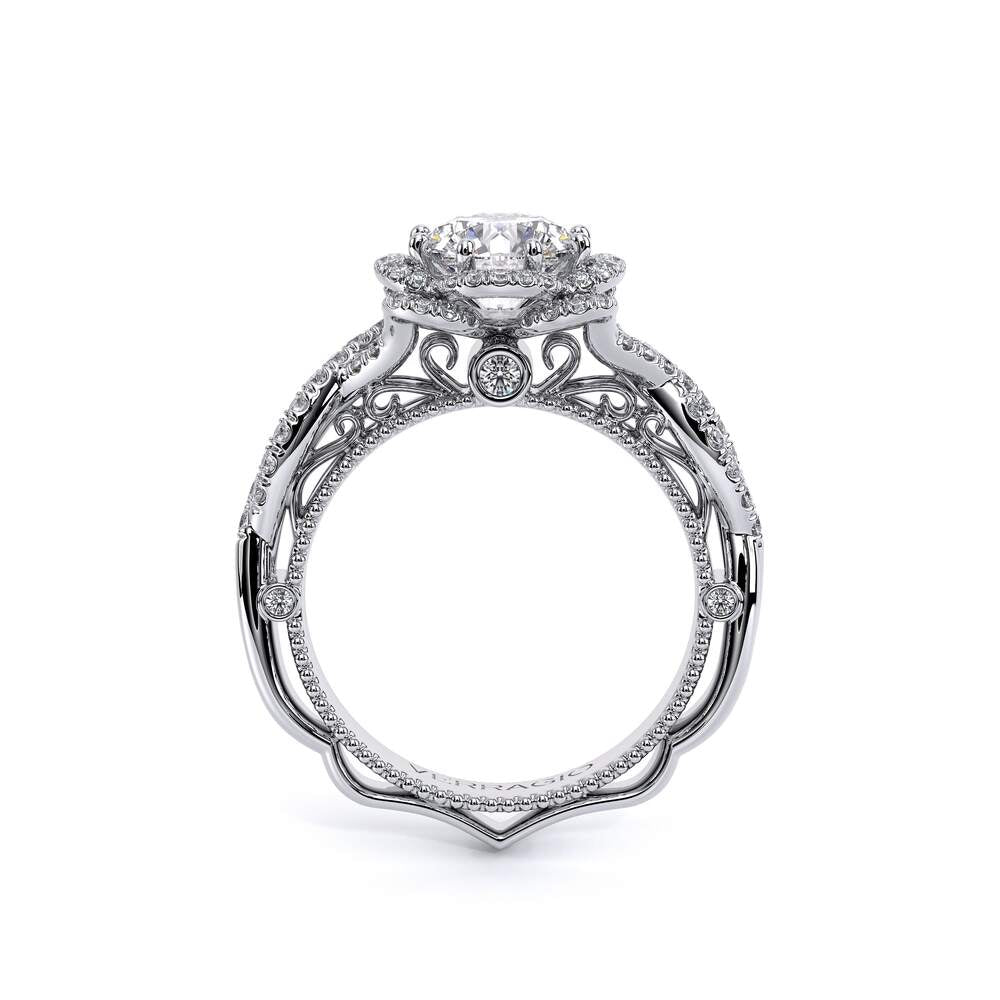 VENETIAN-5003 engagement ring from the Venetian Collection, features round brilliant-cut diamonds pave set in a twisted shank, enhancing any center shape of your choice in a floating design. Our beautiful Venetian lace and Verragio signature beading completes this vintage piece.