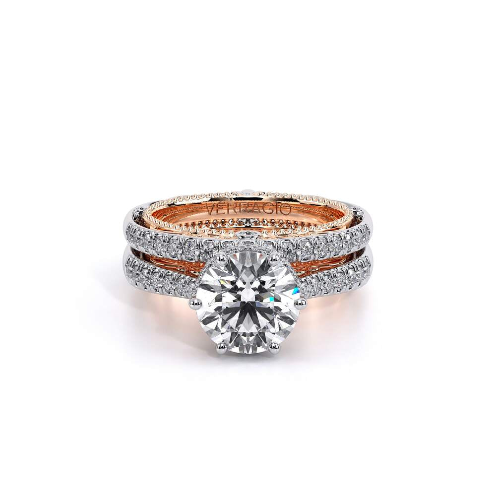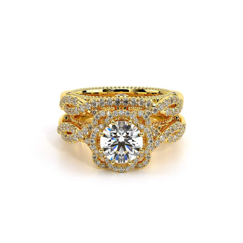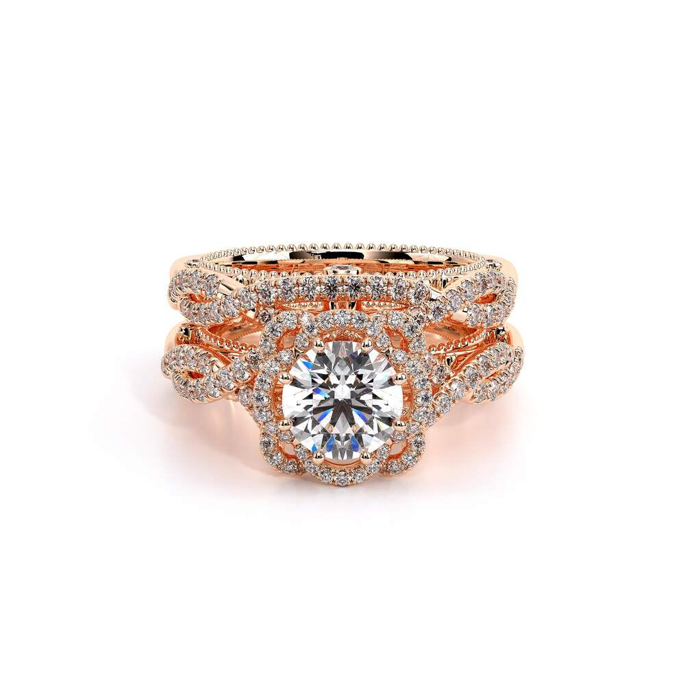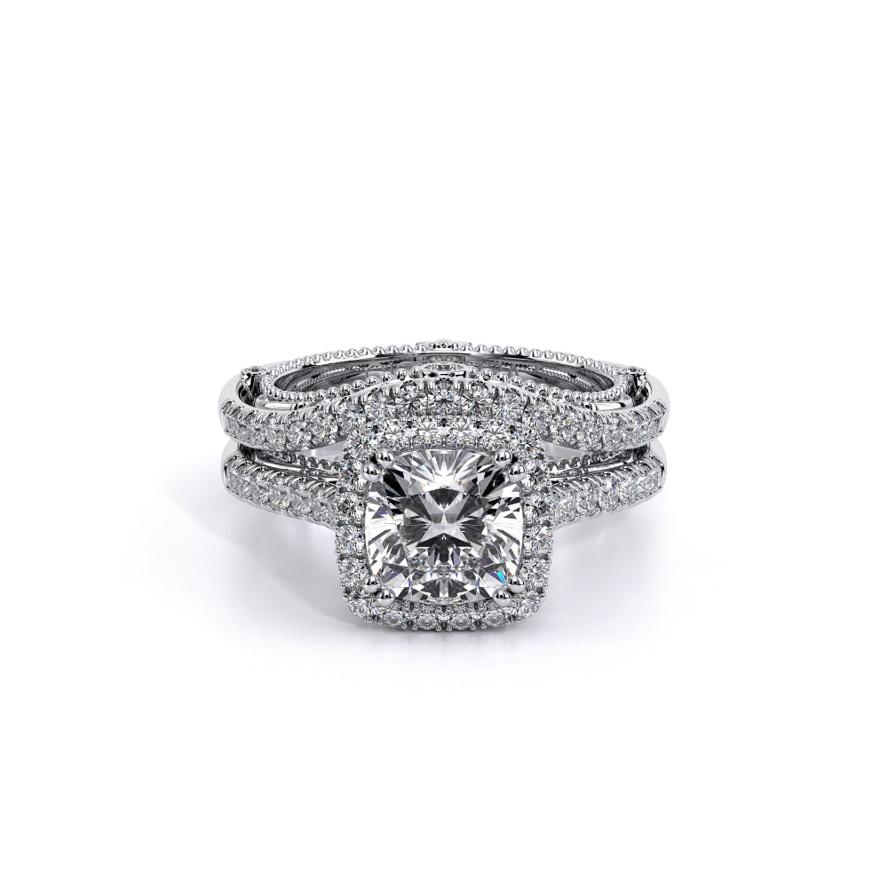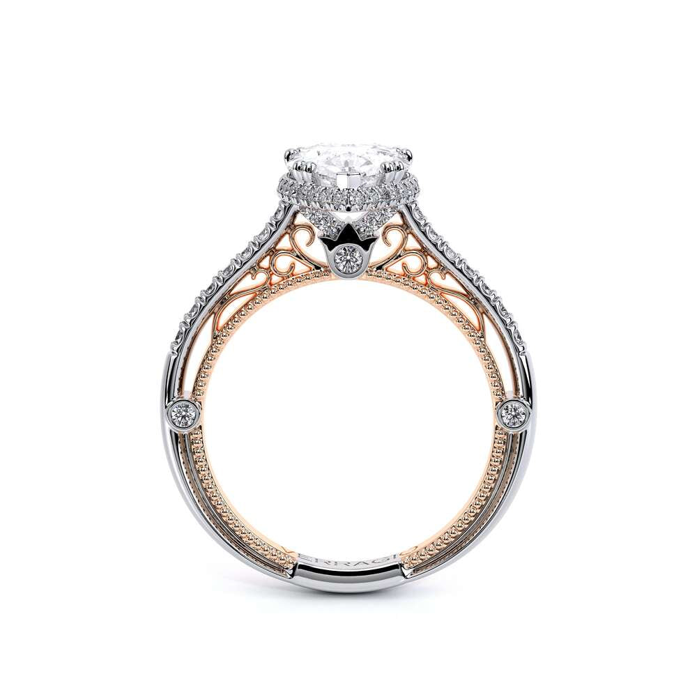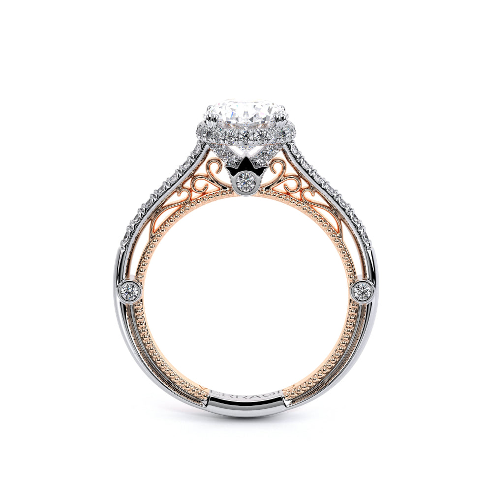 VENETIAN-5003 engagement ring from the Venetian Collection, features round brilliant-cut diamonds pave set in a twisted shank, enhancing any center shape of your choice in a floating design. Our beautiful Venetian lace and Verragio signature beading completes this vintage piece.