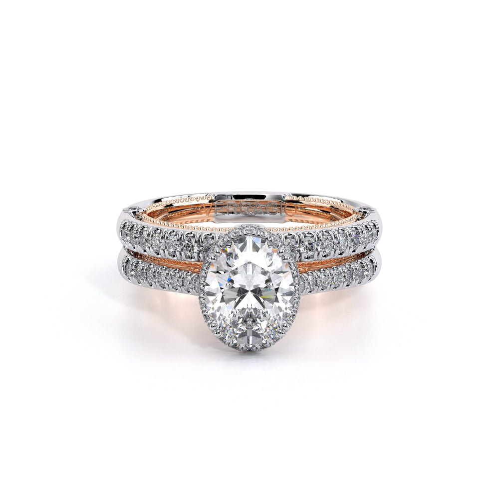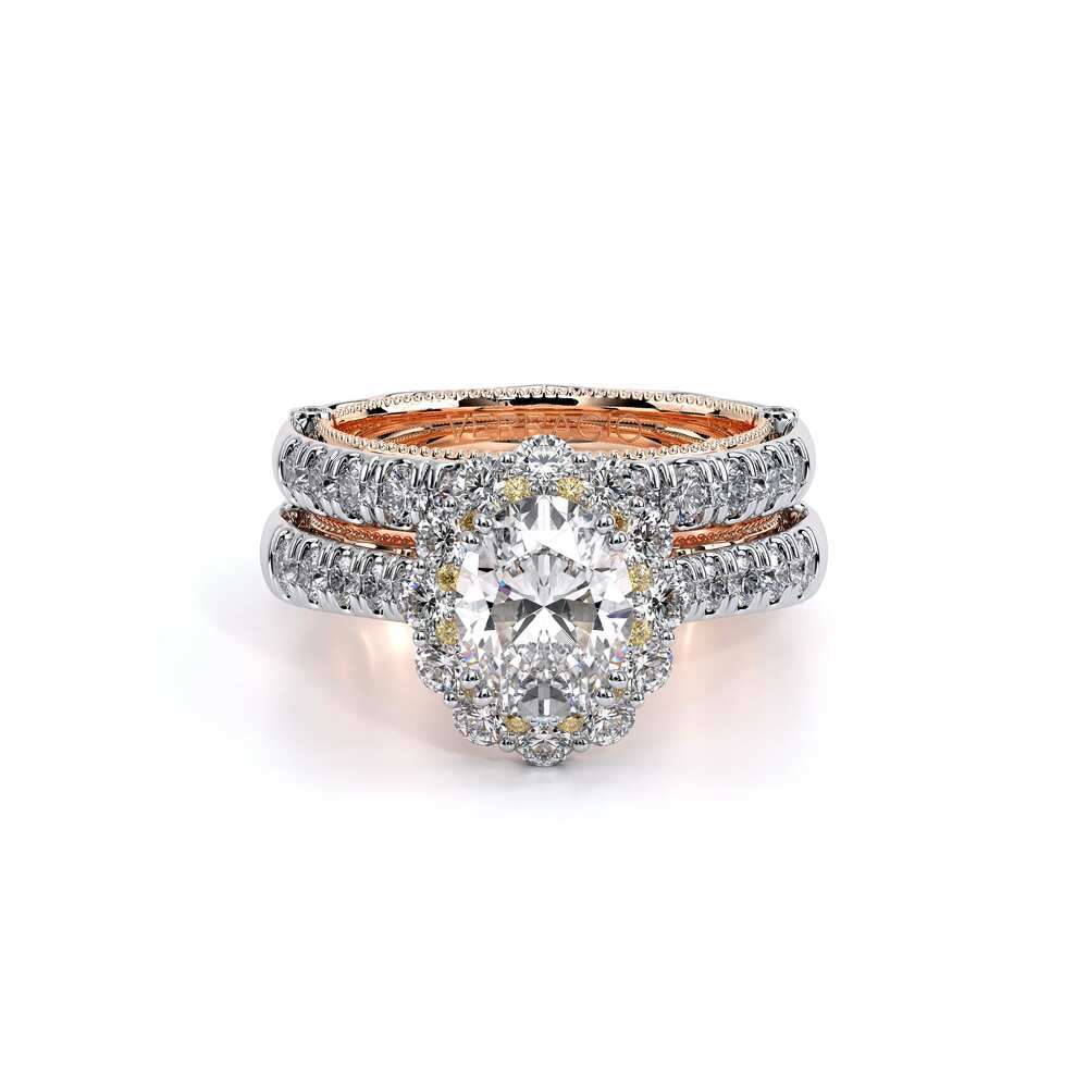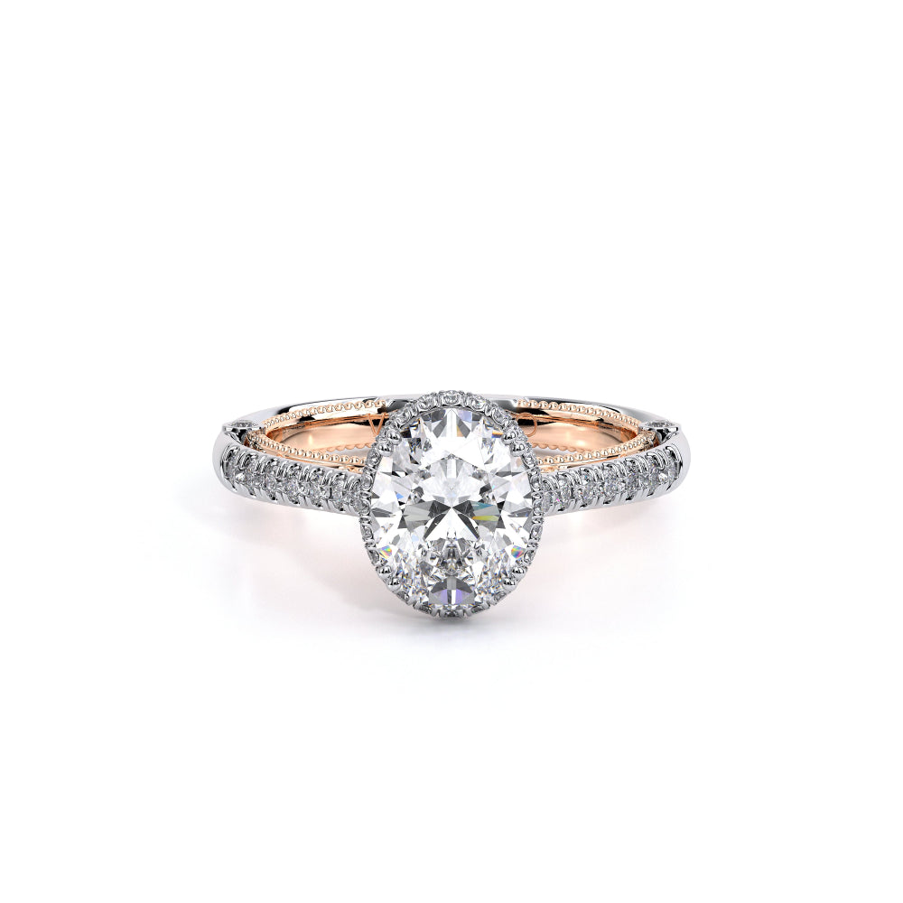 VENETIAN-5051OV engagement ring features our beautiful Verragio Floret halo modified for an Oval center along with a twisted shank encrusted with round brilliant diamonds. An intricately crafted lace design along with our Verragio signature beading further enhances this gorgeous piece and you can't help but fall in love with it.