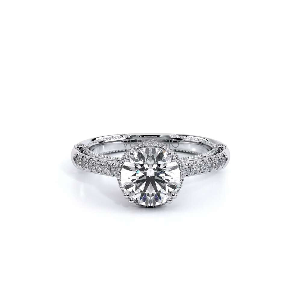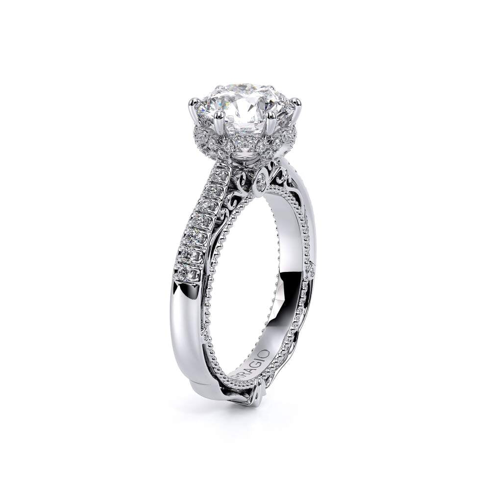 VENETIAN-5052 engagement ring from the Venetian Collection features a floral tiara on a delicate straight shank with graduating round brilliant diamonds. Choose a lace shank for a more vintage look or opt for a classic shank to keep it simple. This beauty continues to stay as one of our most loved Verragio styles.