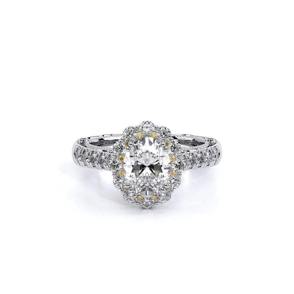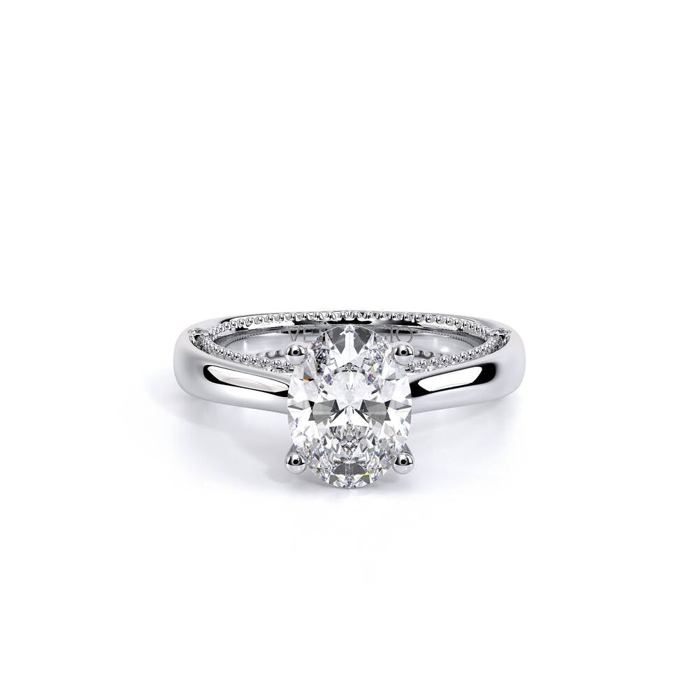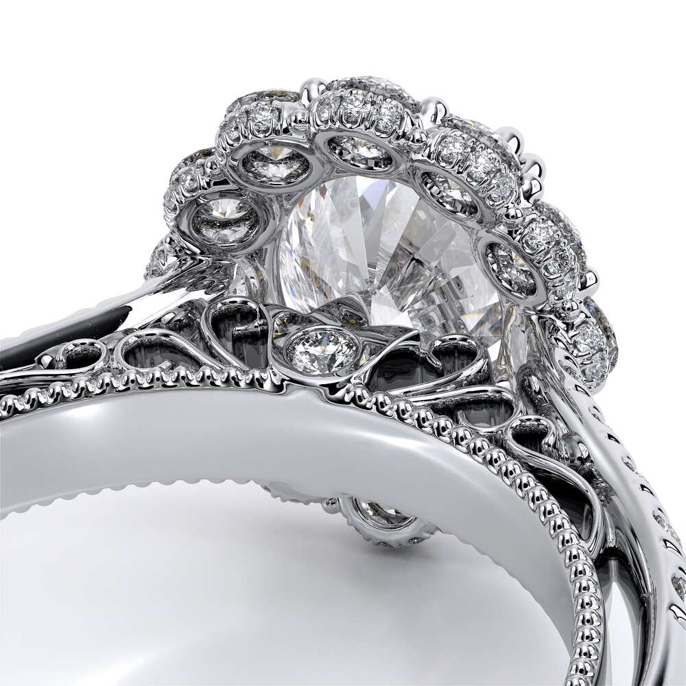 VENETIAN-5052OV engagement ring from the Venetian Collection features an Oval floral tiara on a delicate straight shank with graduating round brilliant diamonds. Choose a lace shank for a more vintage look or opt for a classic shank to keep it simple. This beauty continues to stay as one of our most loved Verragio styles.