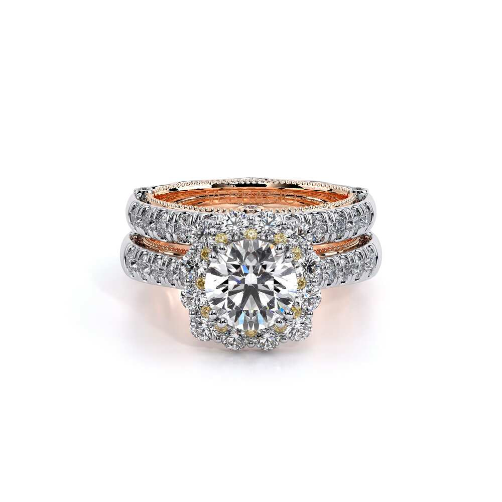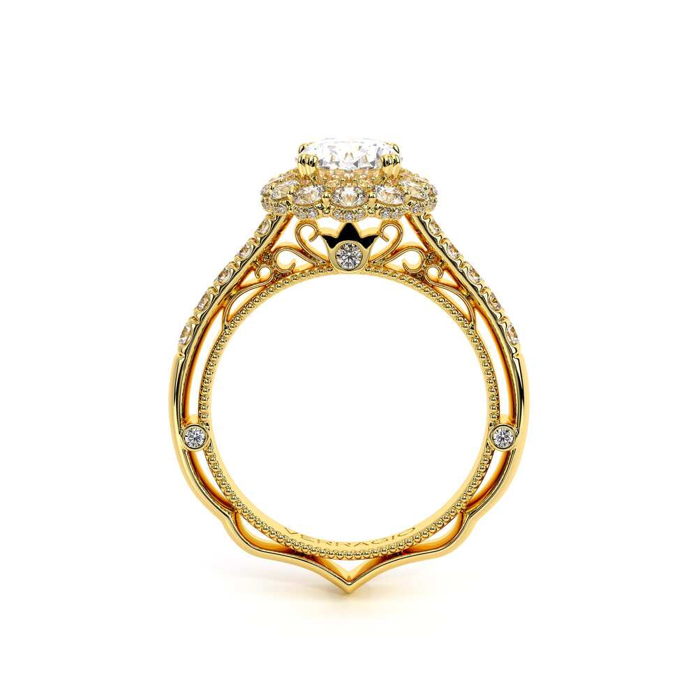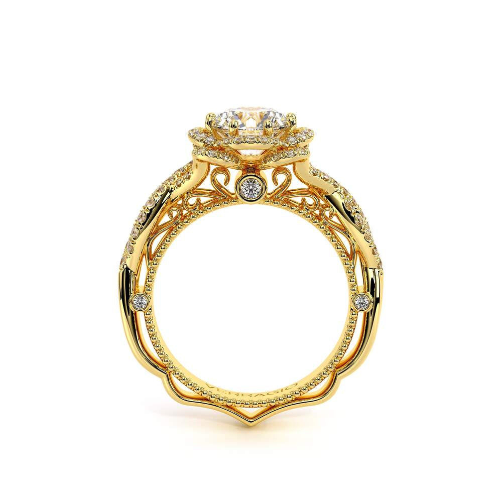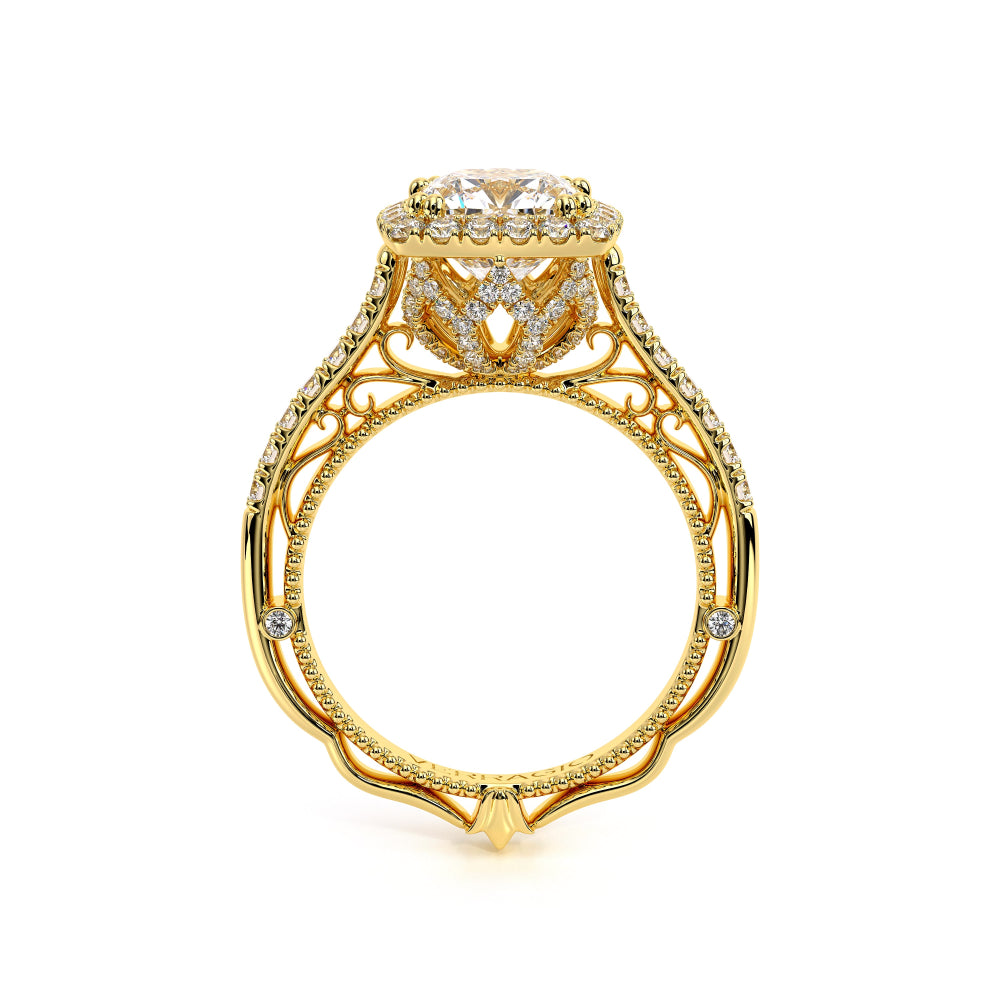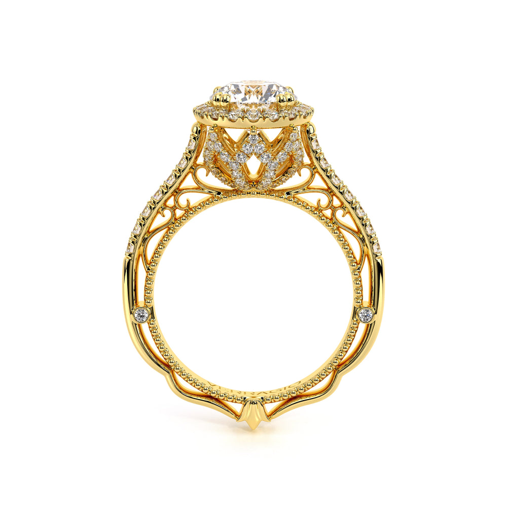 VENETIAN-5061R engagement ring from the Venetian Collection, features a unique diamond adorned basket topped with a round single halo. A delicate straight shank encrusted with round brilliant diamonds completes this beautiful ornate design.