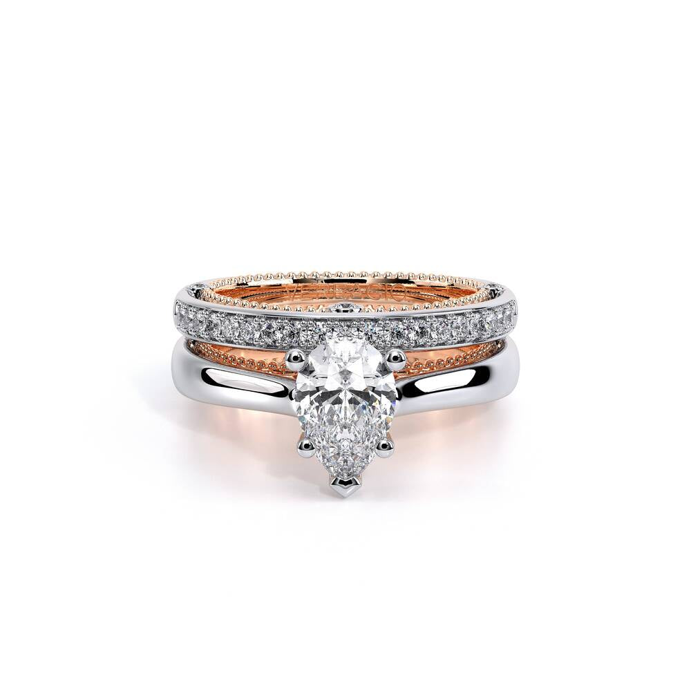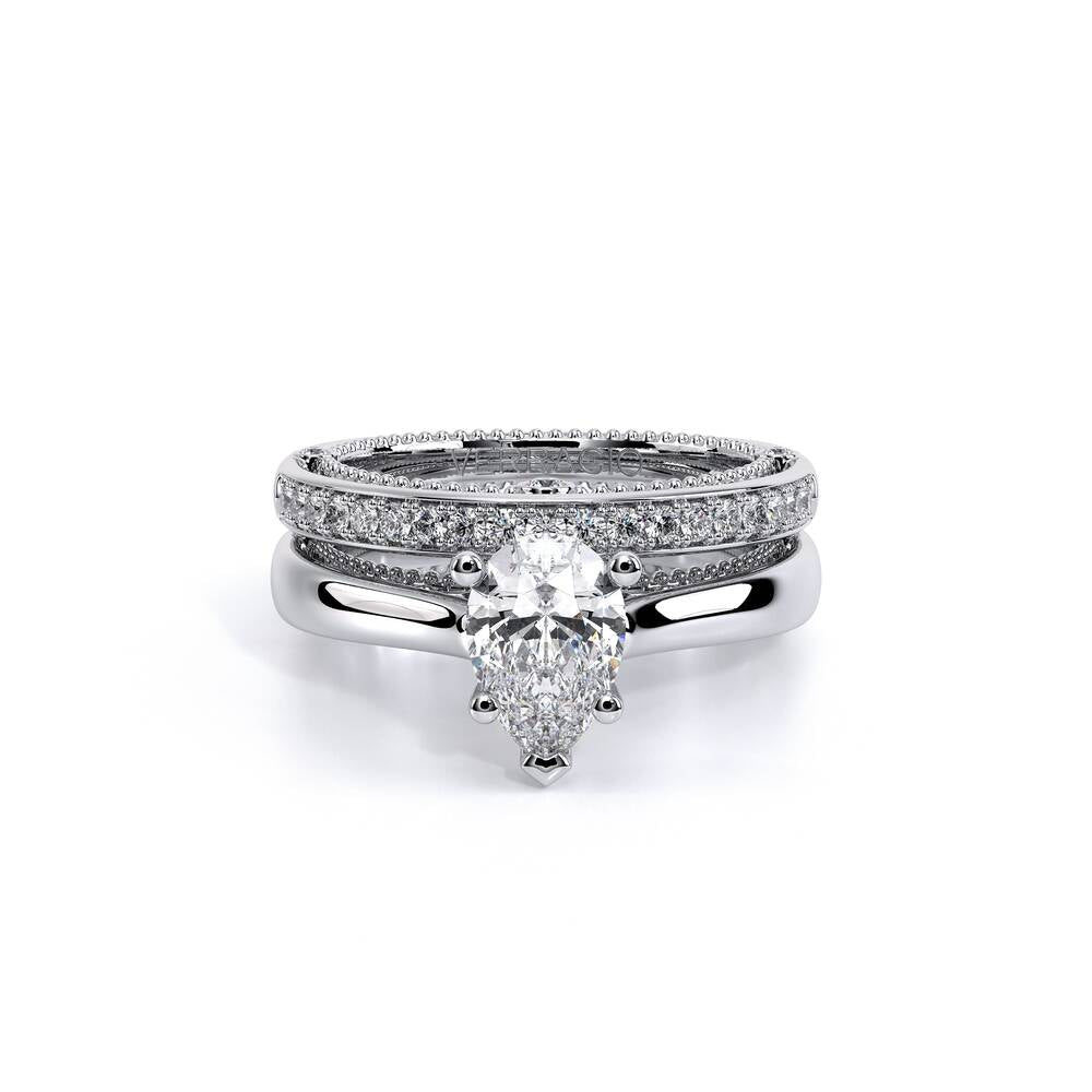 VENETIAN-5047PEAR from our Venetian collection is a clean and classic engagement ring enhancing the Pear diamond center, the inside band showcases our gorgeous intricate Venetian lace and Verragio signature beading, making this a timeless piece in our collection.