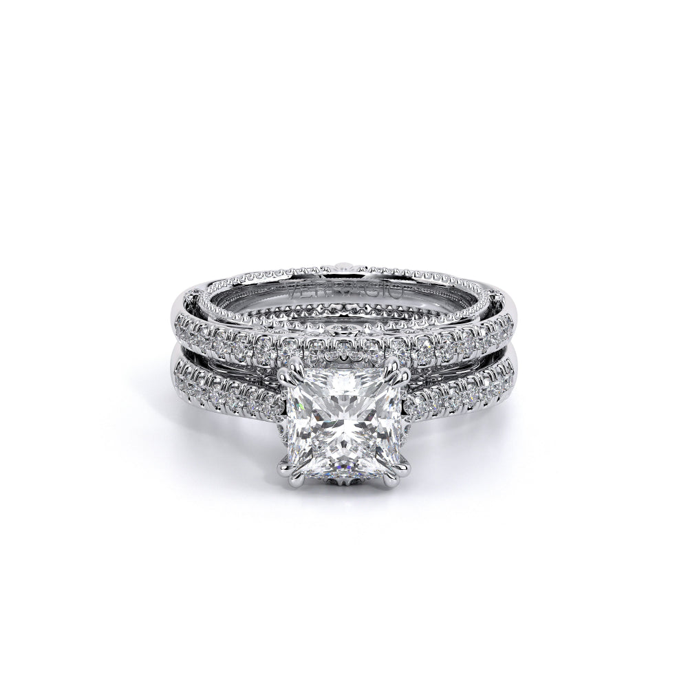 VENETIAN-5047P engagement ring from the Venetian Collection features a classic plain look on the outside enhancing the Princess diamond center, the inside band showcases our beautiful intricate Venetian lace and signature beading making this a timeless piece in our collection.