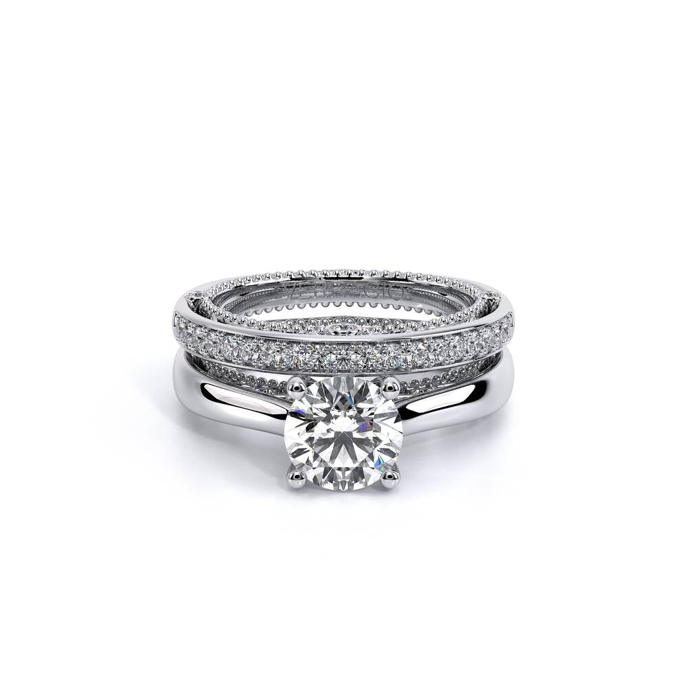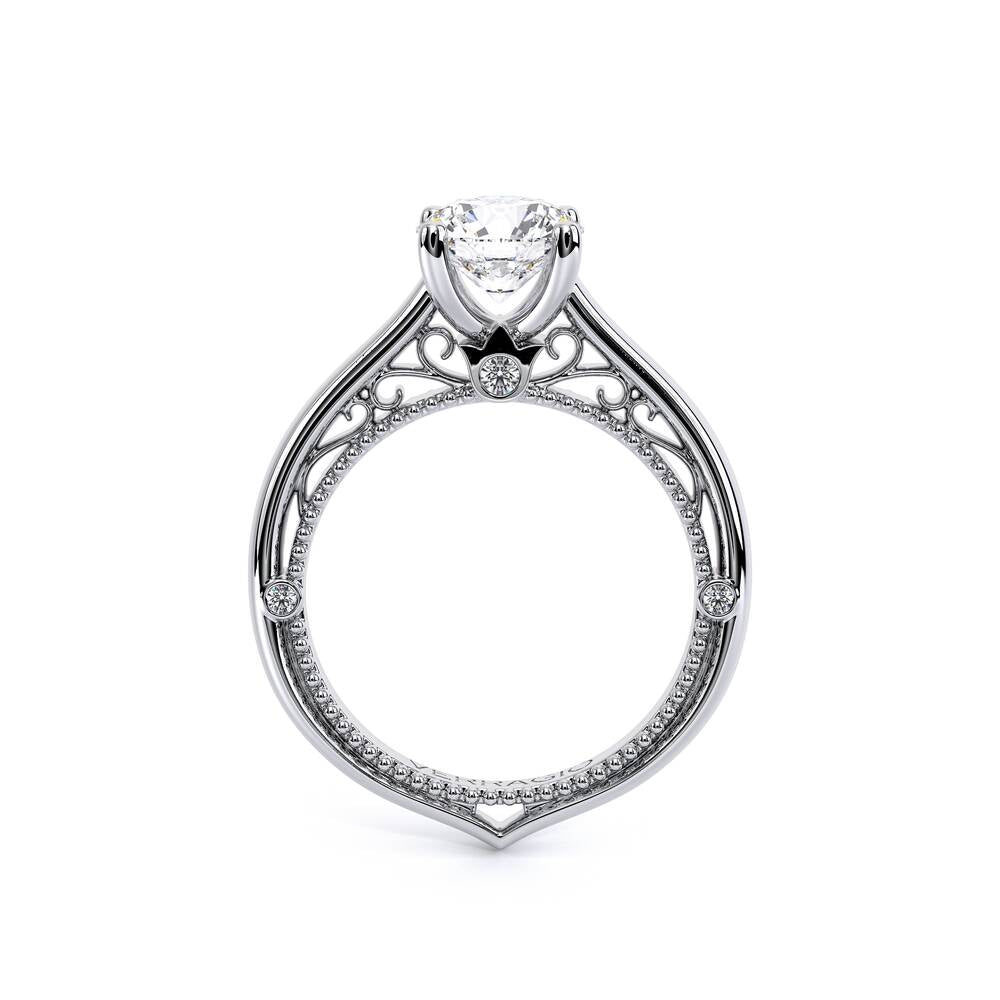 VENETIAN-5047R engagement ring from the Venetian Collection features a clean and classic look on the outside enhancing the round diamond center, the inside band showcases our beautiful intricate Venetian lace and signature beading making this a timeless piece in our collection.