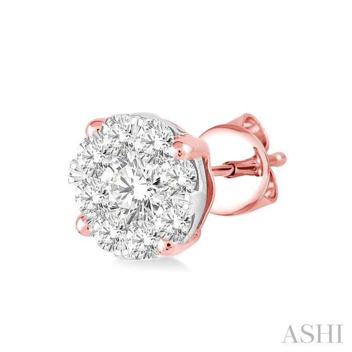 Captivate her with the dazzling and stunning look of these mesmeric Lovebright diamond earrings. Beautifully crafted in luminous 14 karat rose gold these gorgeous diamond earrings feature 18 round cut diamonds, perfectly invisible set. These earrings close with a secure clasp. Total diamond weight is 1/6 ctw. Other metal types & colors may be available.