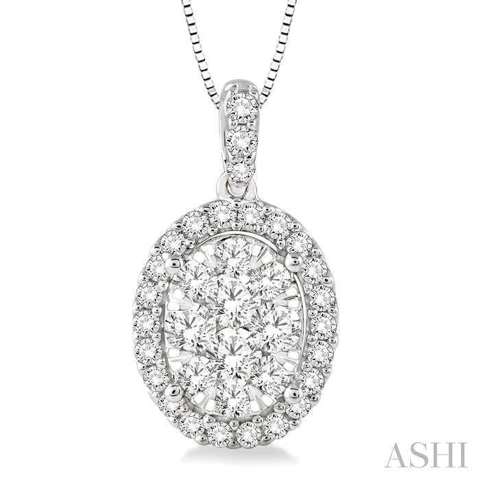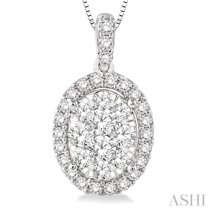 OVAL SHAPE HALO LOVEBRIGHT ESSENTIAL DIAMOND PENDANT