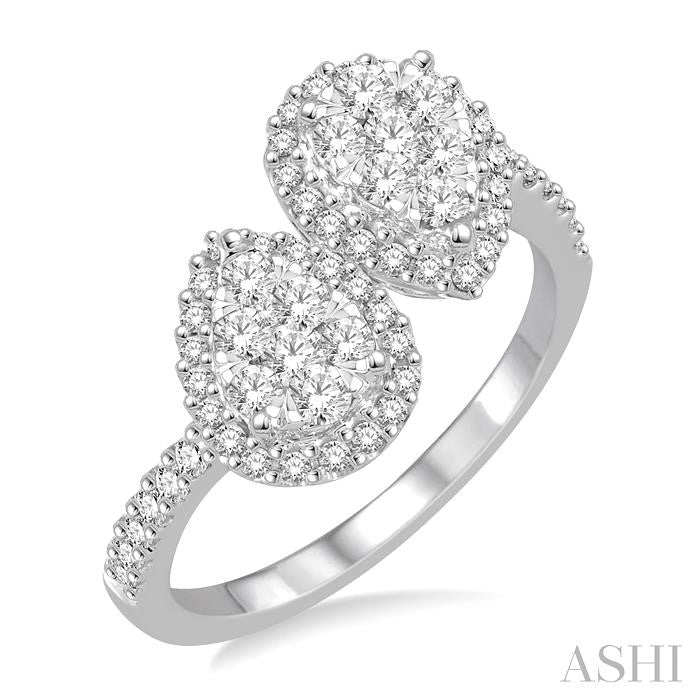 PEAR SHAPE 2 STONE HALO LOVEBRIGHT DIAMOND FASHION RING