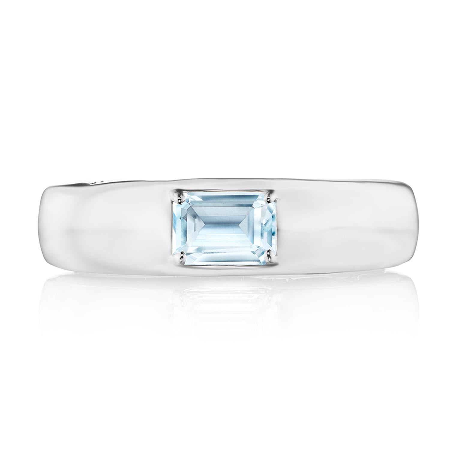 Solid 18k gold is expertly crafted into a sleek, domed ring that enthralls a Sky Blue Topaz gemstone. The high polish finish lends a striking and alluring contrast to the bezel-inspired piece, while a hidden TACORI Crescent adds dimension.