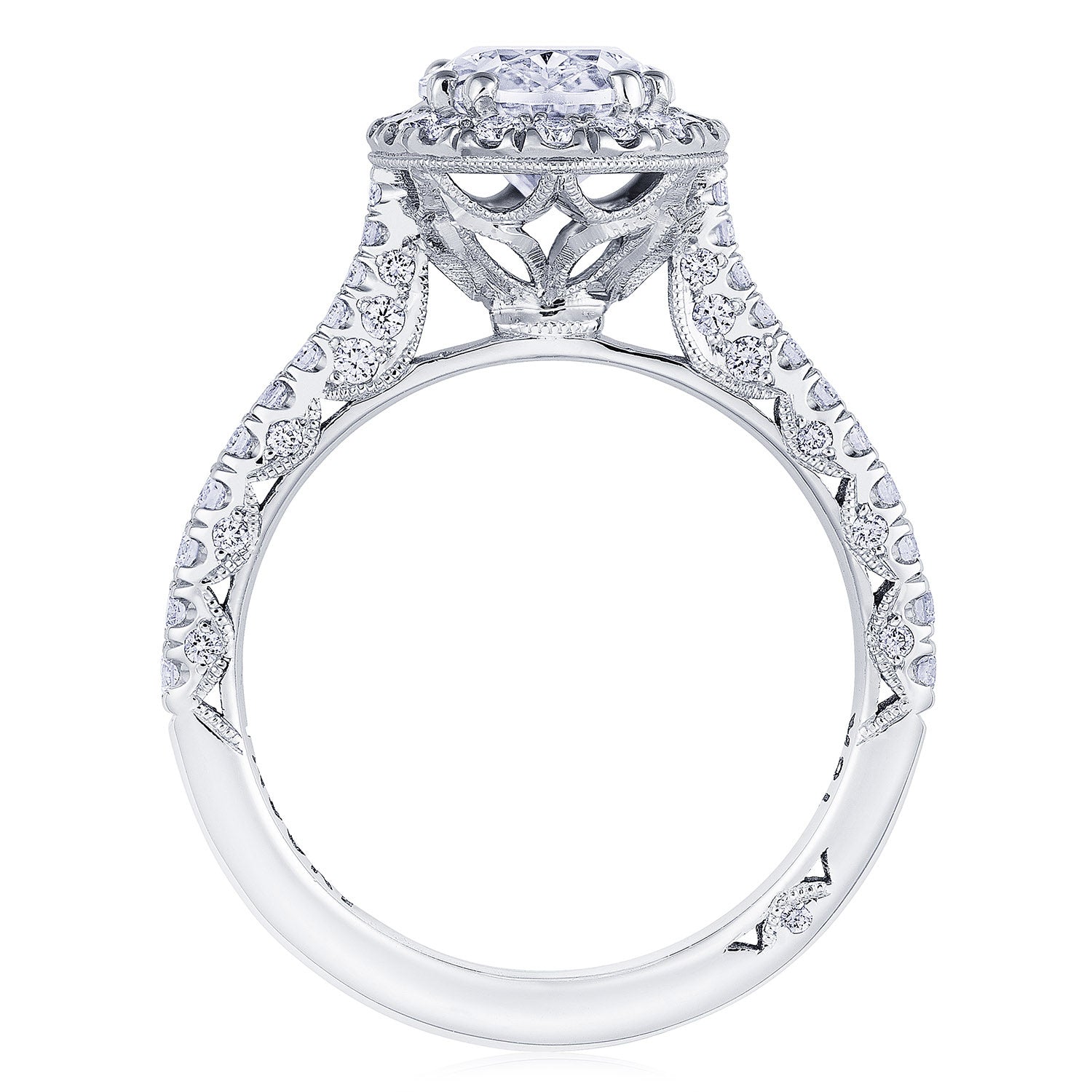 Featuring ribbon-like twists along the band that showcases the craftsmanship of TACORI artisans. The inner face silhouette of the band incorporates the Classic Crescent fabric, which is set with round brilliant diamonds and intricate milgrain.