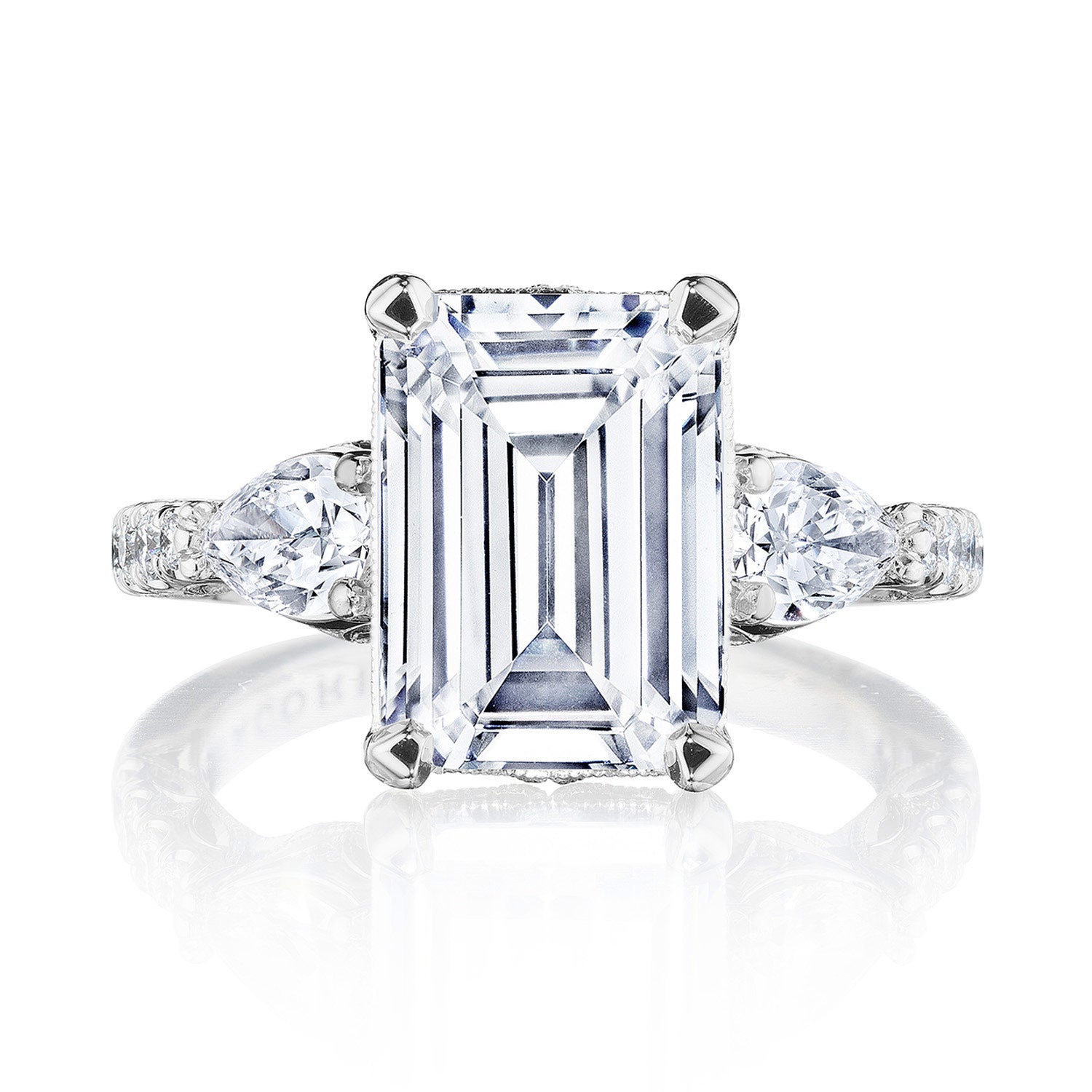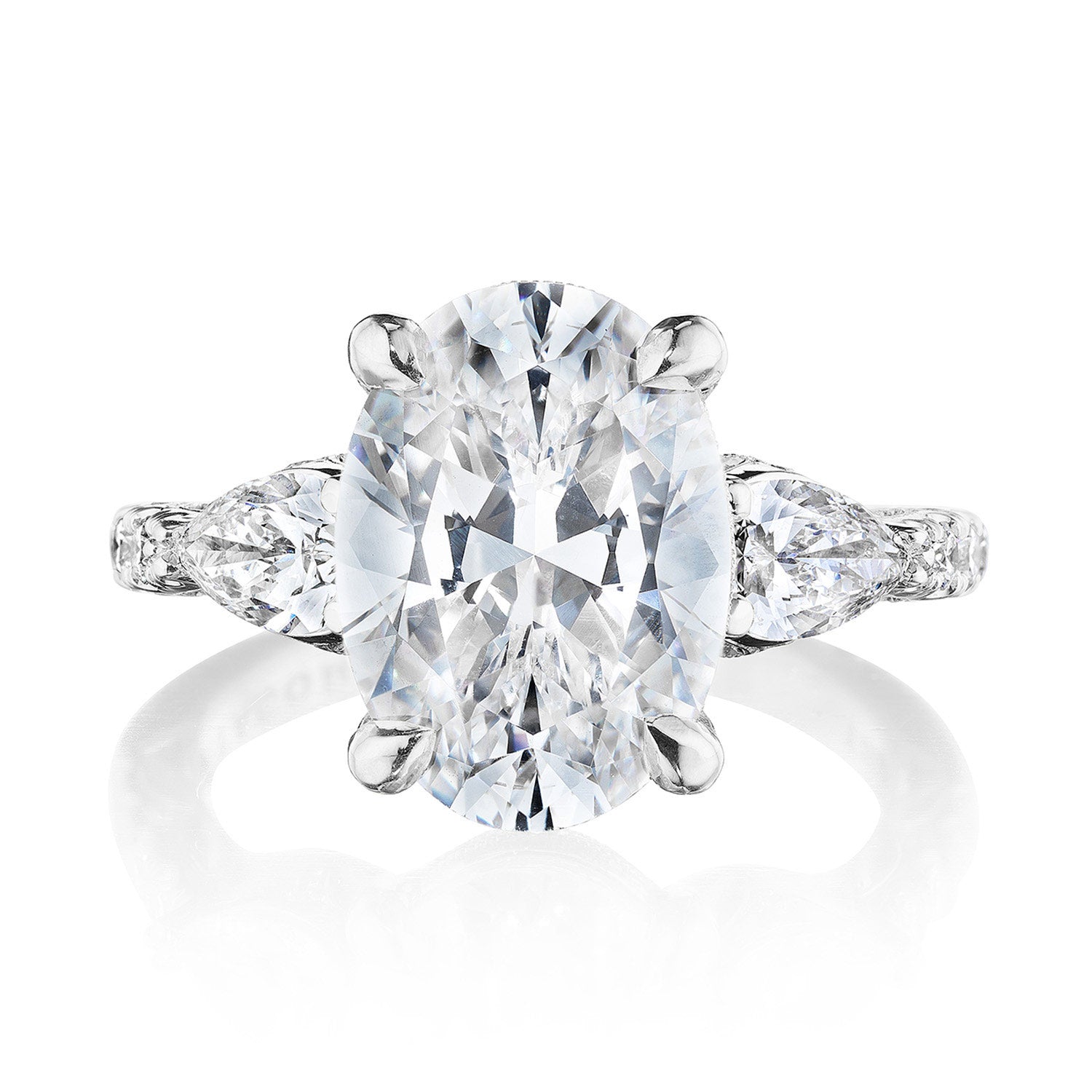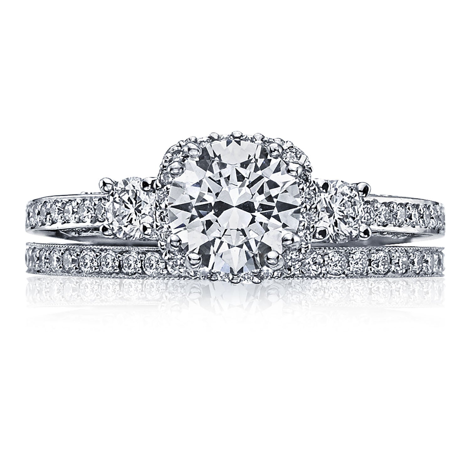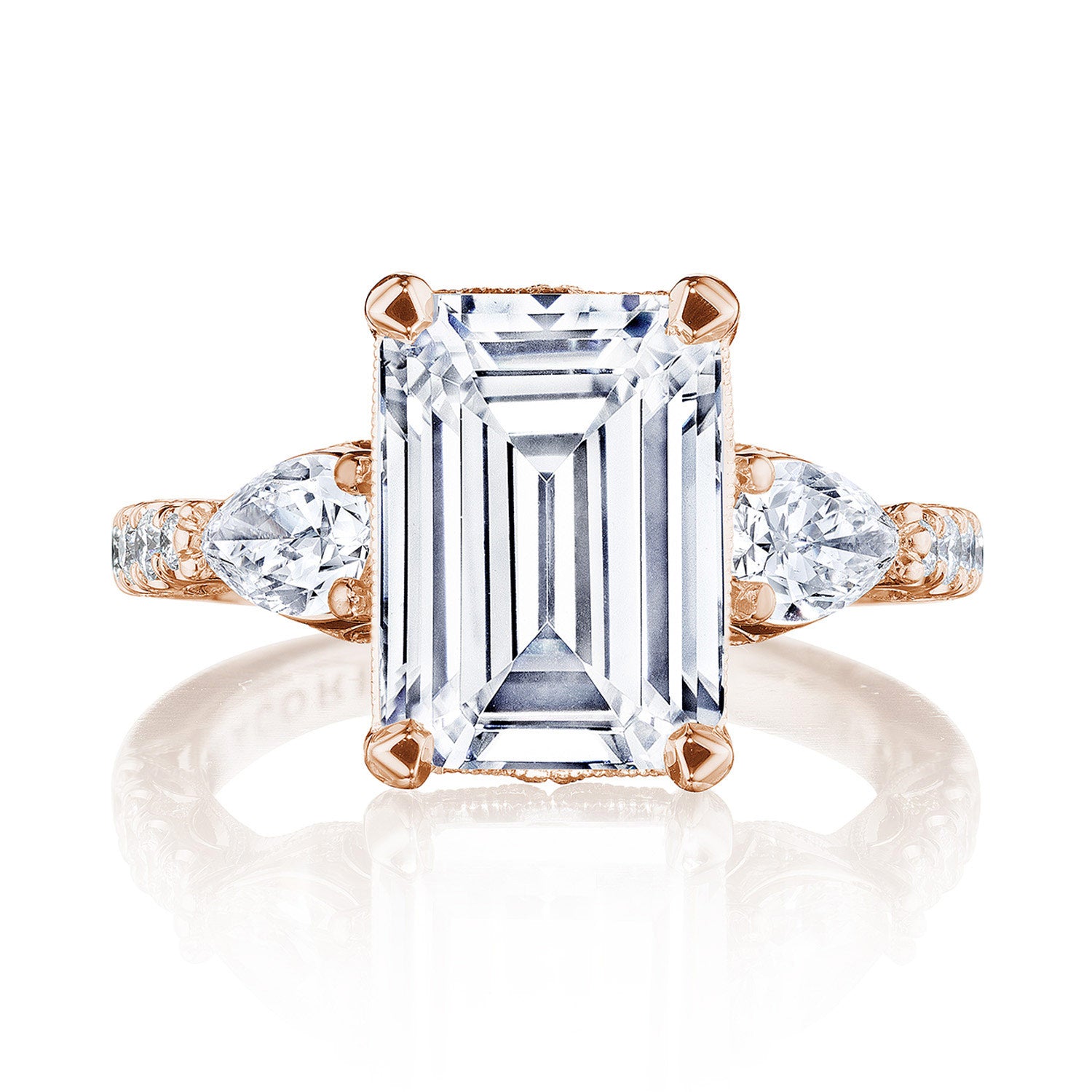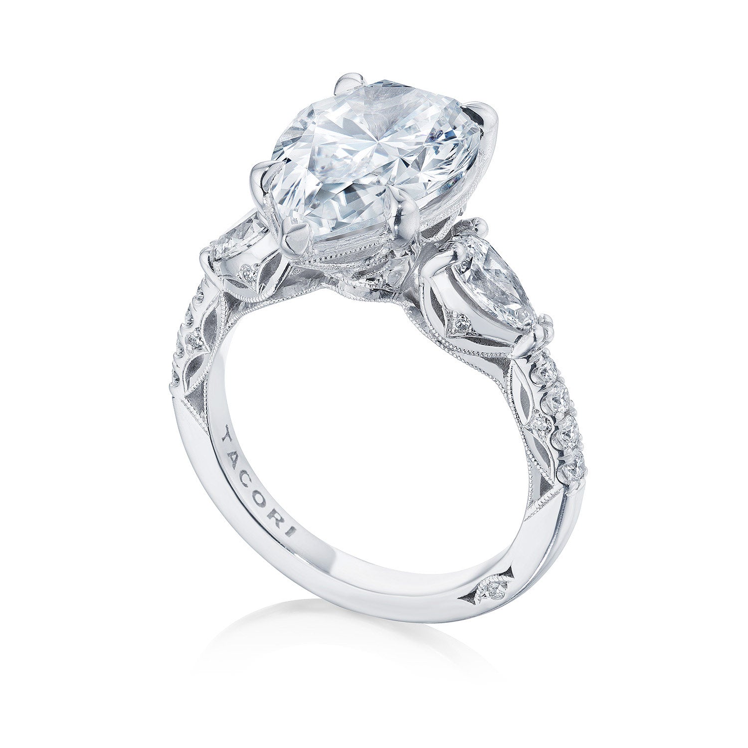 A TACORI bloom elevates the center stone, which rests on a lace-like, milgrian-studded Cathedral foundation. A pavé ceiling branches and embraces the solitaire, while a signature crescent marks the resting point of the ring.