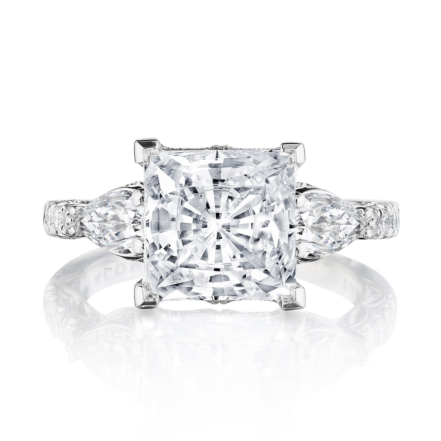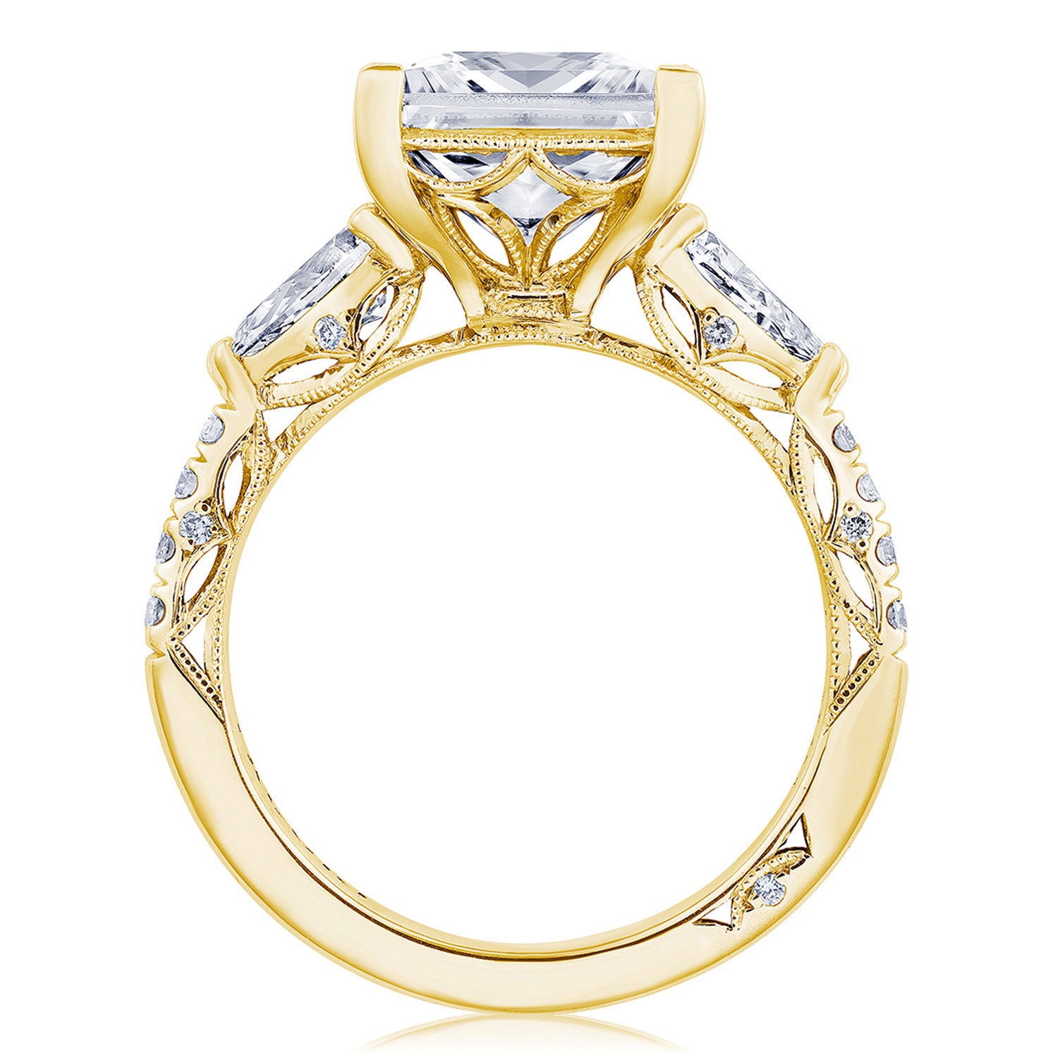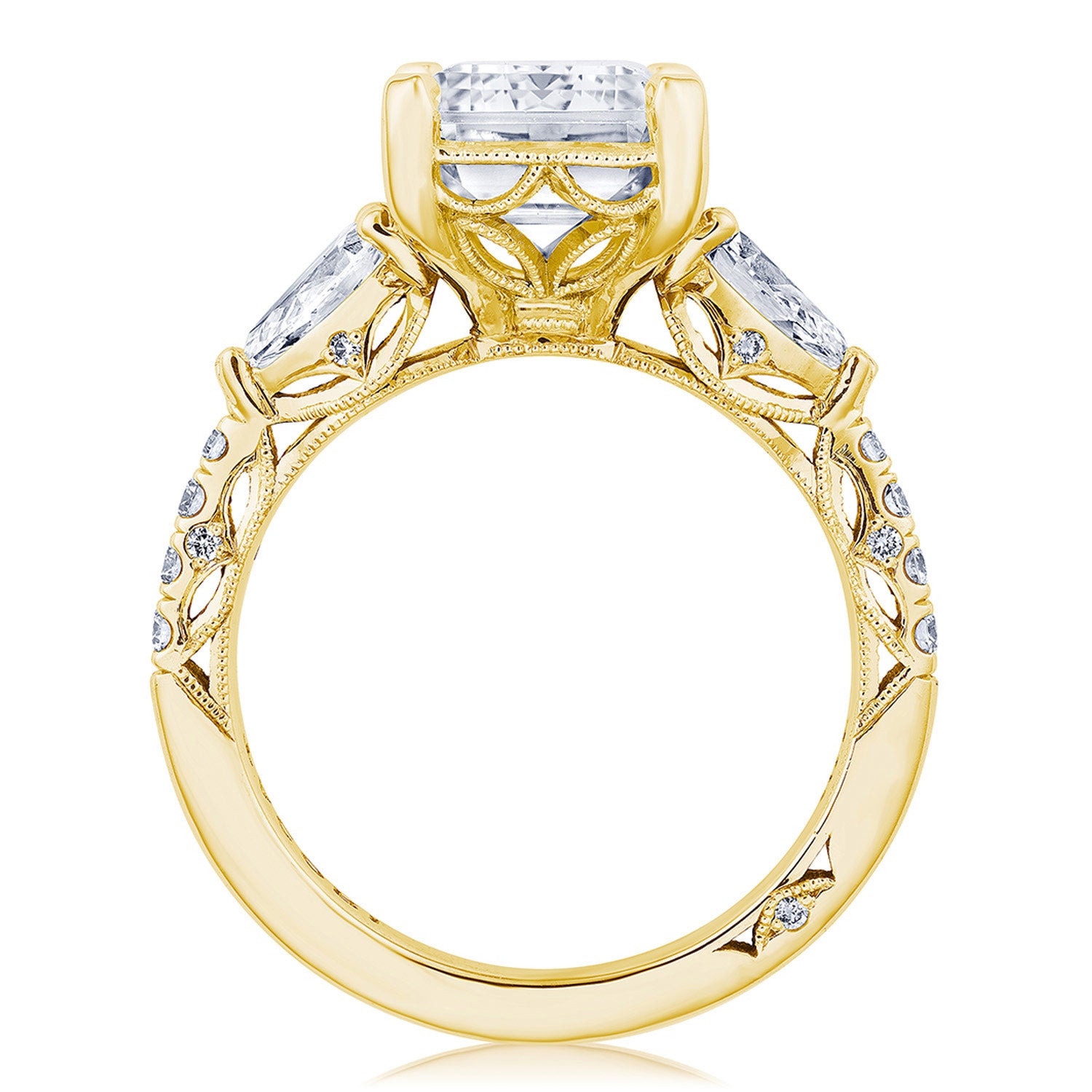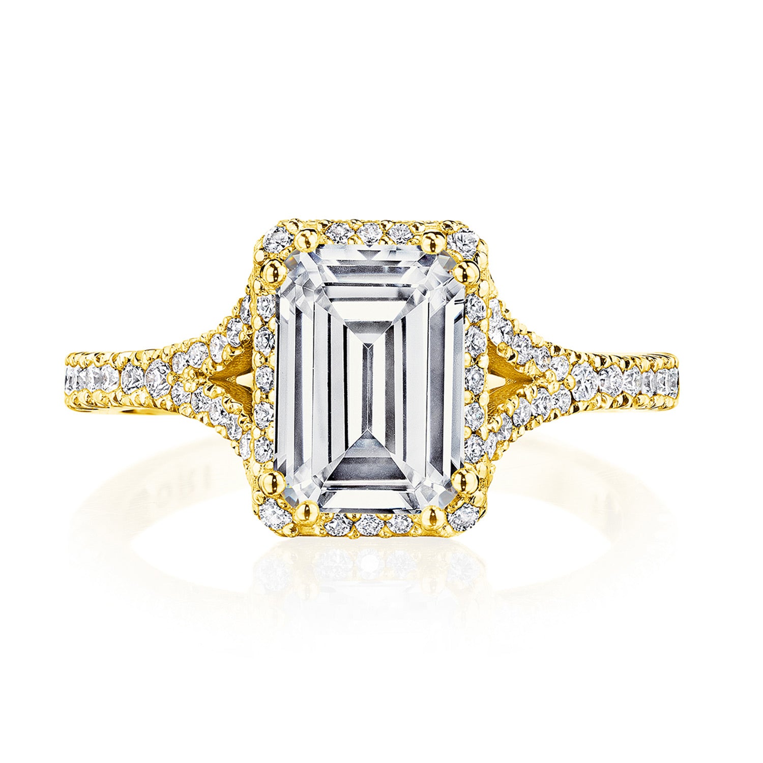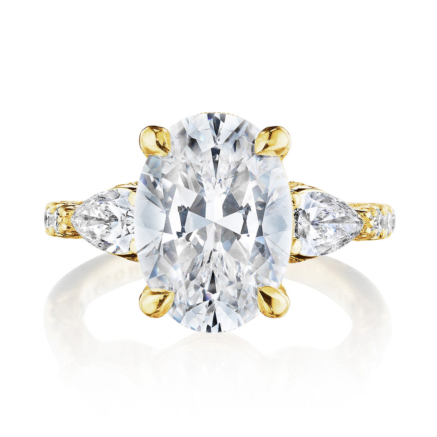 A TACORI bloom elevates the center stone, which rests on a lace-like, milgrian-studded Cathedral foundation. A pavé ceiling branches and embraces the solitaire, while a signature crescent marks the resting point of the ring.