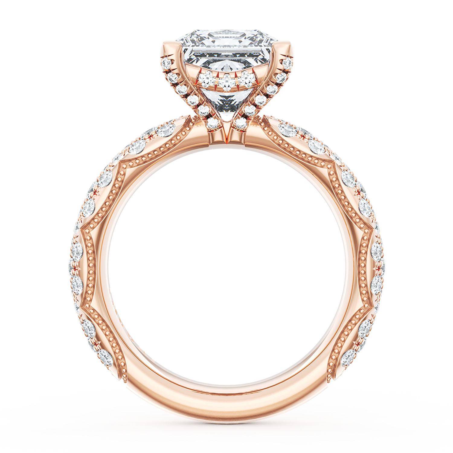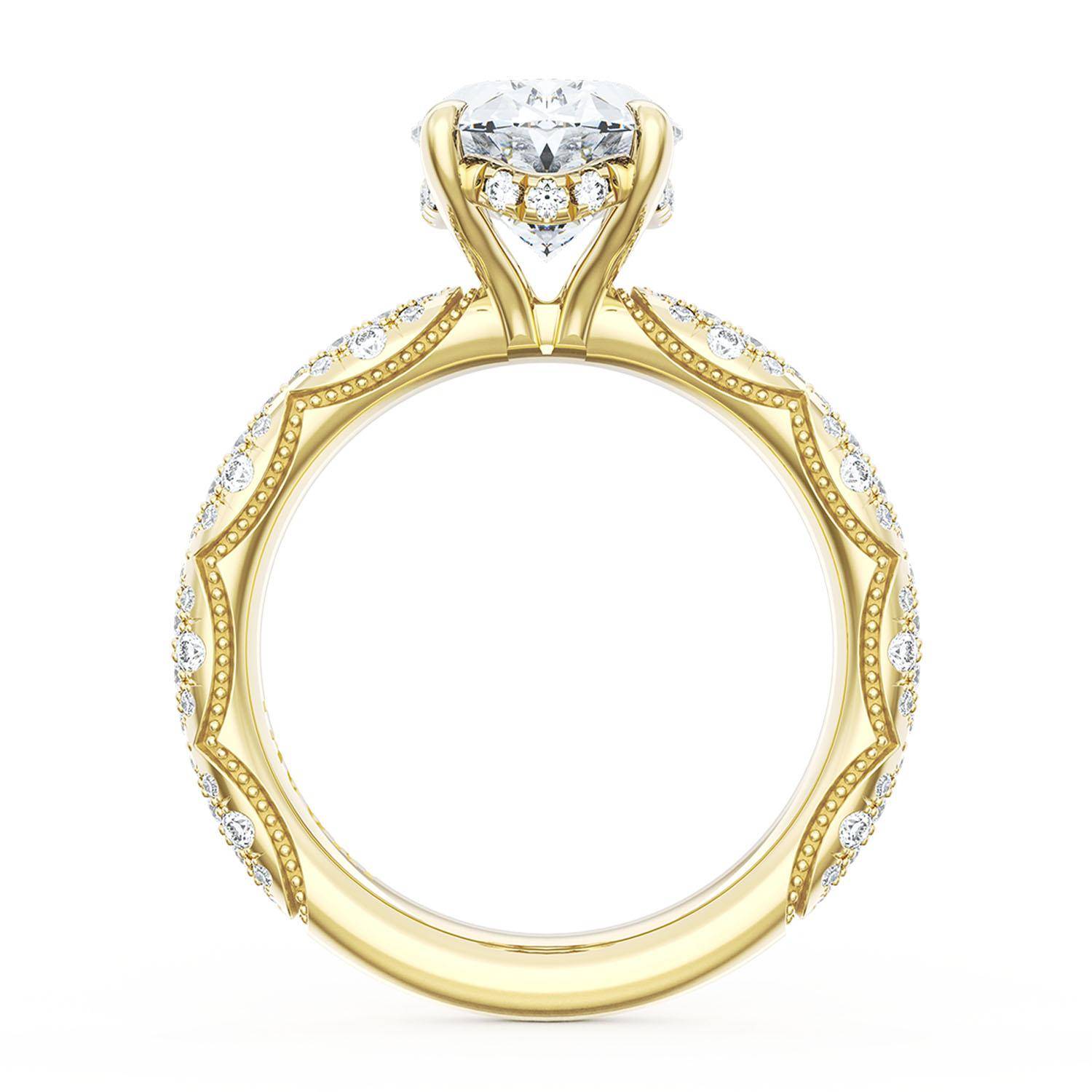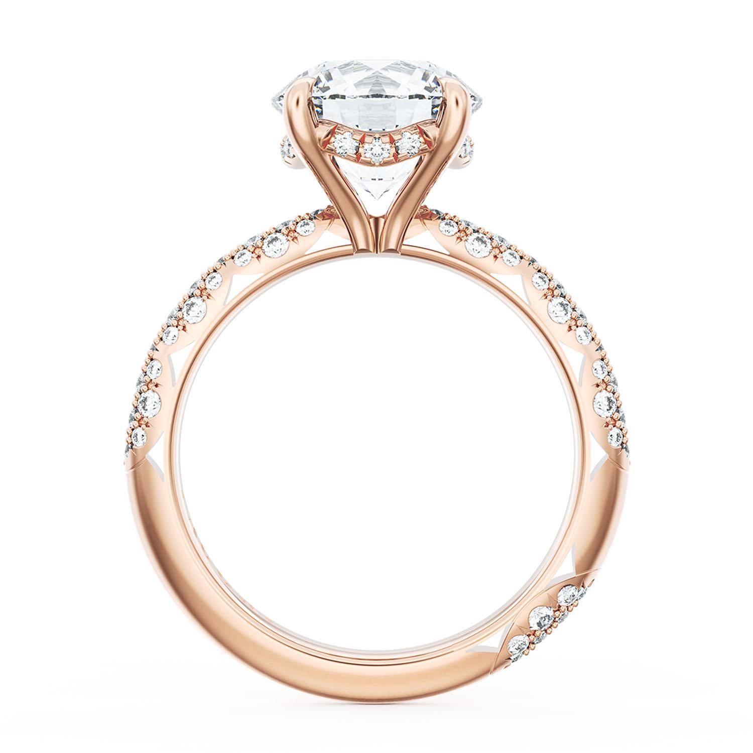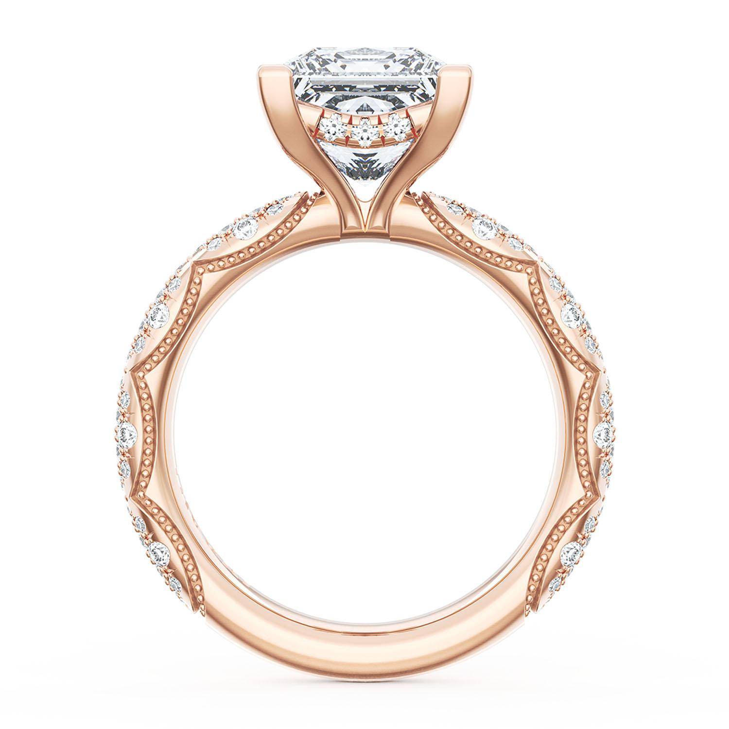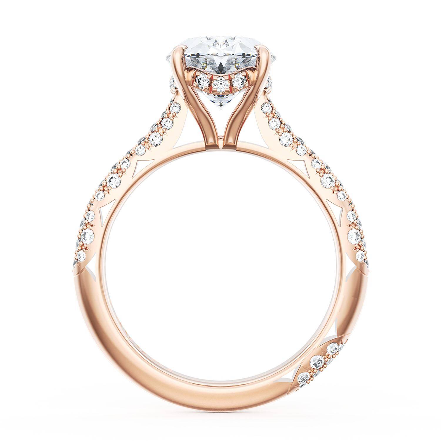 A 360 foundation is accented with a hidden bloom of diamonds, while the Founder's Crescent Fabric wraps around the ceiling of the ring. The ring is finished with a diamond-studded Signature Crescent.