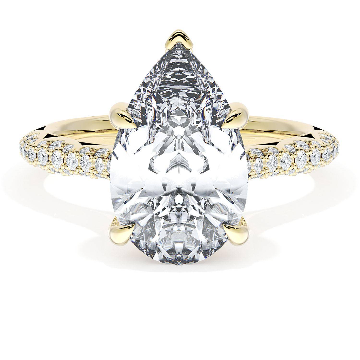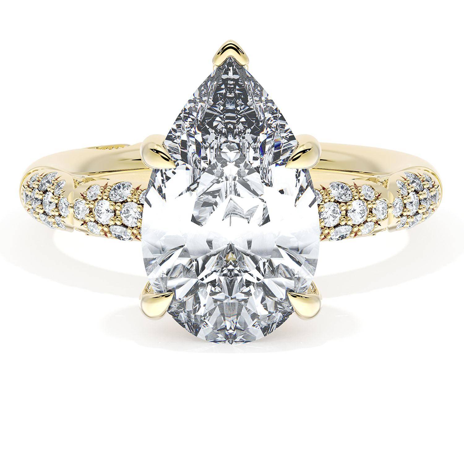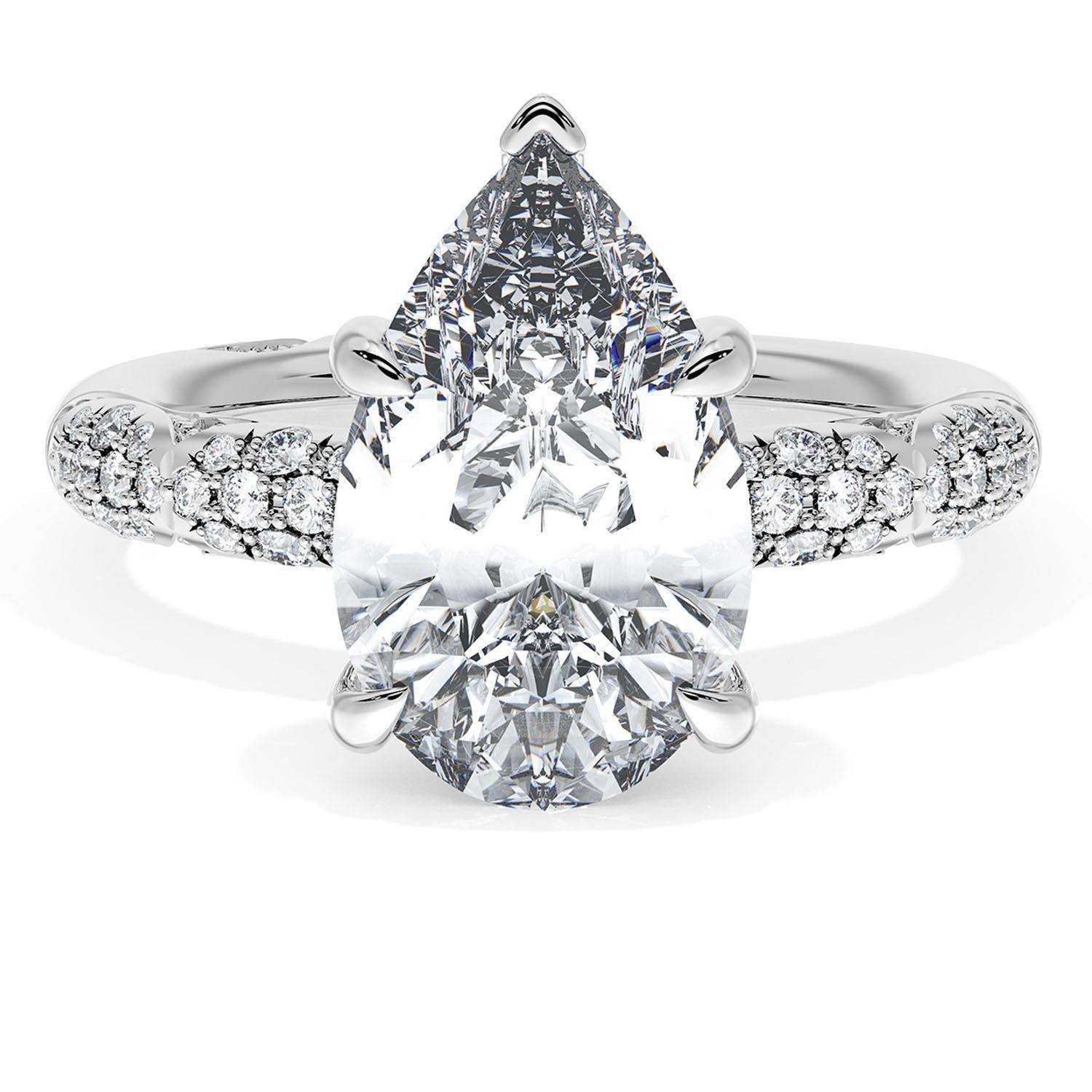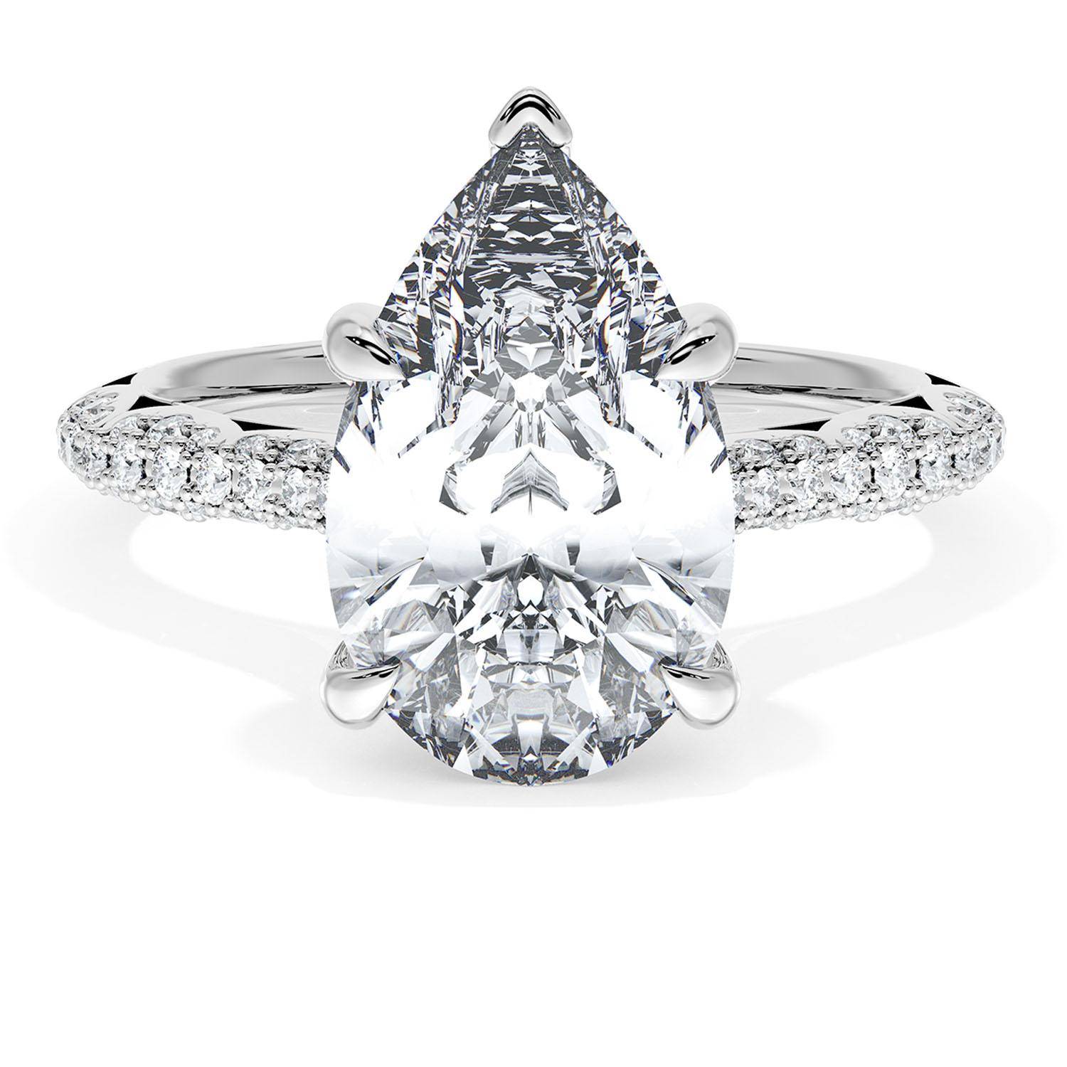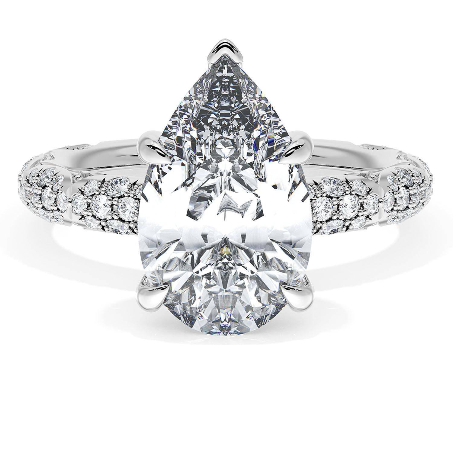 A 360 foundation is accented with a hidden bloom of diamonds, while the Founder's Crescent Fabric wraps around the ceiling of the ring. The ring is finished with a diamond-studded Signature Crescent.