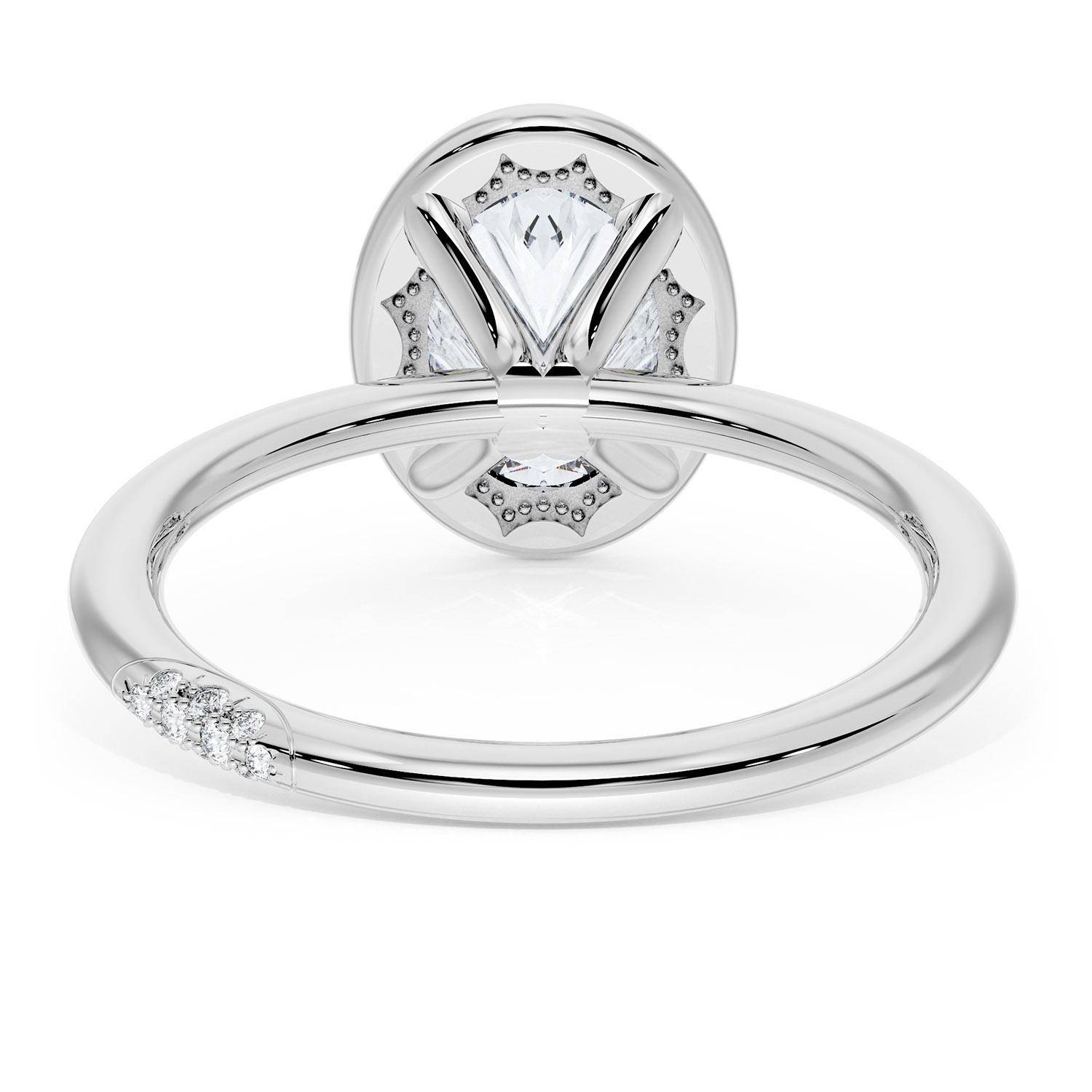 A 360 foundation is accented with a hidden bloom of diamonds, while the Founder's Crescent Fabric wraps around the ceiling of the ring. The ring is finished with a diamond-studded Signature Crescent.