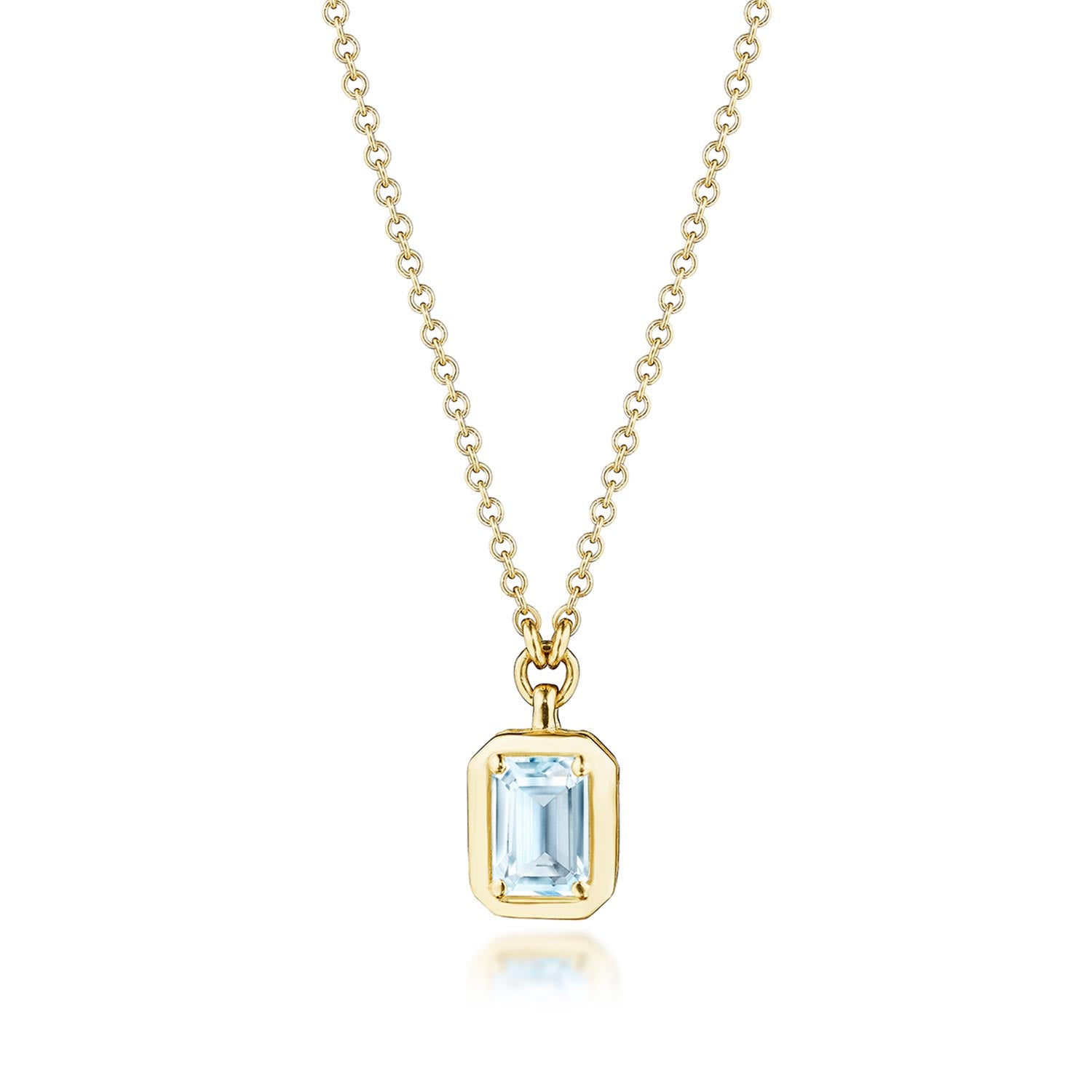 A bezel pendant of captivating depths. The high polish frame enthralls the Sky Blue Topaz center. On the reverse, TACORI Crescent detailing and pinpoint mined diamonds add dimension.