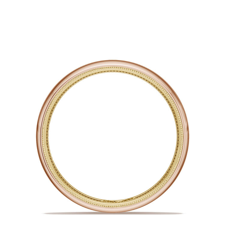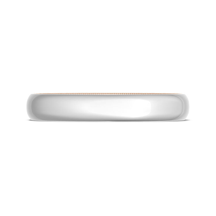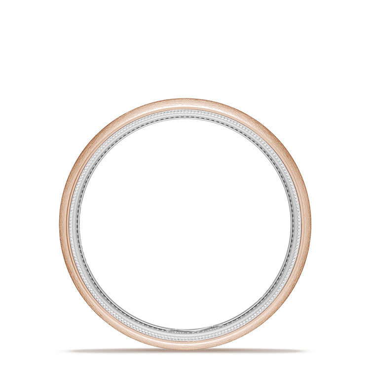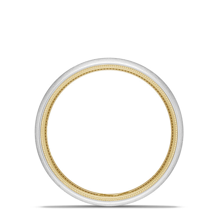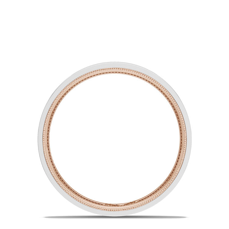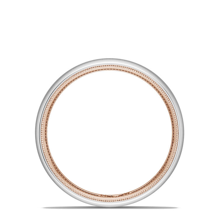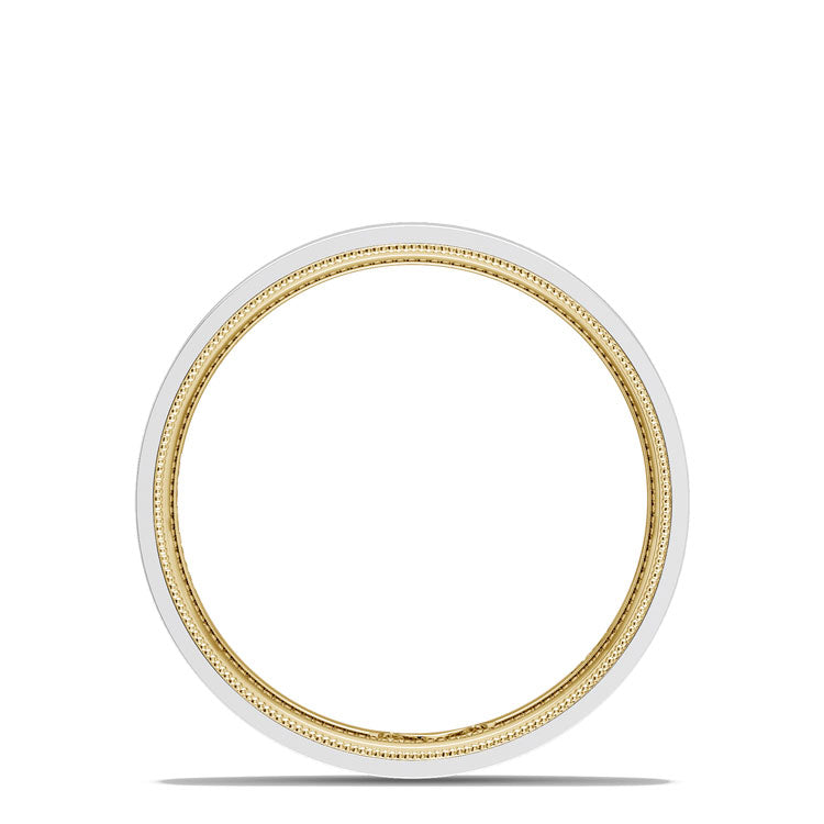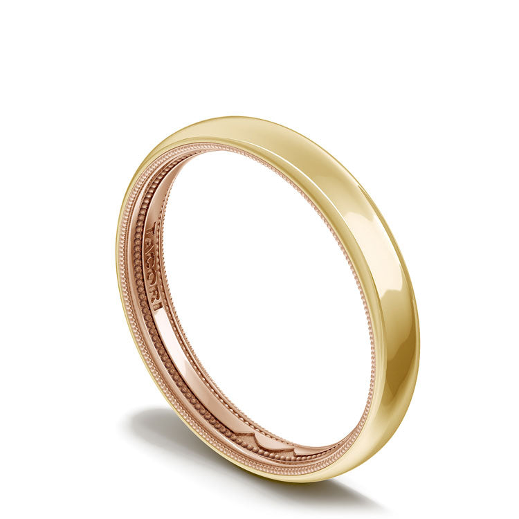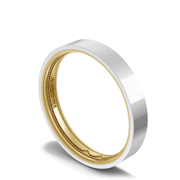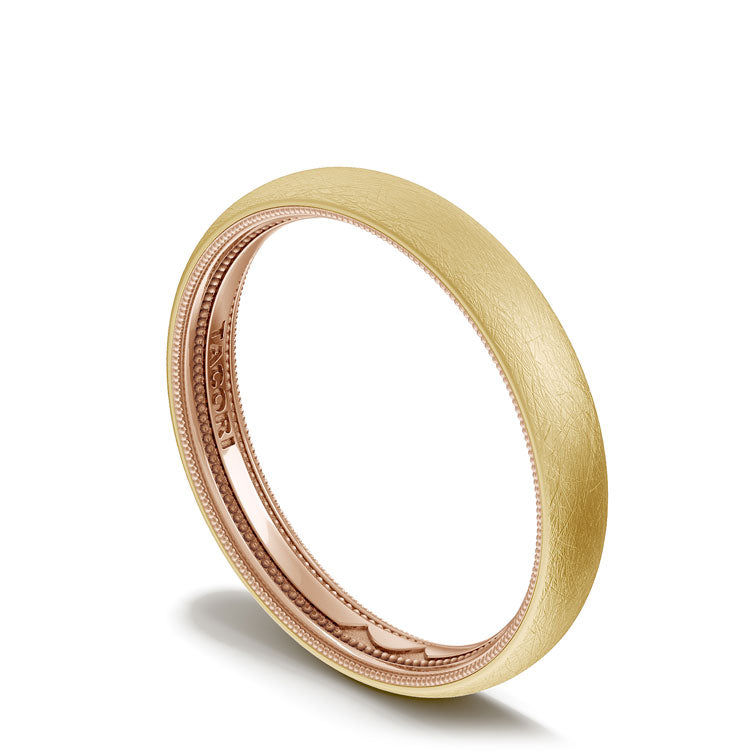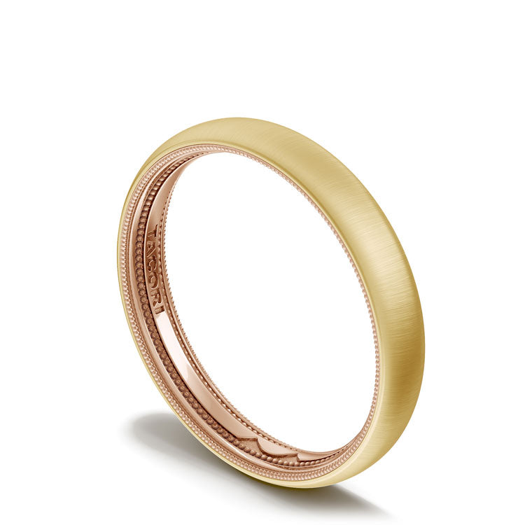 A band of two premium TACORI metals features a stunning tone-on-tone color contrast. The inner face silhouette is decorated with Crescent detailing and hand-hewn milgrain. Rings are available in sizes 4-12.